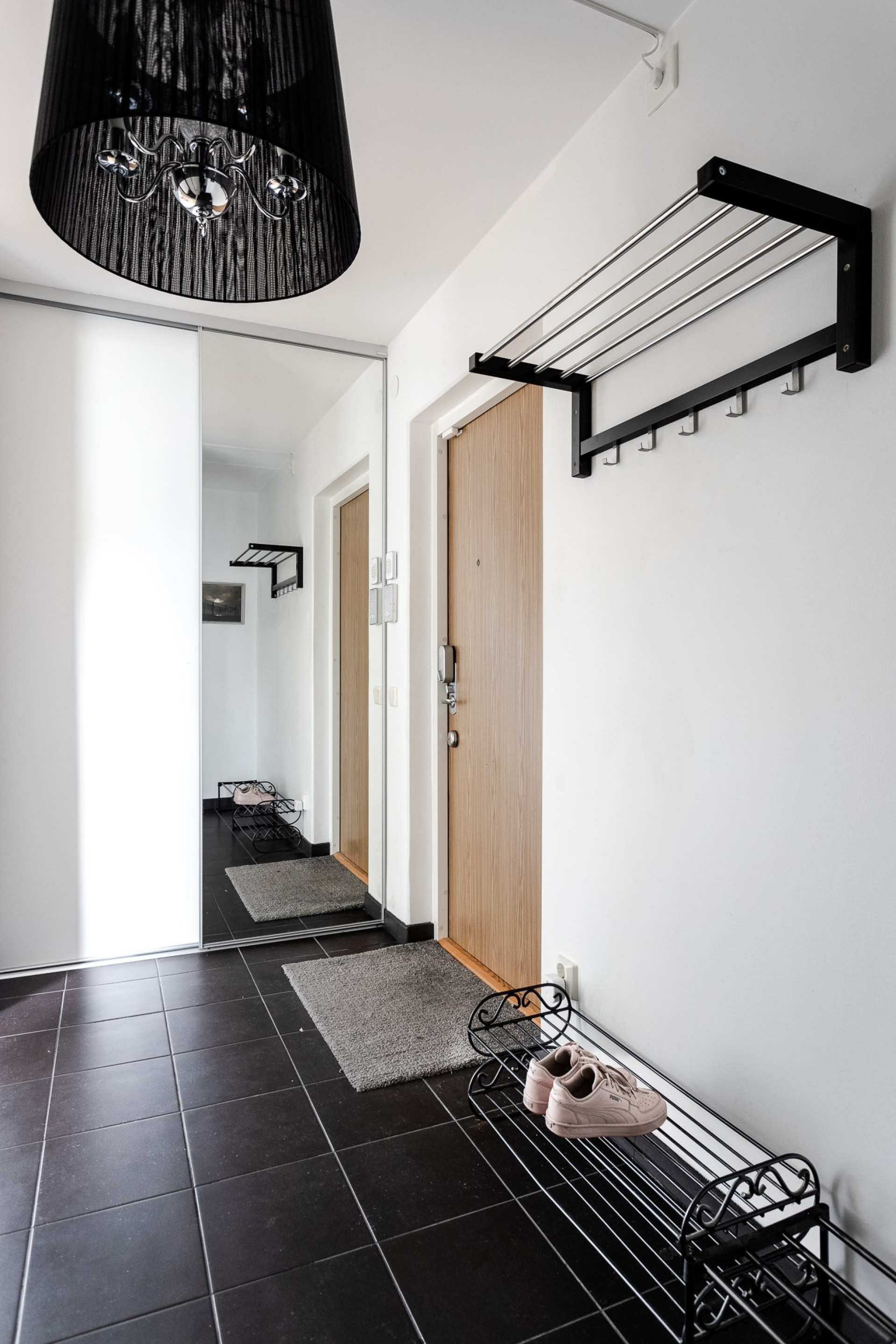 Parkettgolv och målad väggar. Bra förvaring genom garderober.