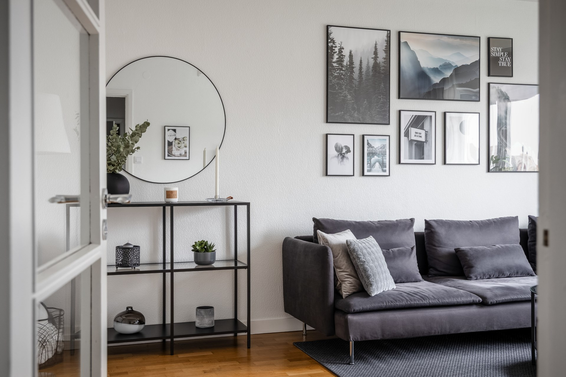 Generöst vardagsrum med härligt ljusinsläpp från stora fönsterpartier. Här får du plats med en soffgrupp och ett matbord om så önskas. Från vardagsrummet nås även den uppskattade franska balkongen i soligt söderläge. På golvet ligger ett parkett och väggarna är vitmålade (-22).