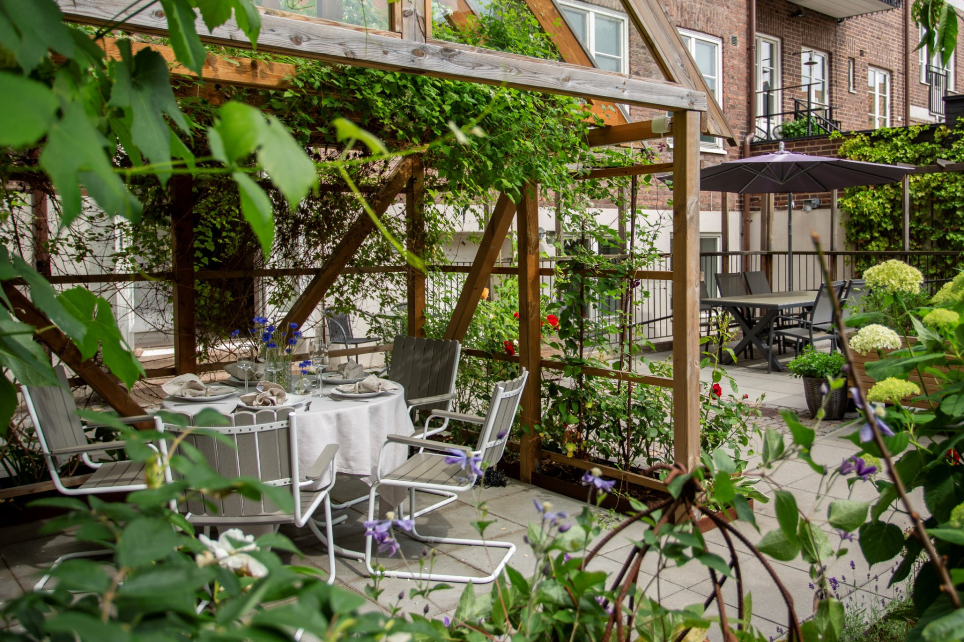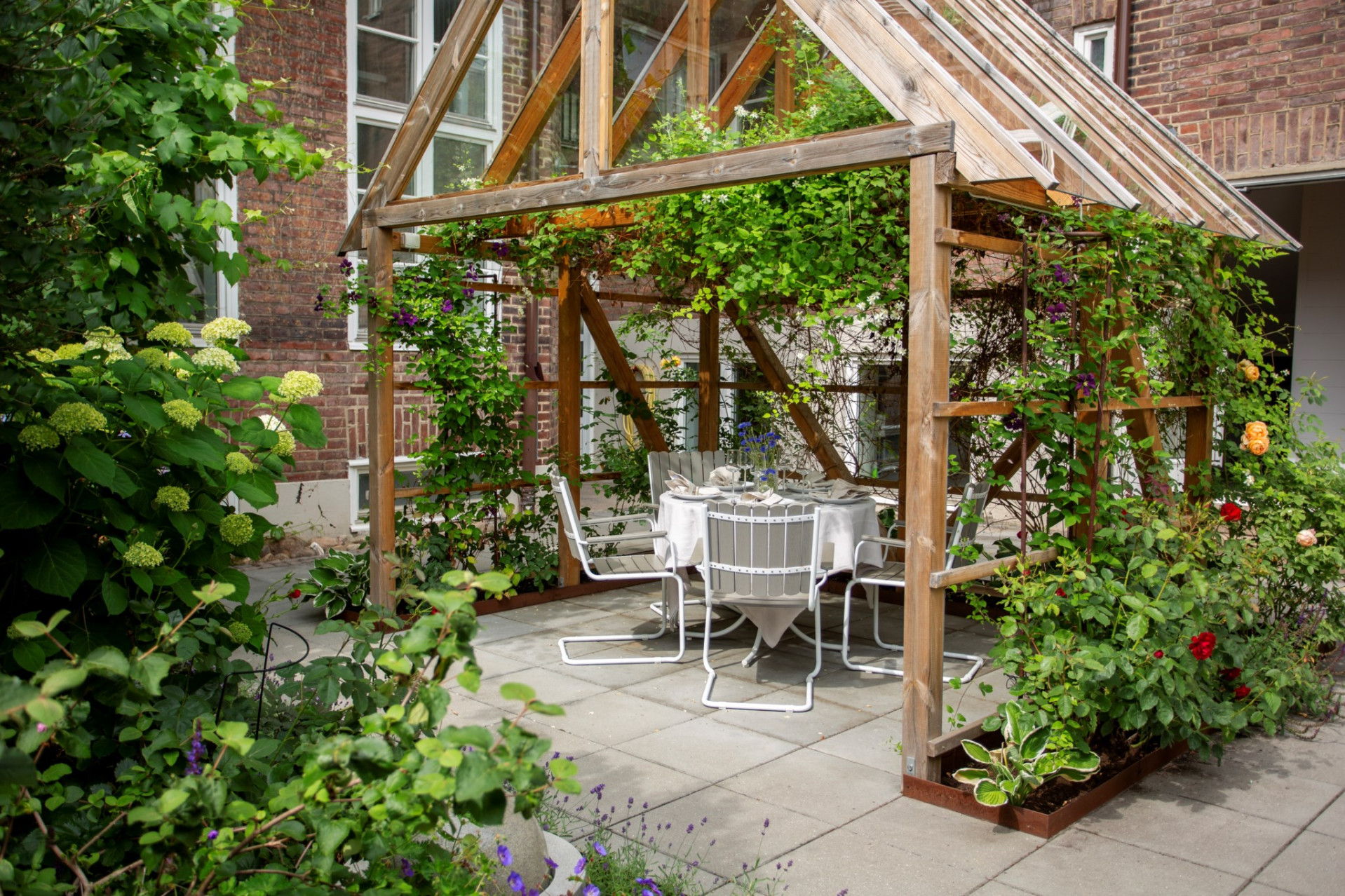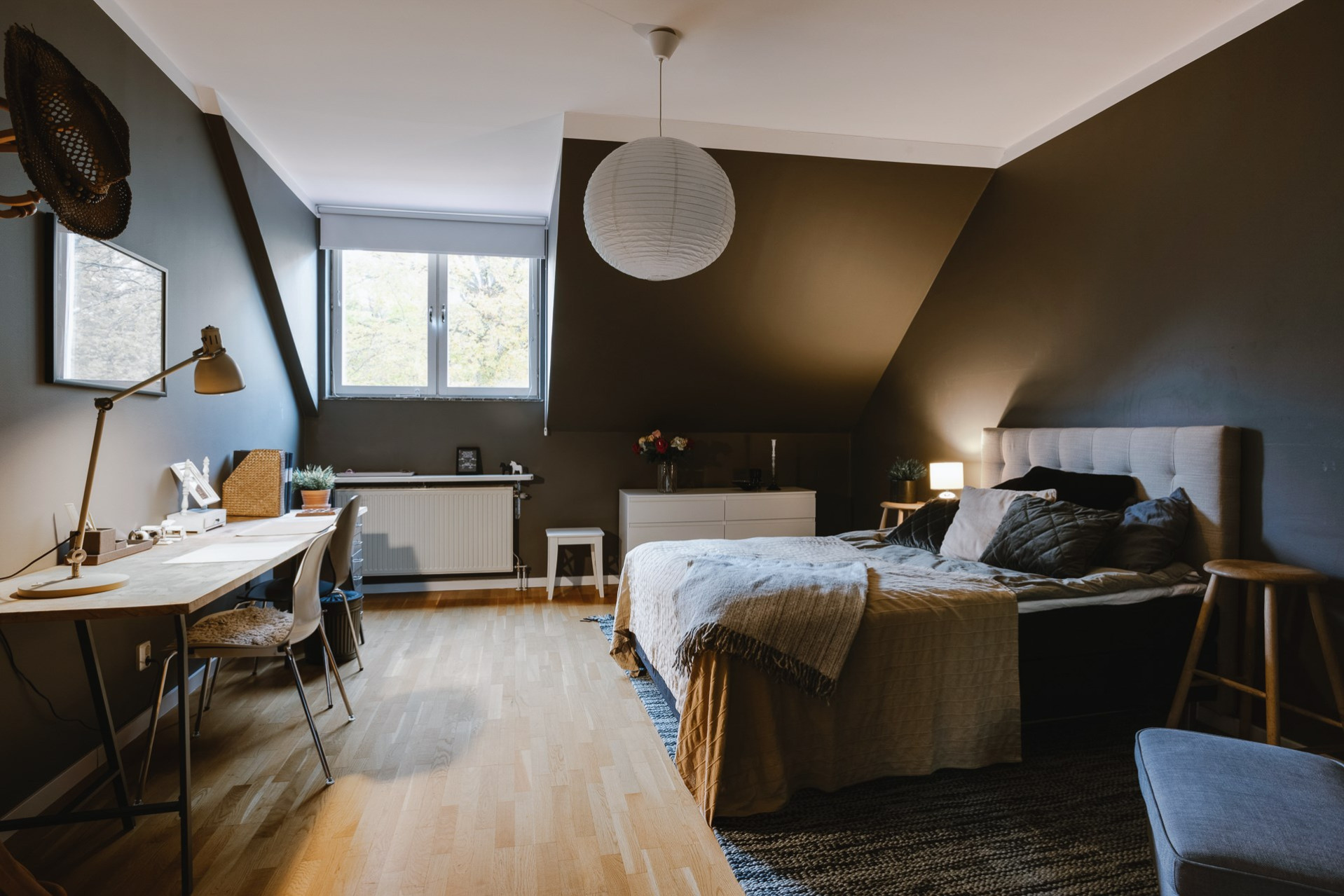 Från hallen nås det rofyllda sovrummet med vindskupa och utsikt mot Landborgen. Här finns bra förvaring i befintliga garderober och möjlighet att komplettera med ytterligare skåp för den som önskar. Rummet rymmer enkelt en dubbelsäng, nattduksbord och skrivbord – ett riktigt generöst sovrum.