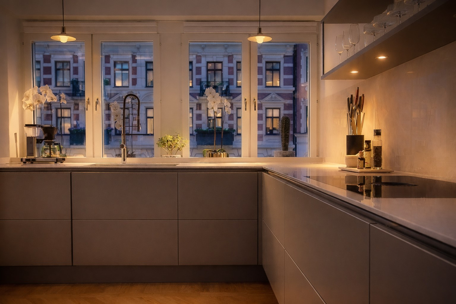 Påkostat KÖK från HTH med kyl och frys, diskmaskin, ugn och micro från Siemens samt häll med integrerad fläkt från Bora.