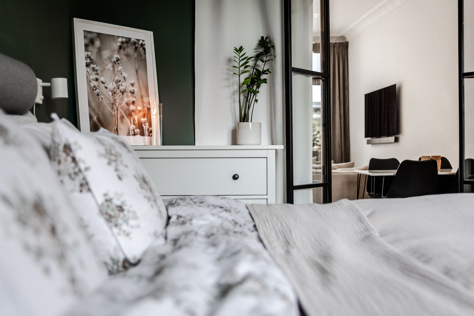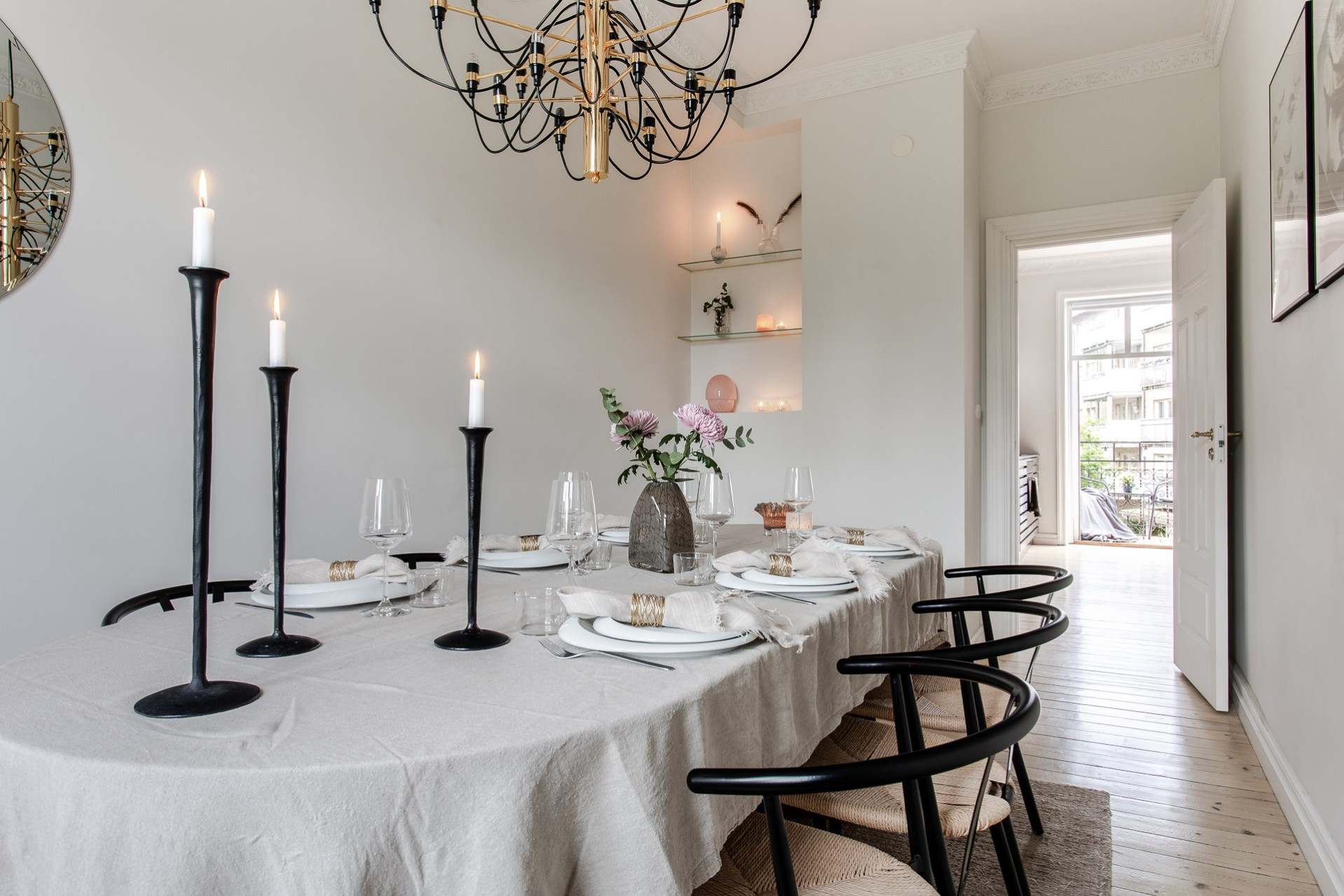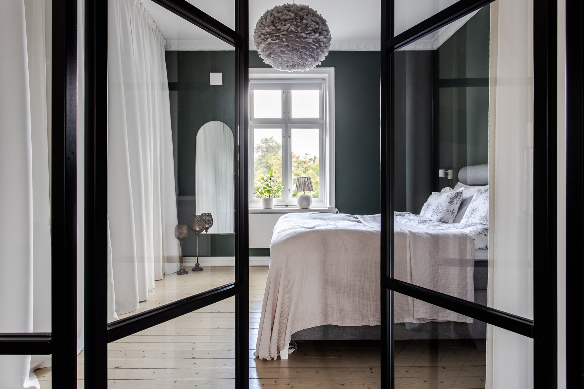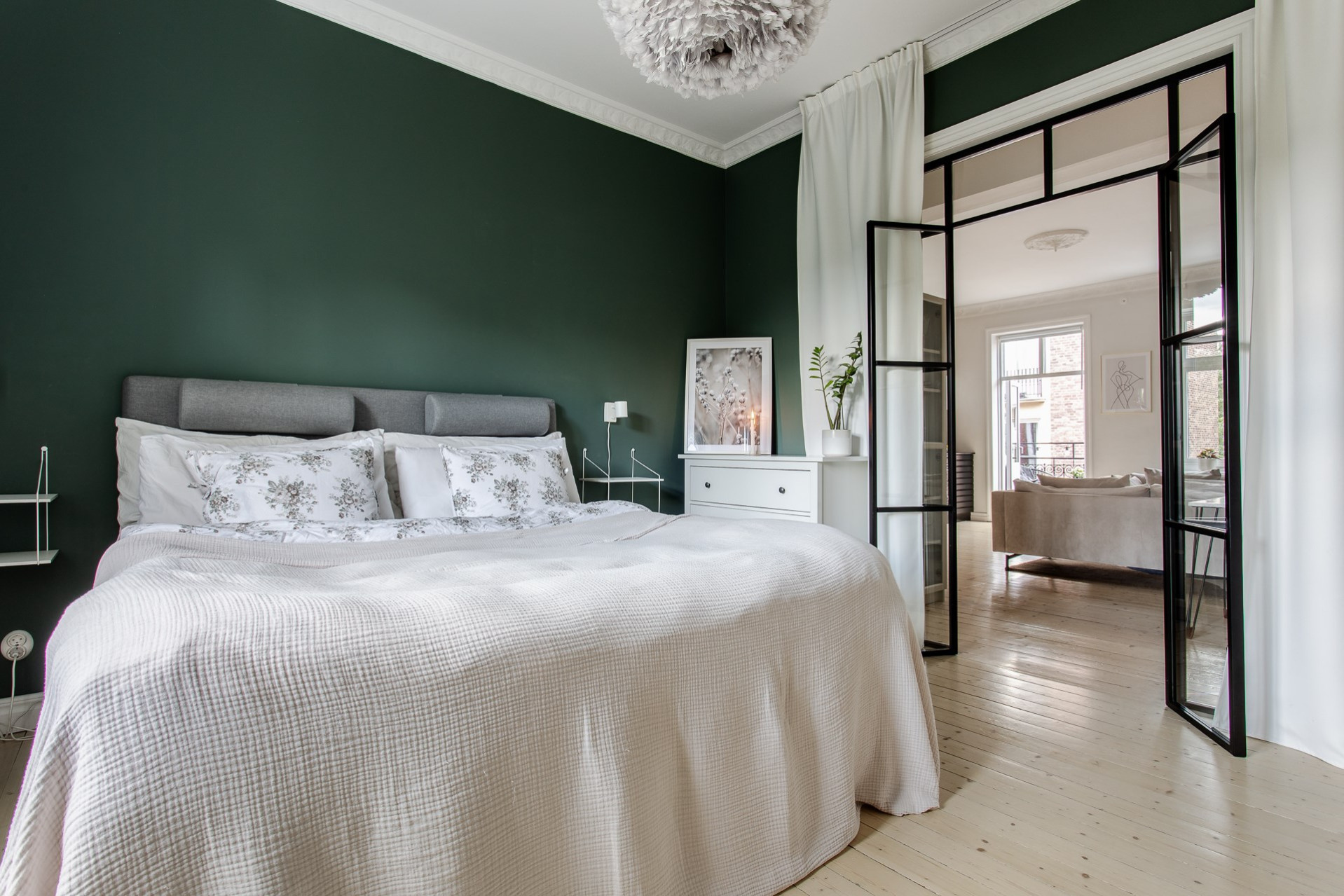 Lägenhetens andra sovrum används idag som en lyxigare matsal för ett större sällskap. Även detta rum är lugnt beläget mot innergården och är ett perfekt gästrum, hemmakontor eller precis som idag - lyxig matsal.