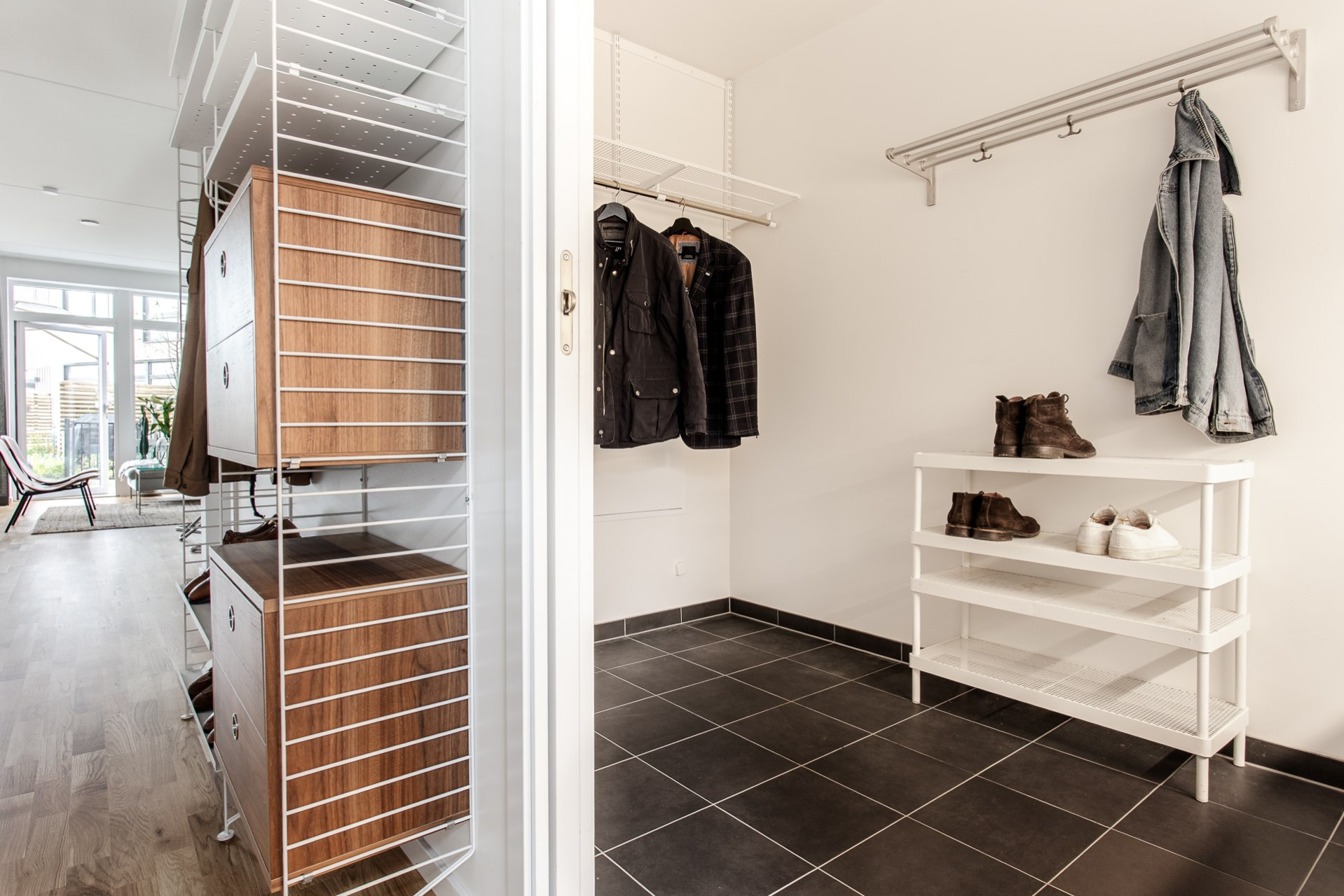 Ett rum som kan användas som ett sovrum eller kontor. Här får ni plats med en säng och ett skrivbord. Önskar ni i stället en större hall med mer förvaringsmöjligheter så kan ni enkelt ta ner väggen mellan rummet och hallen.