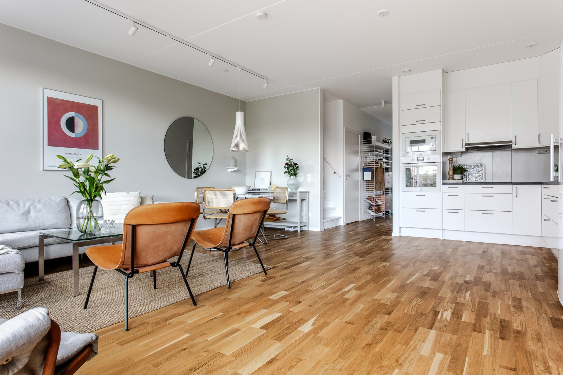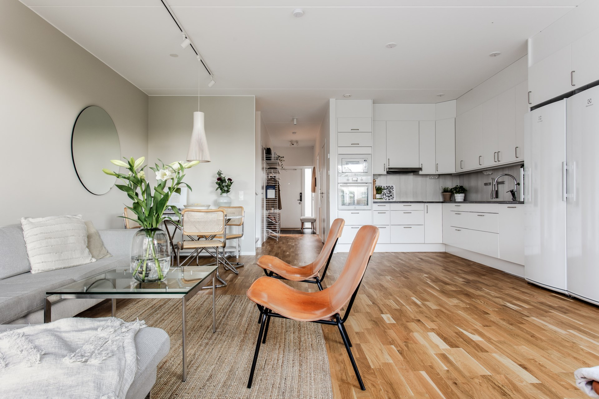 Genomgående i bostaden (förutom i badrum, delar av hall och tvättstuga) ligger ett stilrent ekparkett med underliggande behaglig golvvärme.