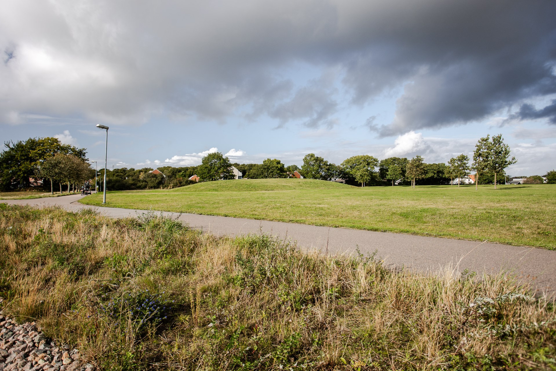 Välkomnande hall med plats för avhängning. På golvet ligger mörkt klinker som övergår till ett ekparkett. Från hallen nås samtliga rum på entréplan, ett uppskattat förråd samt trappan upp till övre plan. Önskas en större hall med mer förvaring kan man enkelt plocka bort väggen till sovrummet/kontoret och bygga på med garderober i stället ( se alternativ planritning)