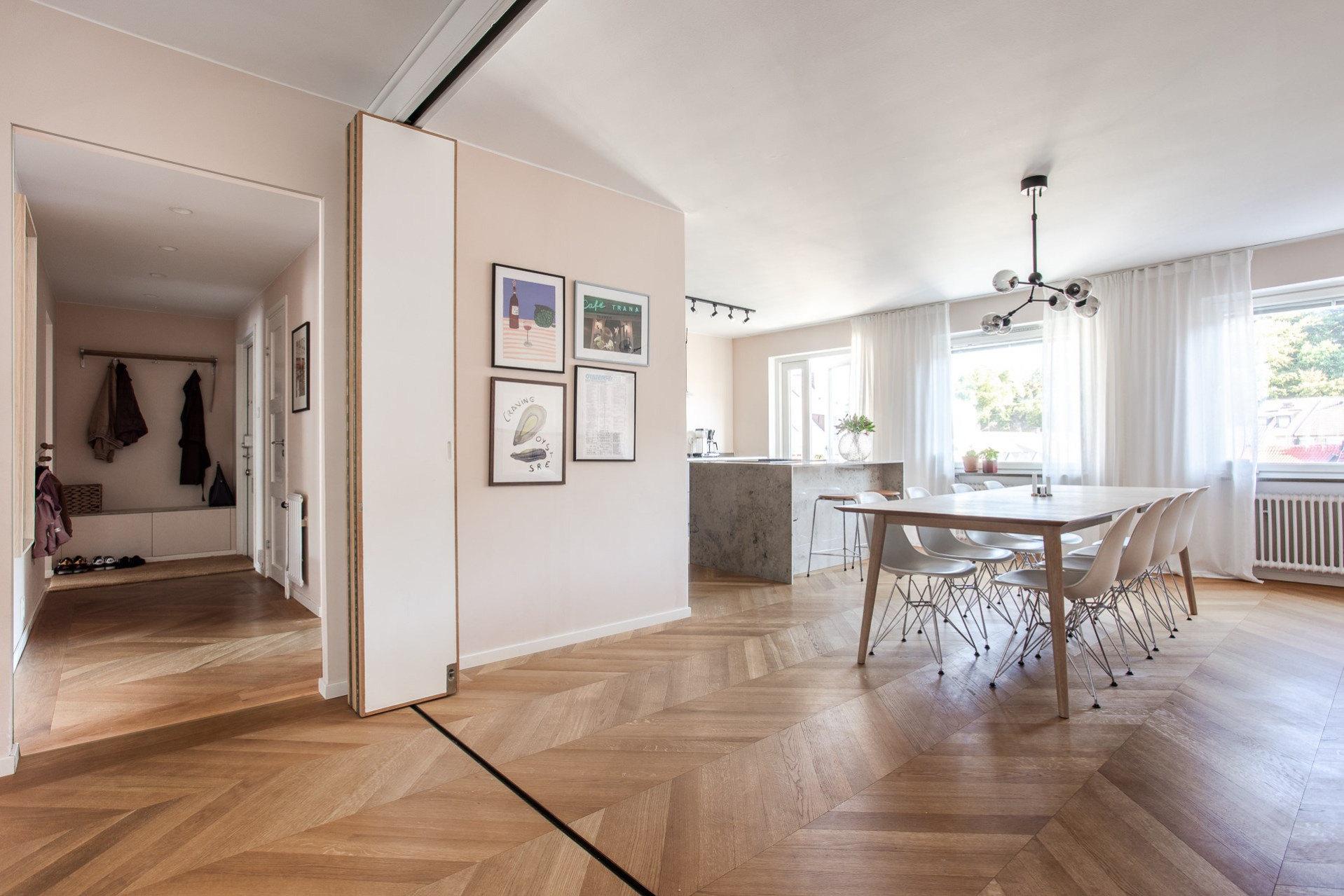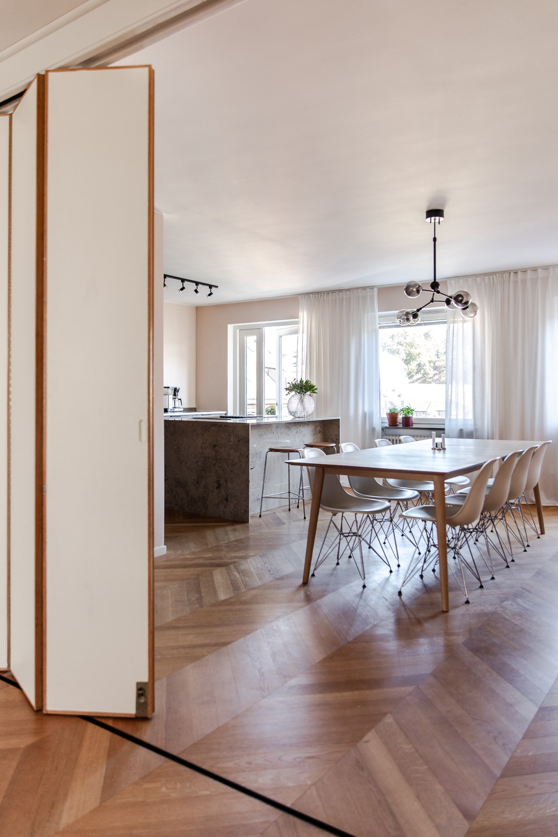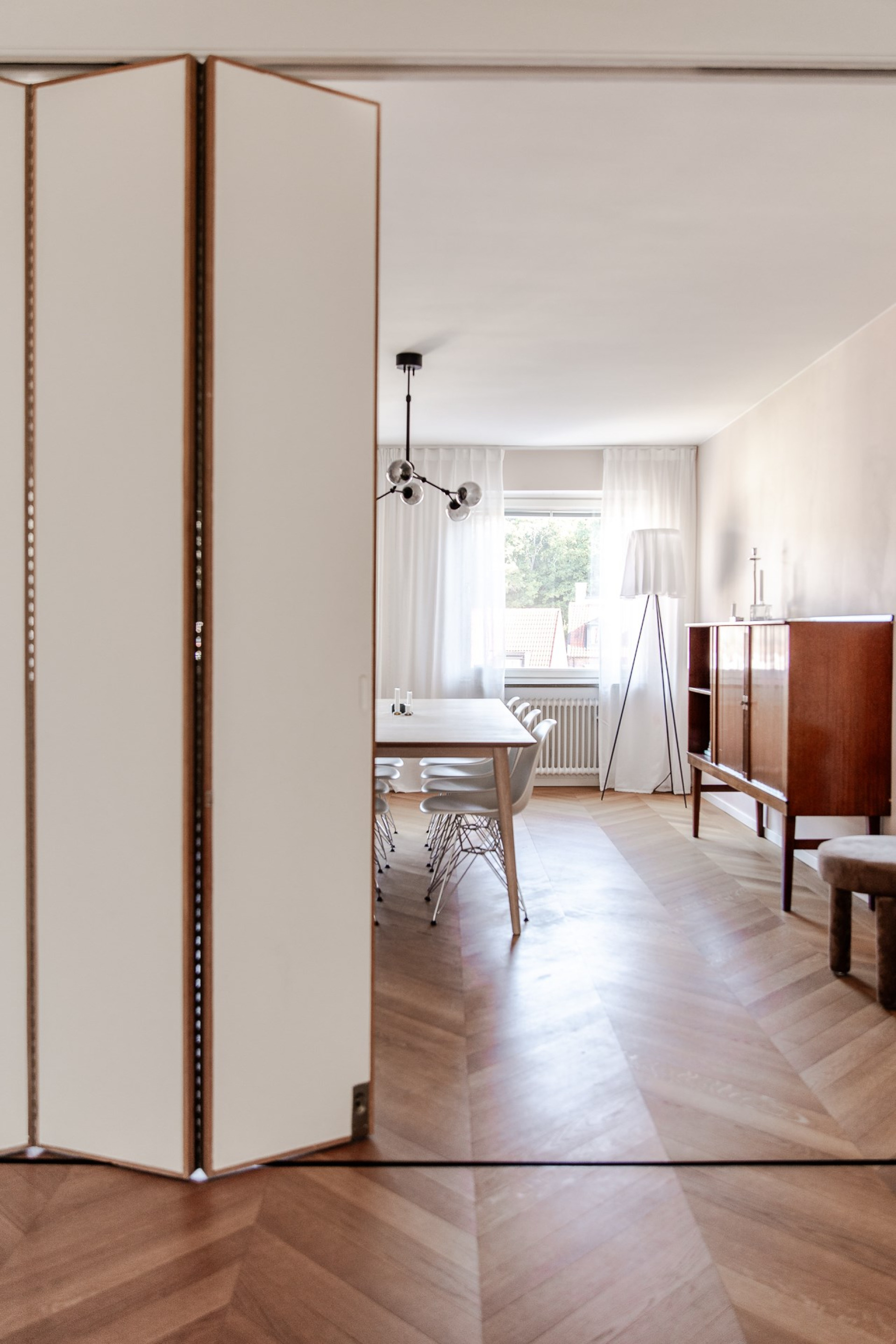 Mot vardagsrummet går det som sagt att dela av med hjälp av vikväggen efter tycke och behov.