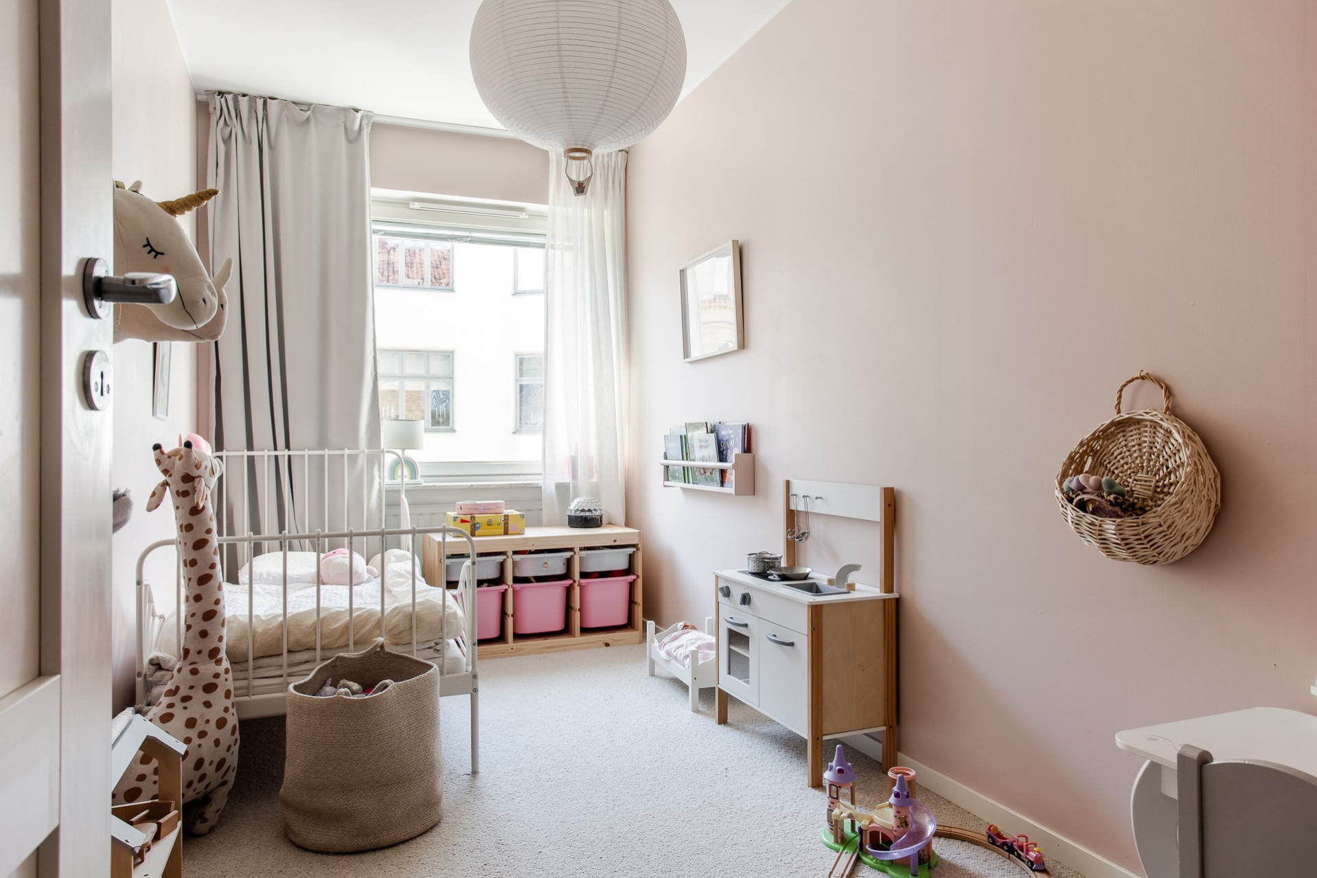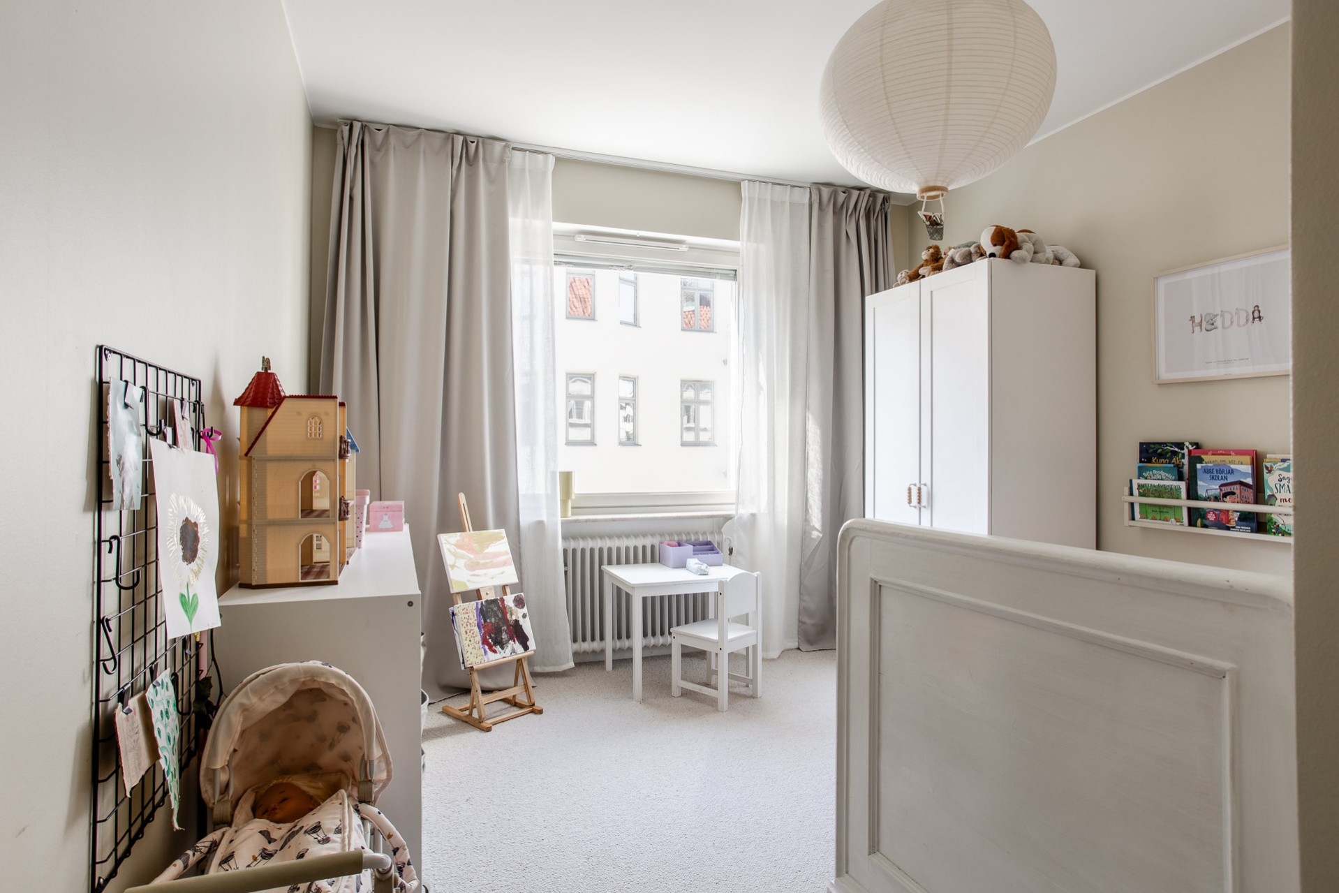 Från vardagsrummet finns även tillgång till en av lägenhetens två balkonger, härifrån erbjuds utsikt längs Drottninggatans stråk hela vägen in mot city!