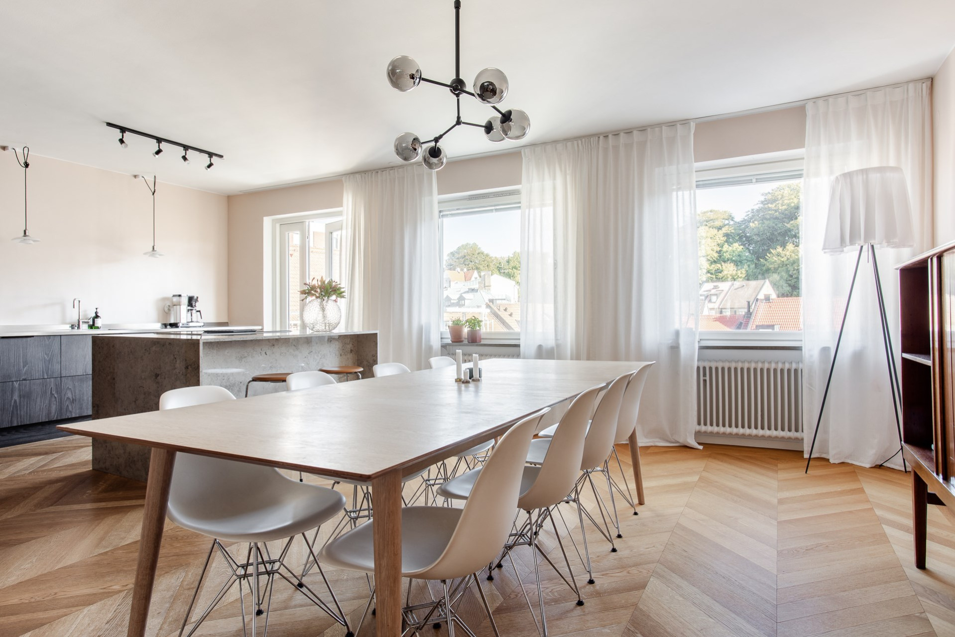 Matrummet är väl tilltaget och erbjuder plats för många sittande. Utrymmet är i öppen planlösning både mot vardagsrummet och köket.