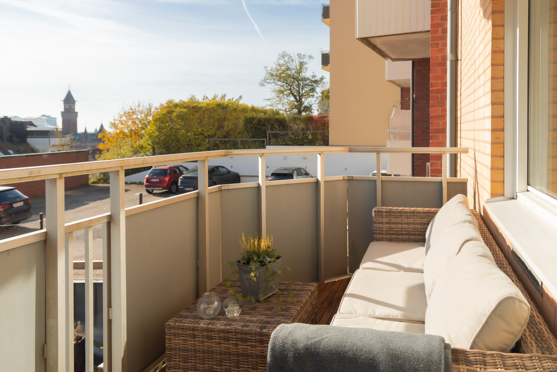 Stor möbleringsbar balkong i bästa söderläge. Trevlig utsikt över stadens landmärken och dessutom förfogar föreningen över en mysig innergård. Souterräng bebyggelsen gör dessutom att lägenheten med balkong placeras på högre läge inåt gården i förhållande till gatan.