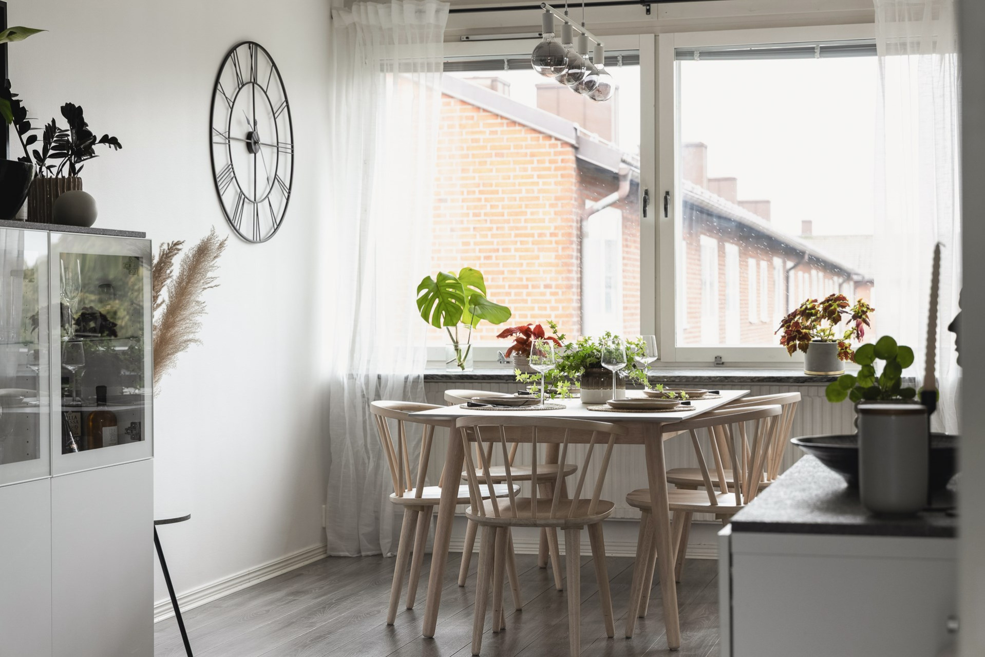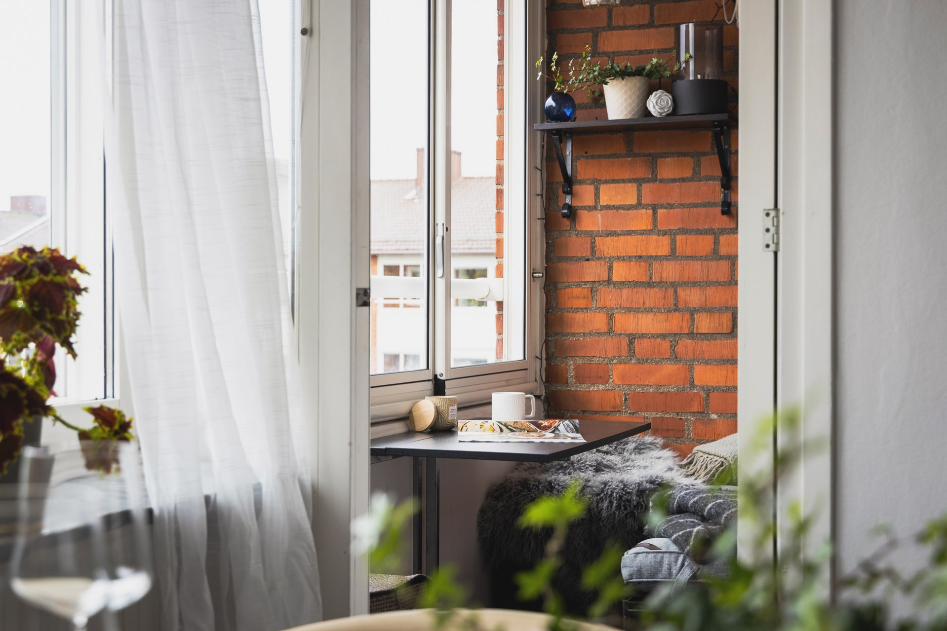 Vid matplatsen finns också utgången till den inglasade balkongen.