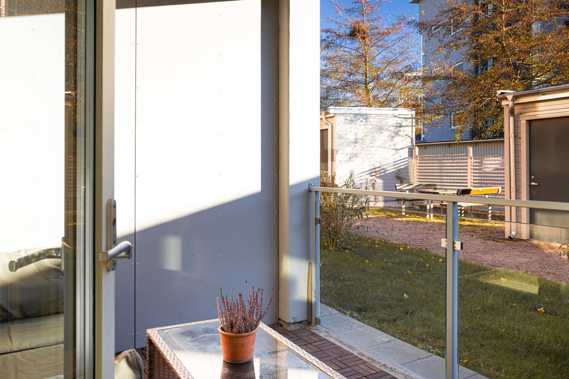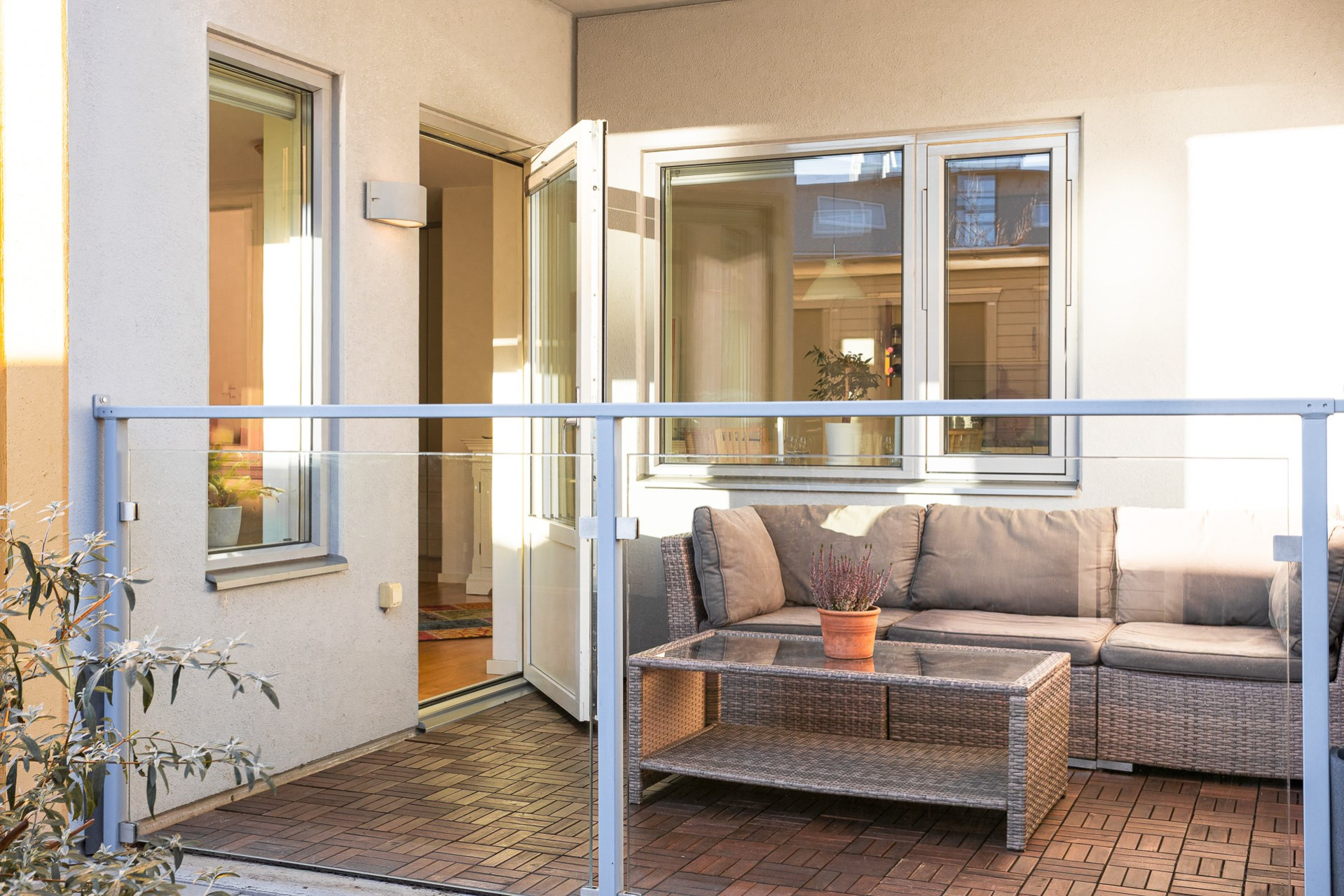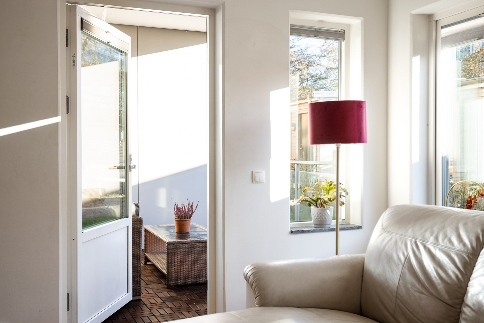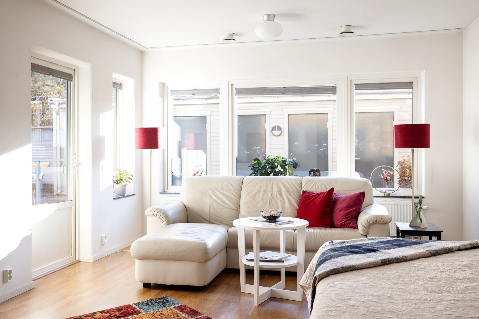 Generöst vardagsrum som erbjuder plats för båda soffa och en säng. Stora fönsterpartier som släpper in rikligt med ljus. Från vardagsrummet når ni den uppskattade uteplatsen/balkongen i soligt söderläge, som blir en förlängning av bostaden under våren och sommaren.
