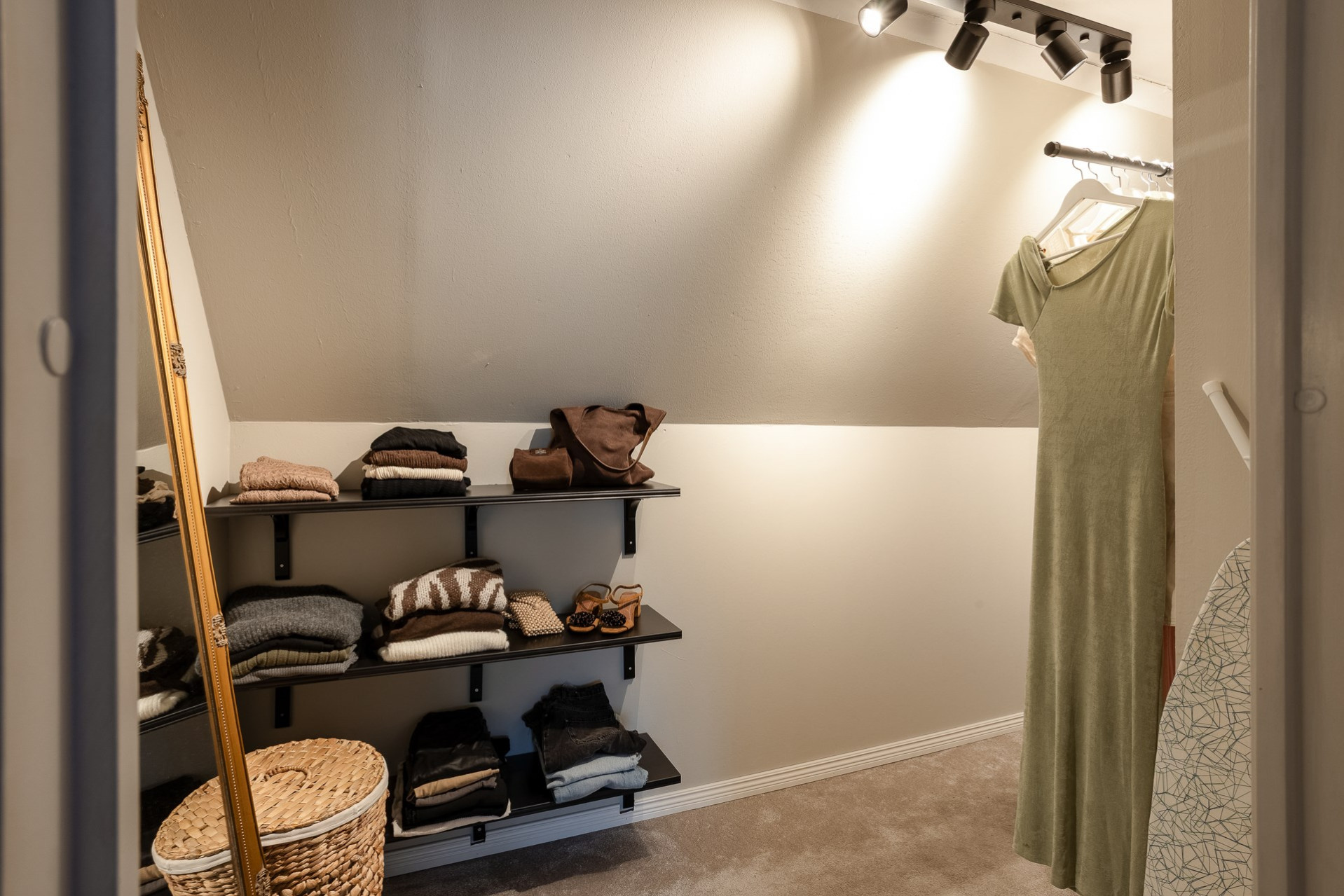 Intill badrummet nås en riktigt stor klädkammare som rymmer både kläder, skor och diverse annat, ett verkligt praktiskt och stort utrymme!