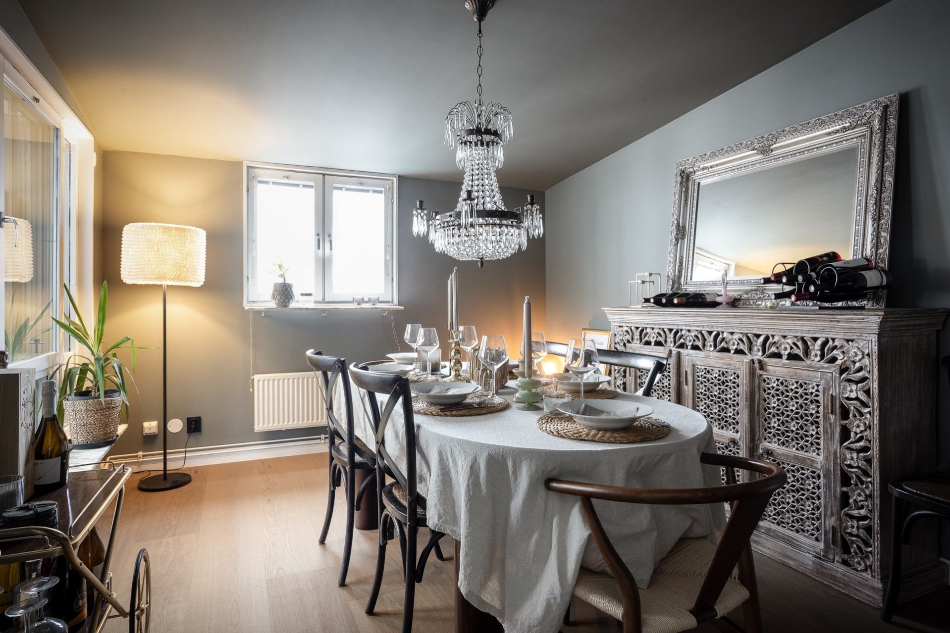 Sovrummet i entréplan fungerar idag som matrum men fungerar självklart fortfarande bra som sovrum för den som vill!