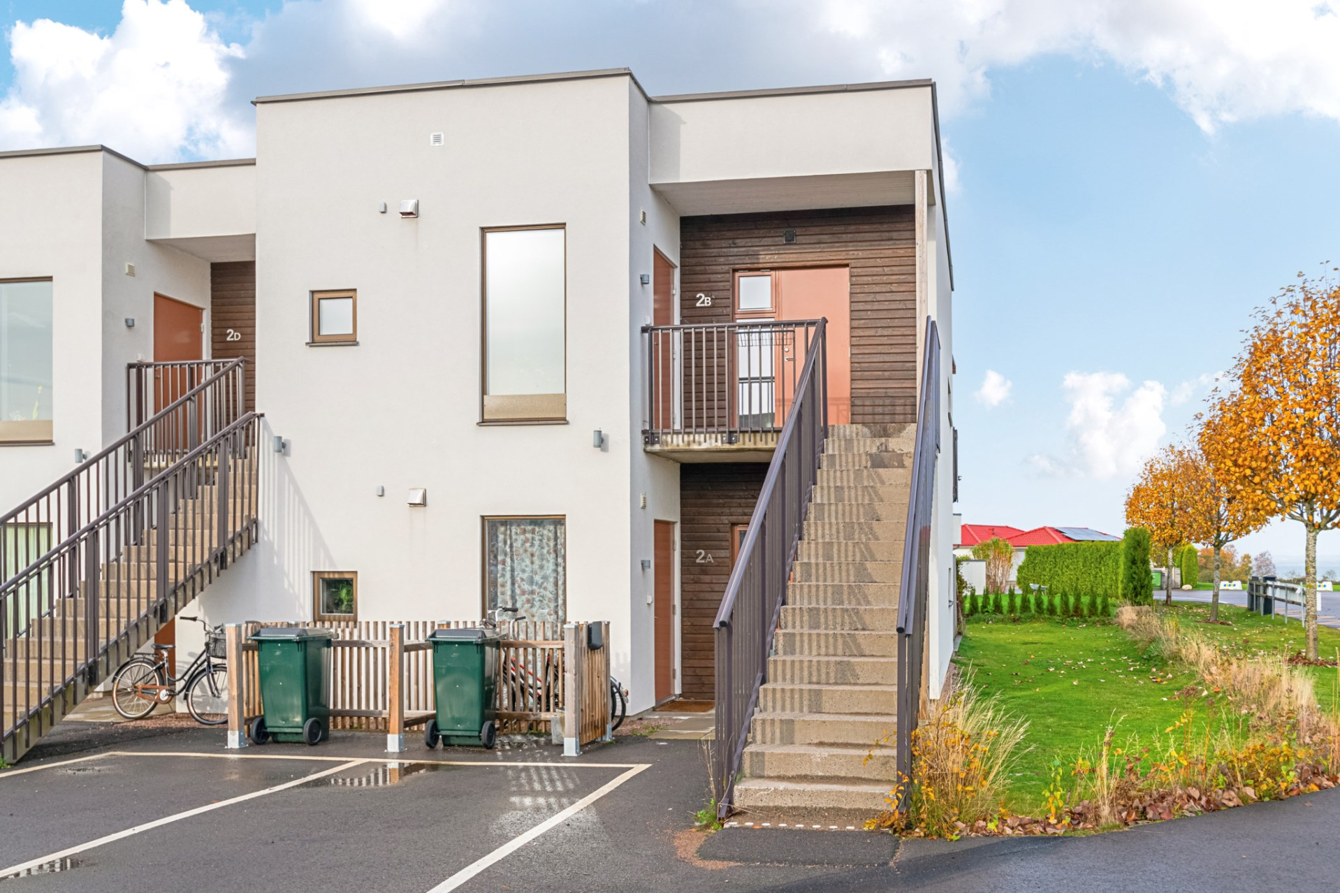 Parkering finns vid entrésidan vid respektive bostad.