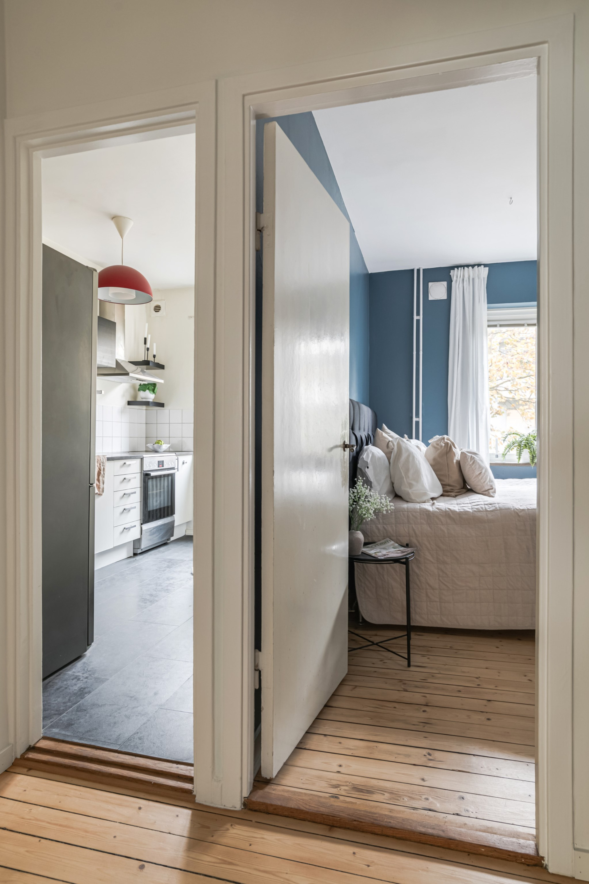 Det finns möjlighet att ställa barnvagn under trappan till vänster om källardörren i varje trapphus.