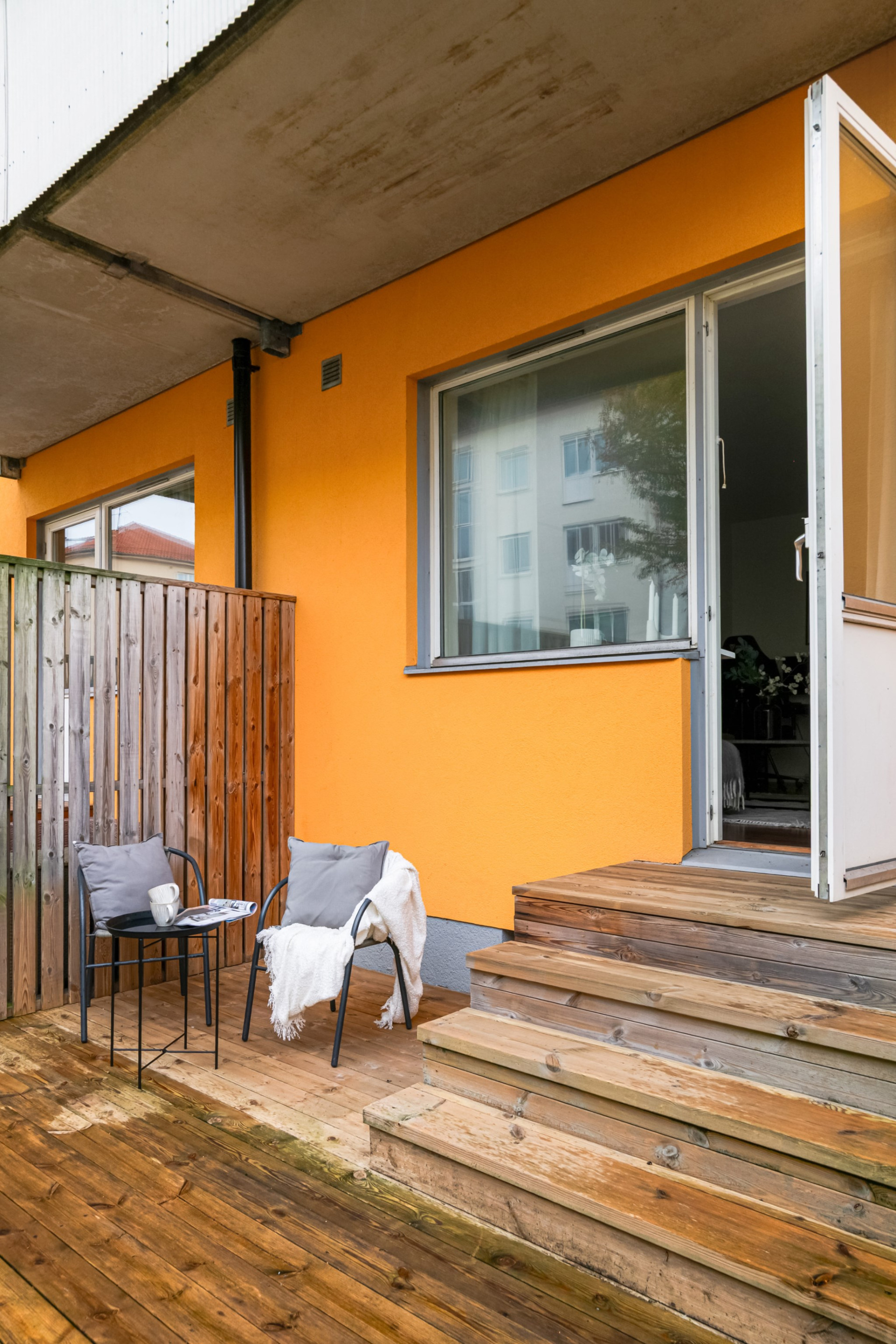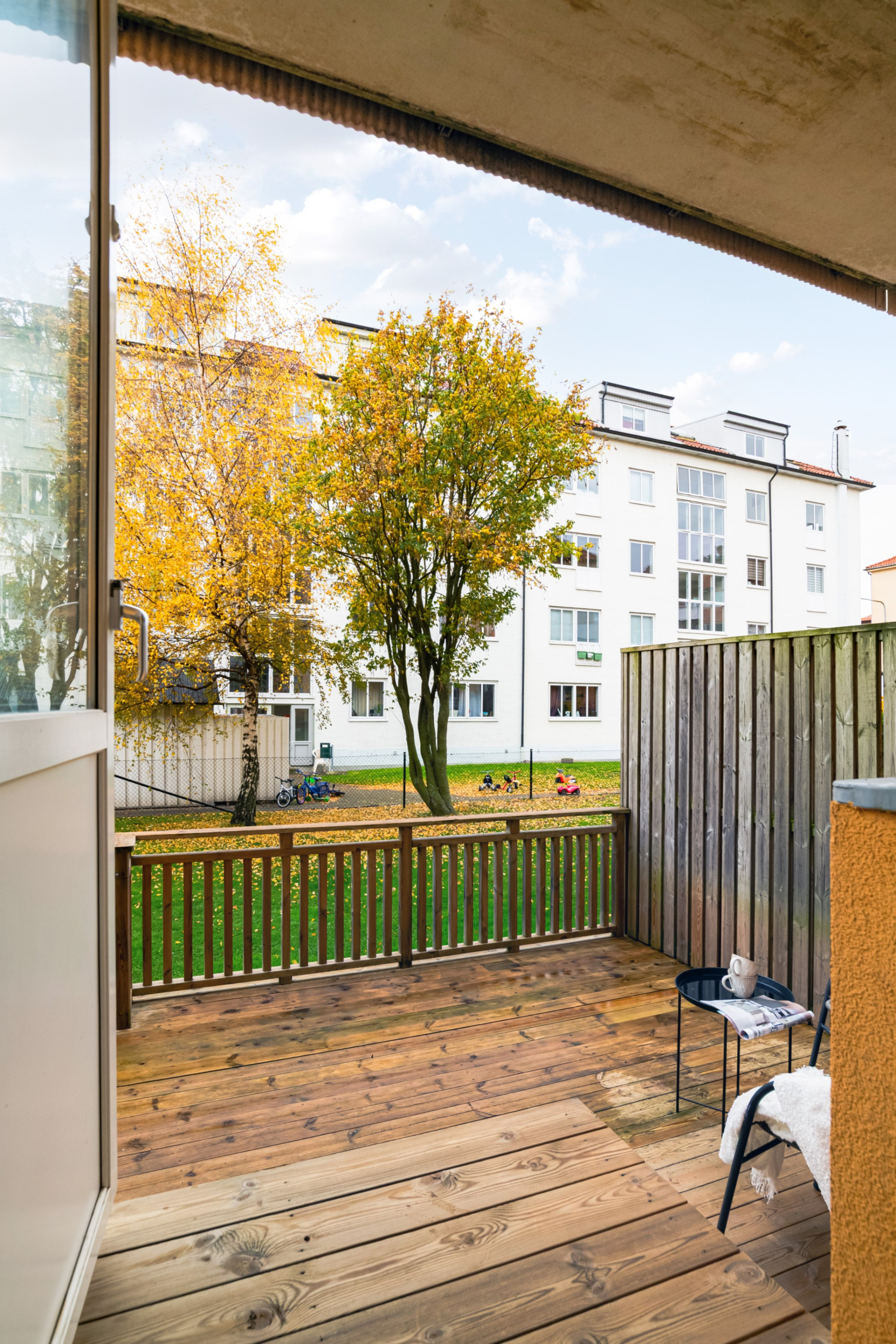 Underbar uteplats med trädäck i soligt västerläge!Bilplats