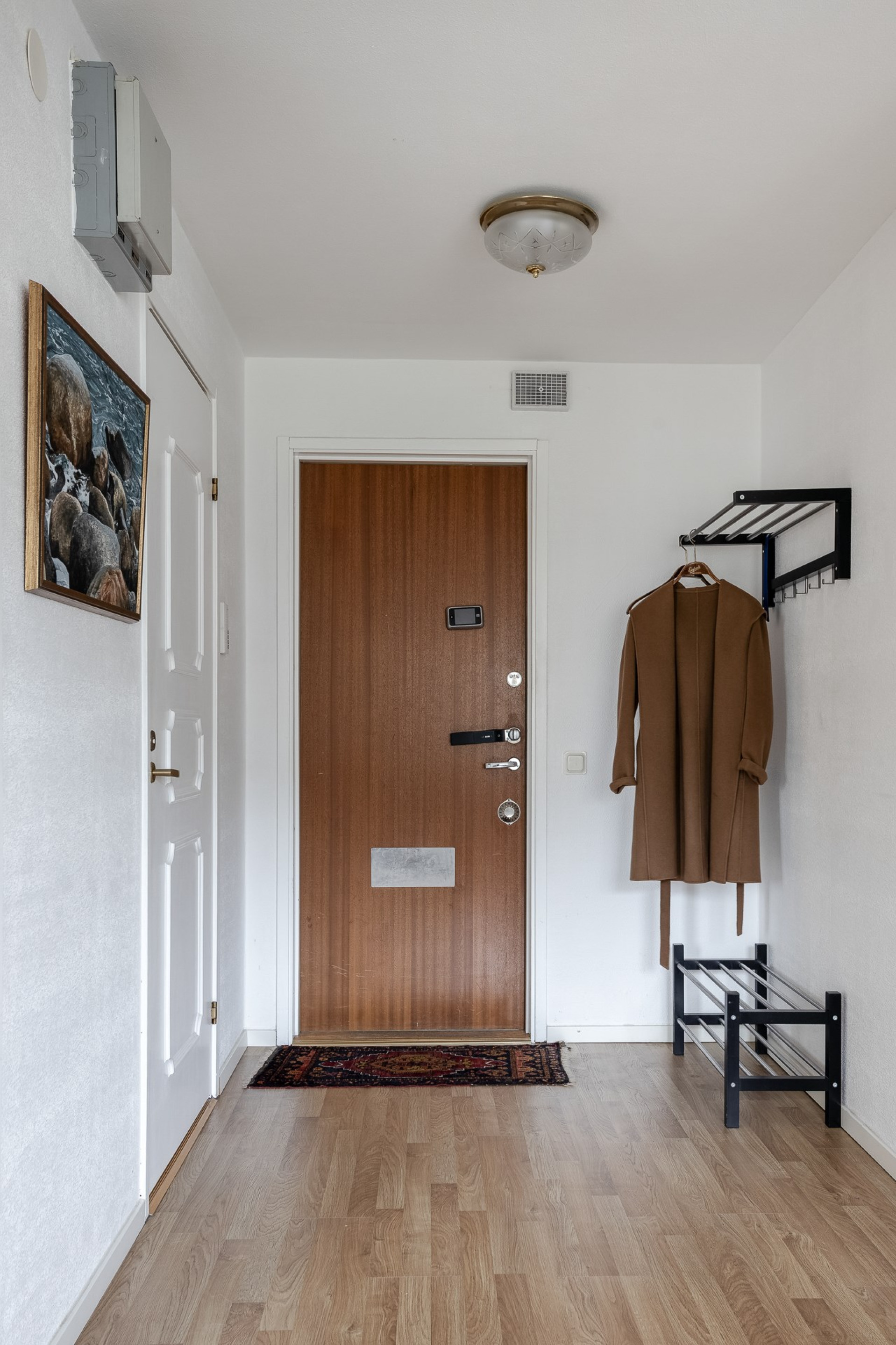 I hallen finns gott om avhängningsyta för ytterkläder och för skor.
