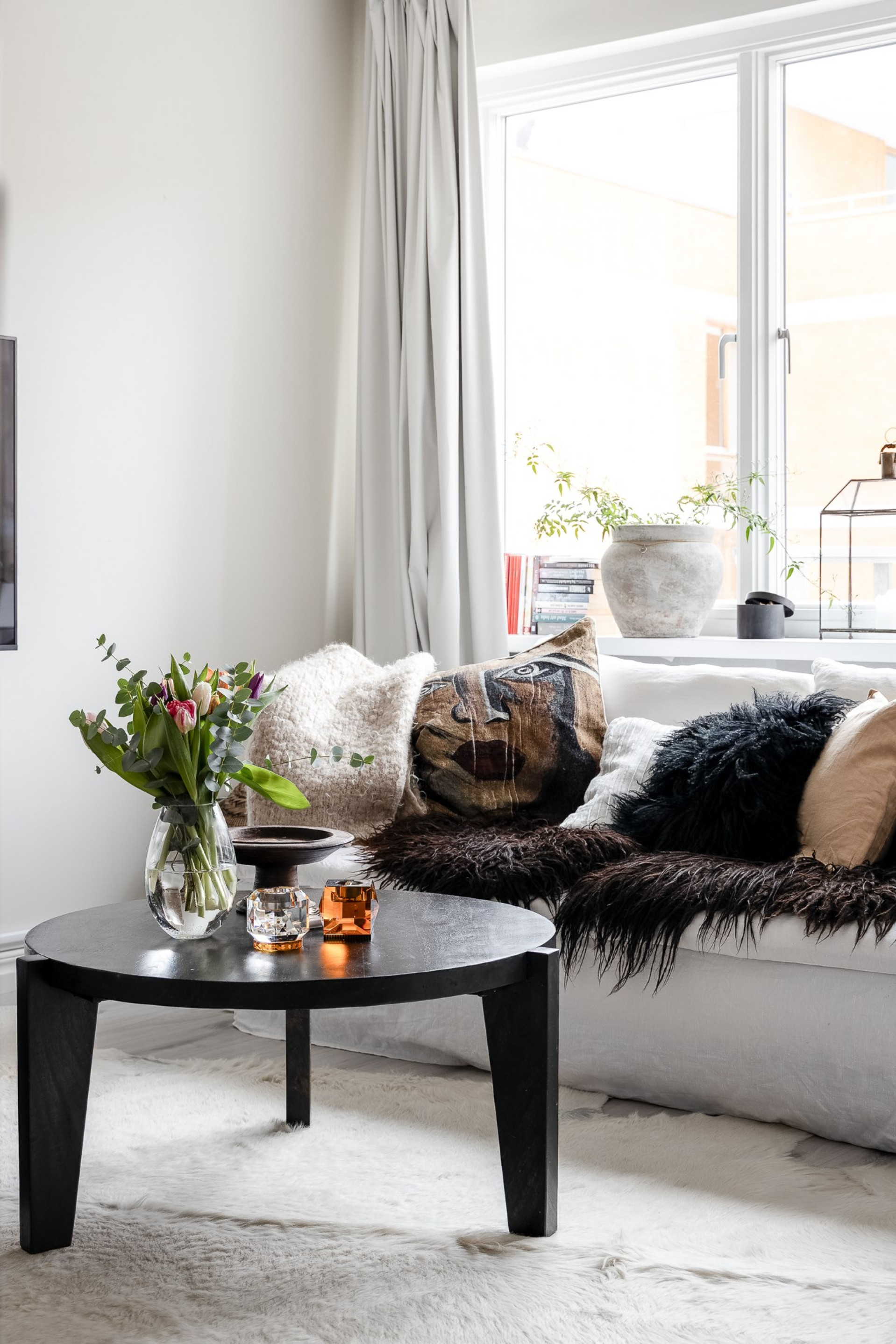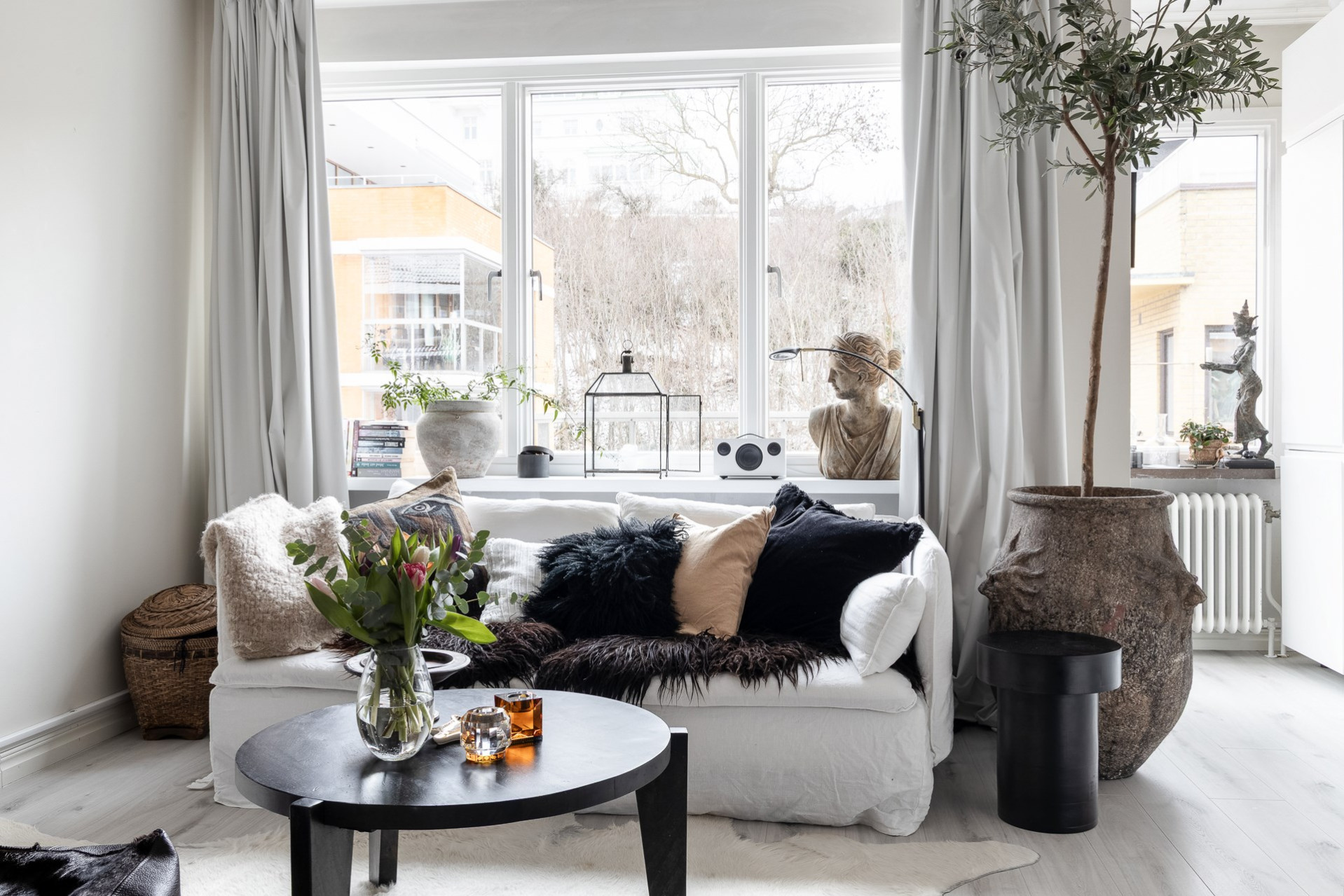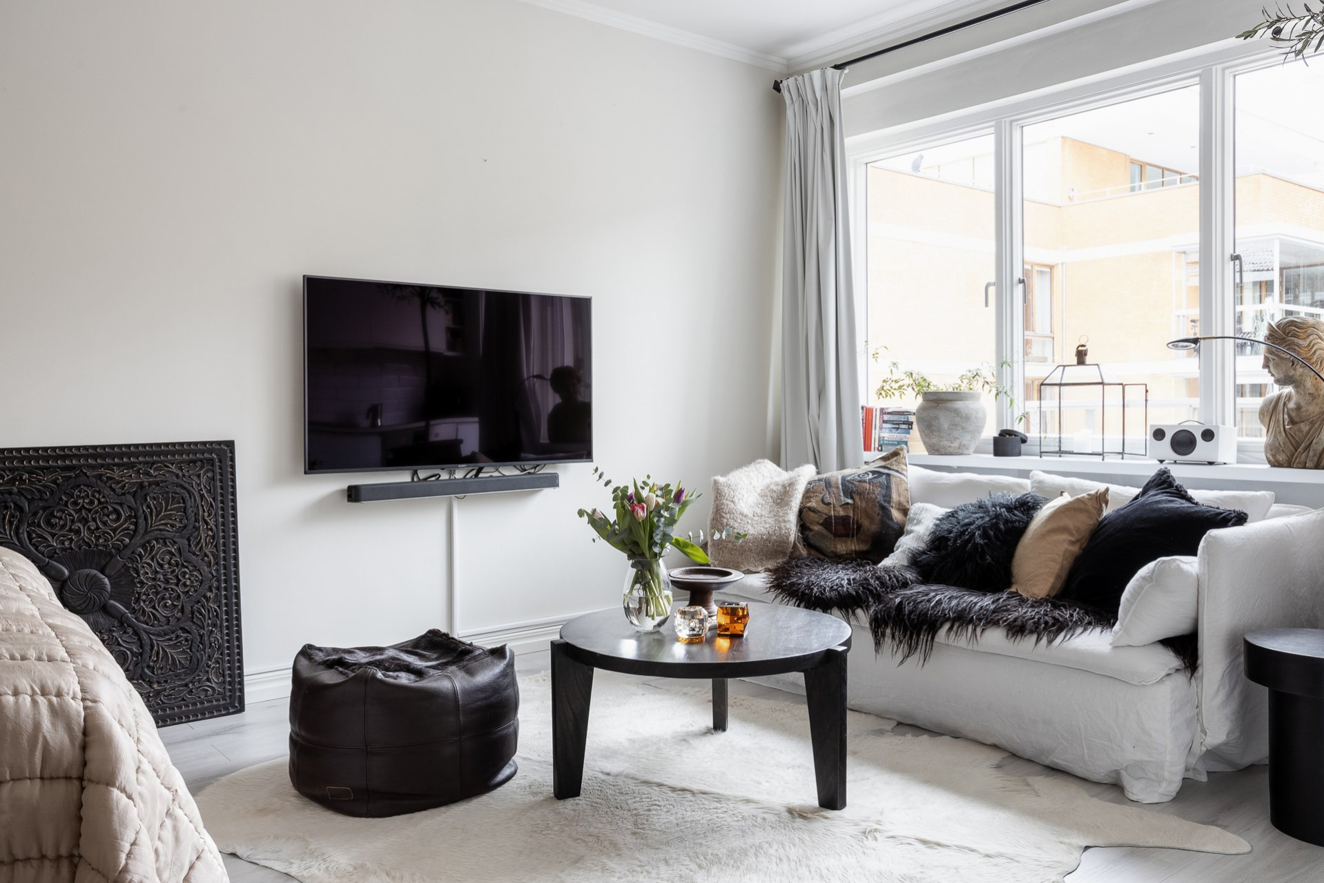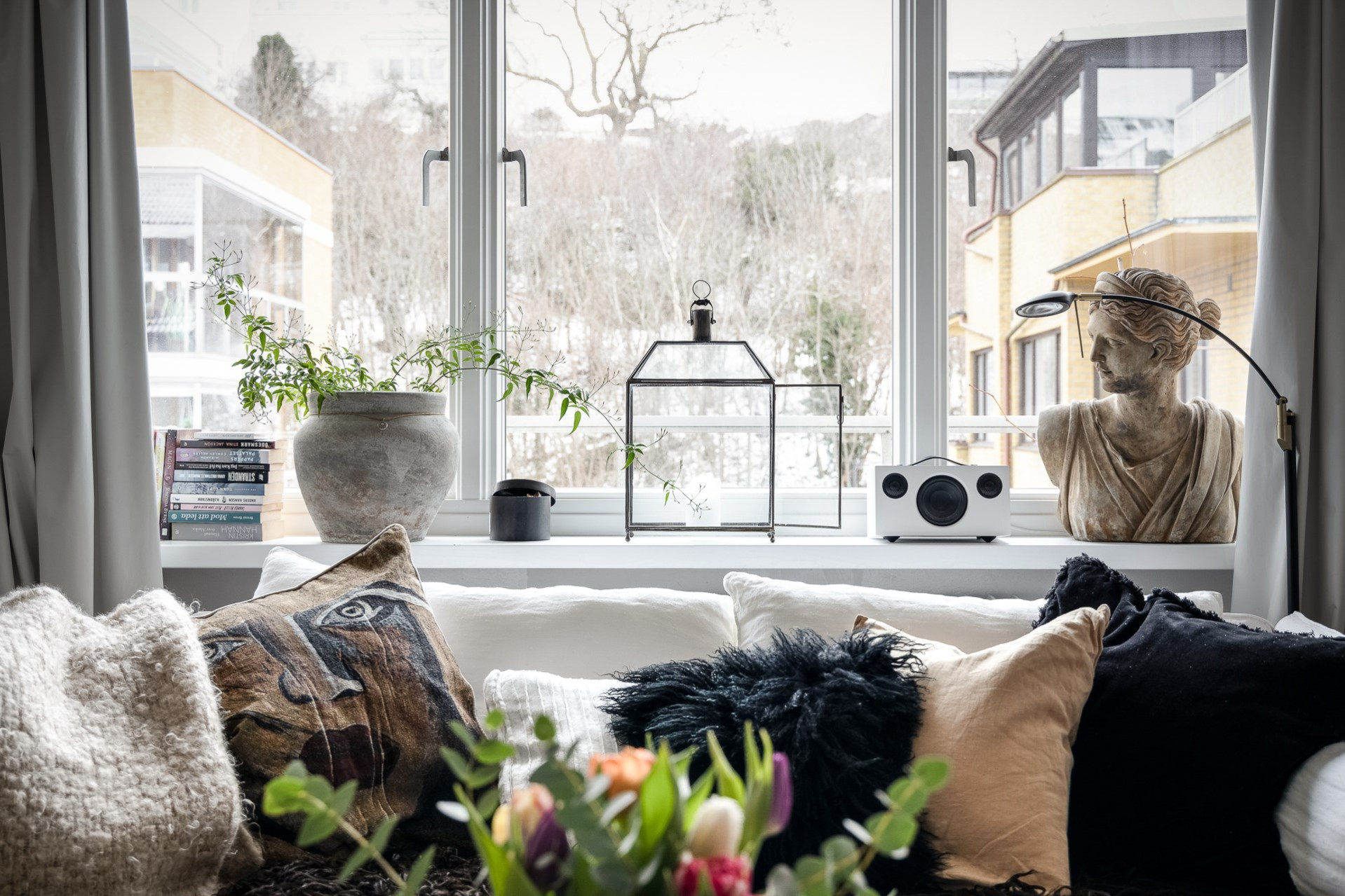 Rummet erbjuder plats till både dubbelsäng, matplats och soffhörna! Stora fina fönster som vetter mot den grönskade landborgen. En helglasad dörr till balkongen som erbjuder härlig morgonsol.