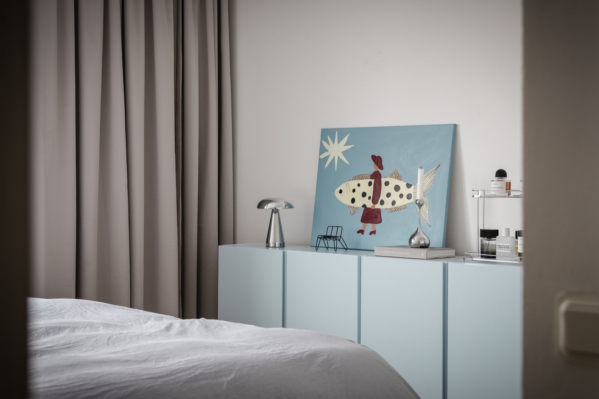 Sovrummet ligger lugnt och skyddat mot innergården. Här möts vi av vacker fiskbensparkett som även återfinns i vardagsrummet. Rummet rymmer enkelt en dubbelsäng samt ytterligare möbler, och förvaringen löses smidigt via en inbyggd garderobslösning.