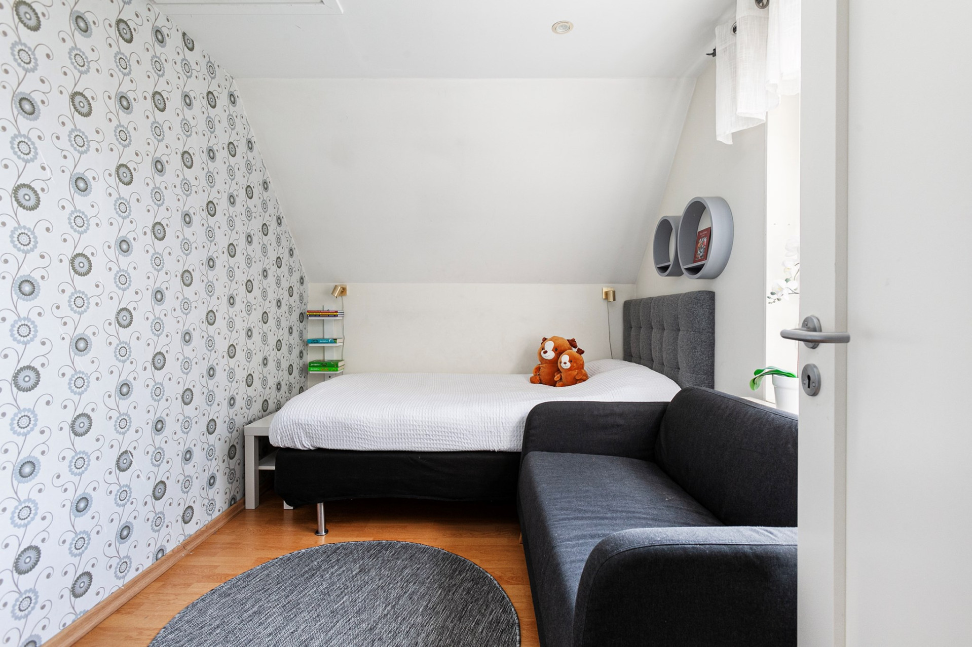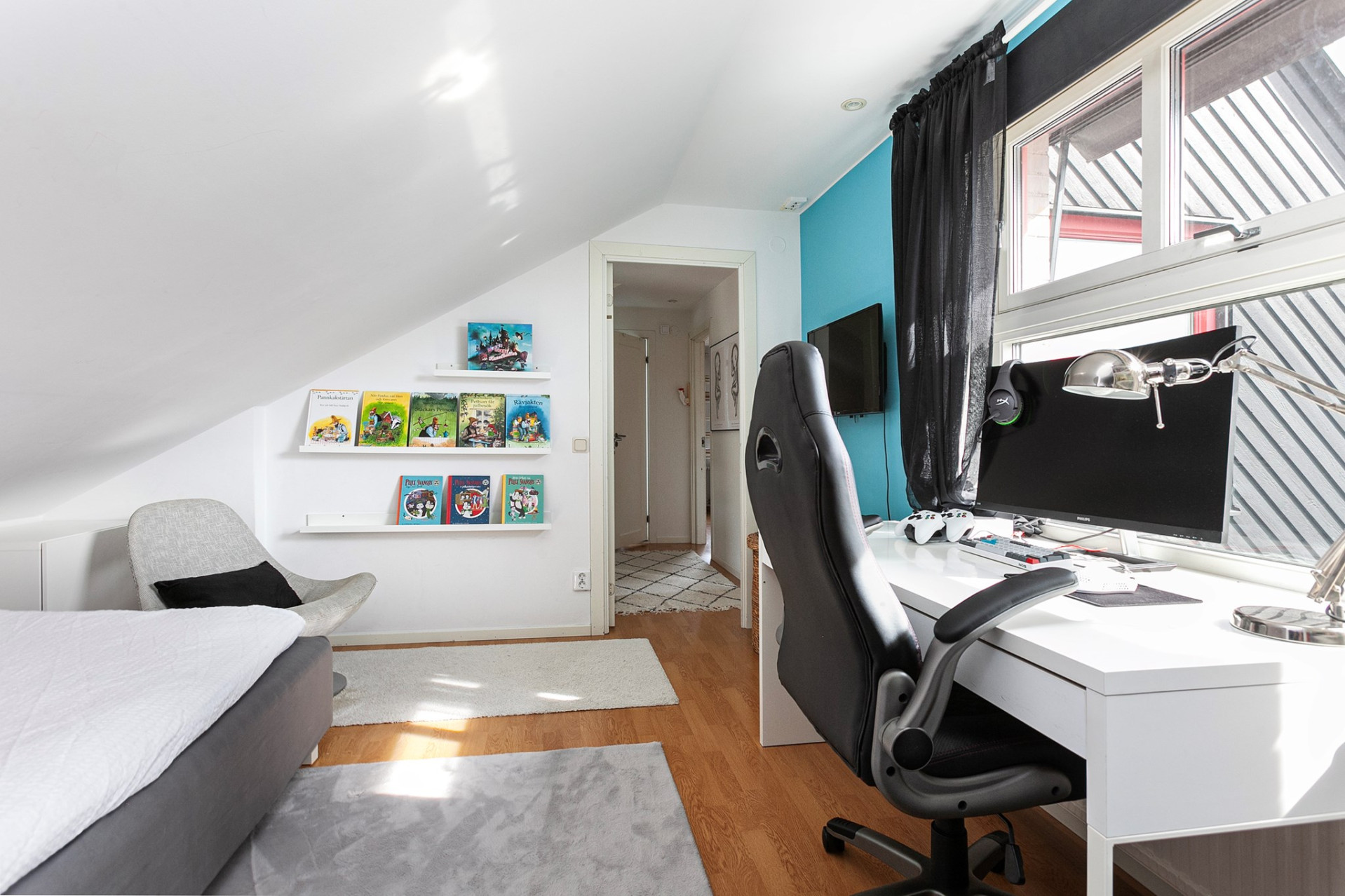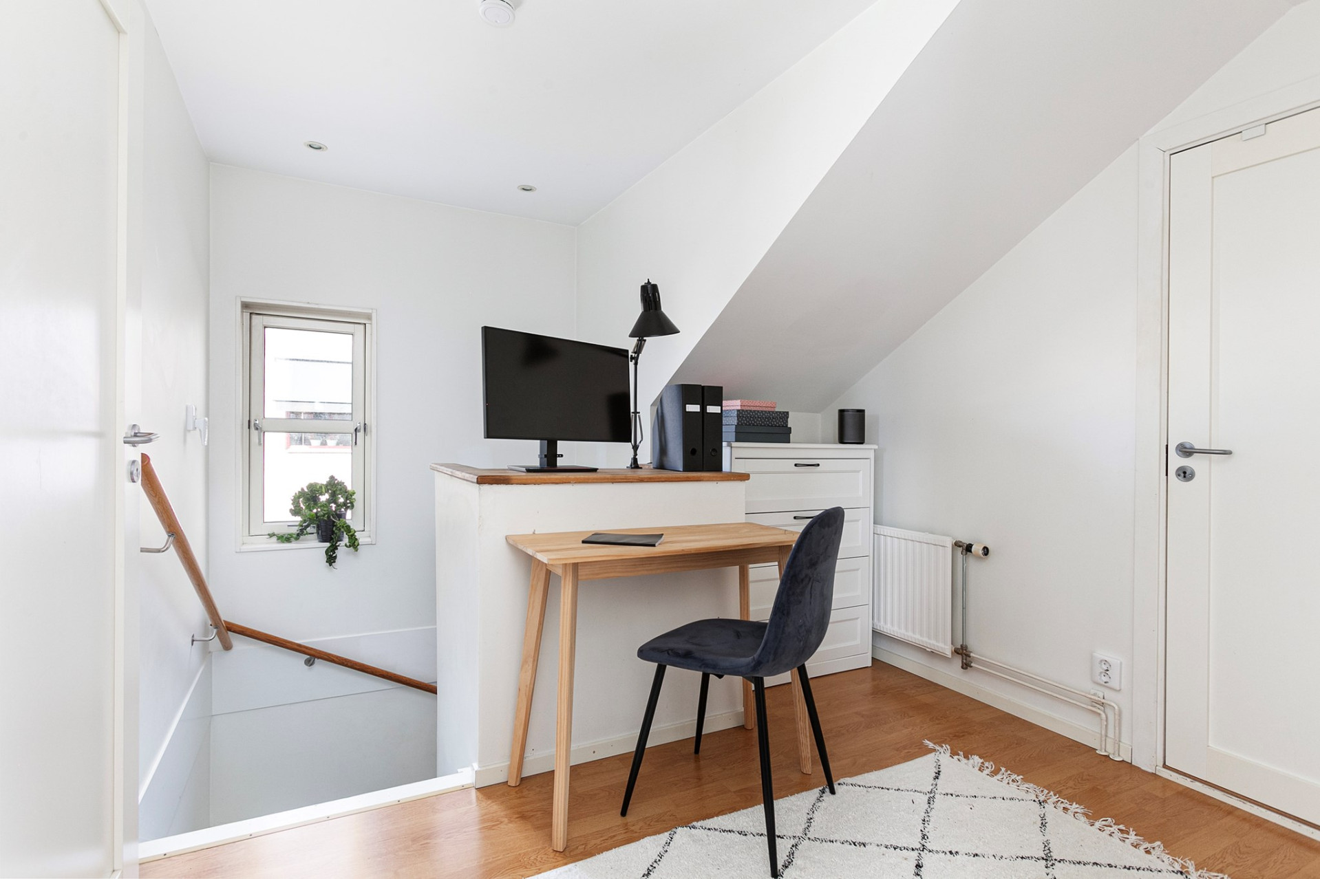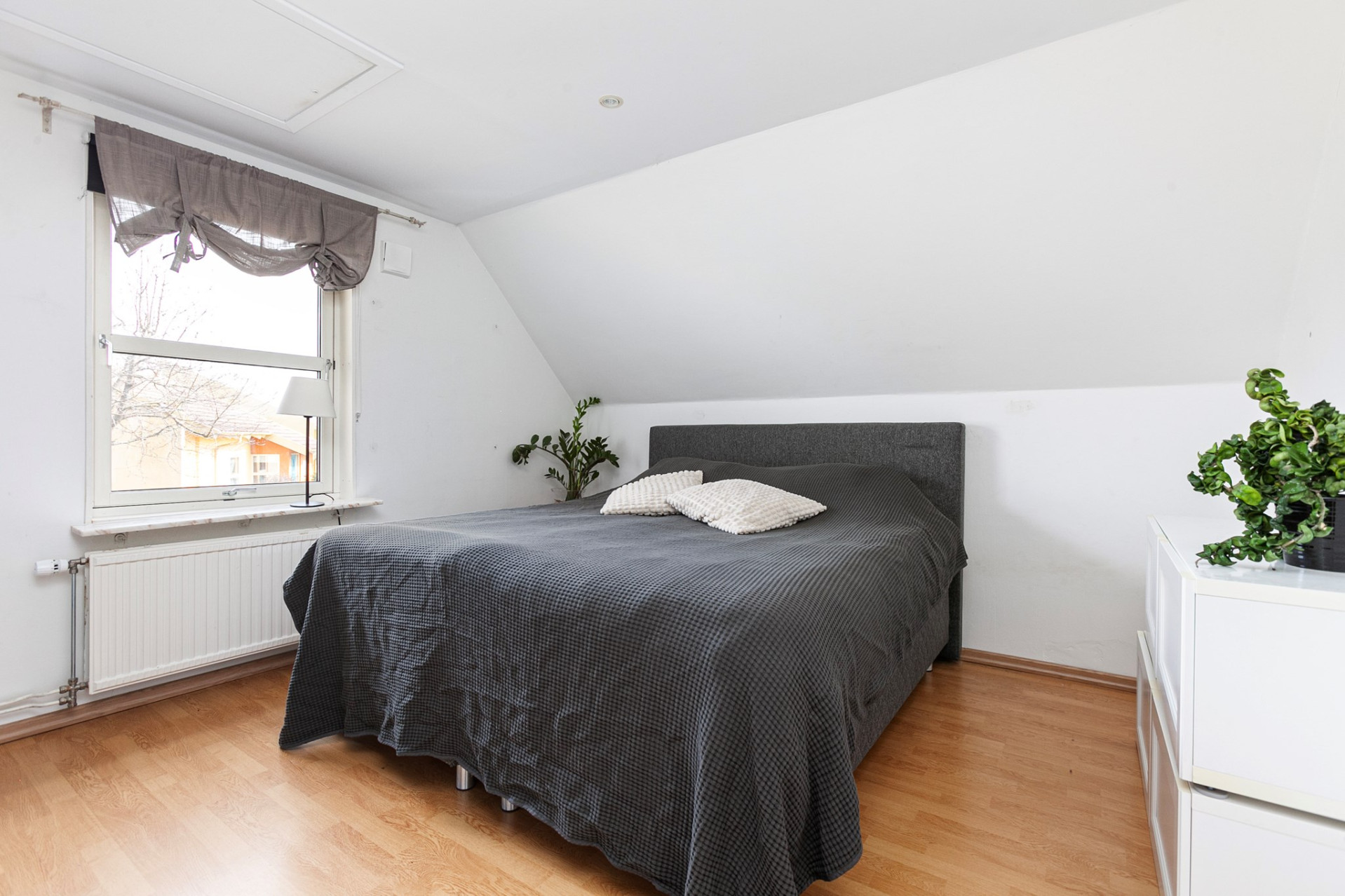 Möblerbar hall med laminatgolv som lämpar sig väl som exempelvis arbetsplats eller extra allrum. Tre välplanerade sovrum, samtliga med laminatgolv och fina ljusinsläpp. Stilrent badrum med klinkergolv och kaklade väggar, renoverat 2021. Utrustat med wc, handfat samt ett inbjudande hörnbadkar. Takfönster ger ett behagligt dagsljusinsläpp och förstärker rummets rymd. Här finns dessutom goda förvaringsmöjligheter i två mindre vindsutrymmen.