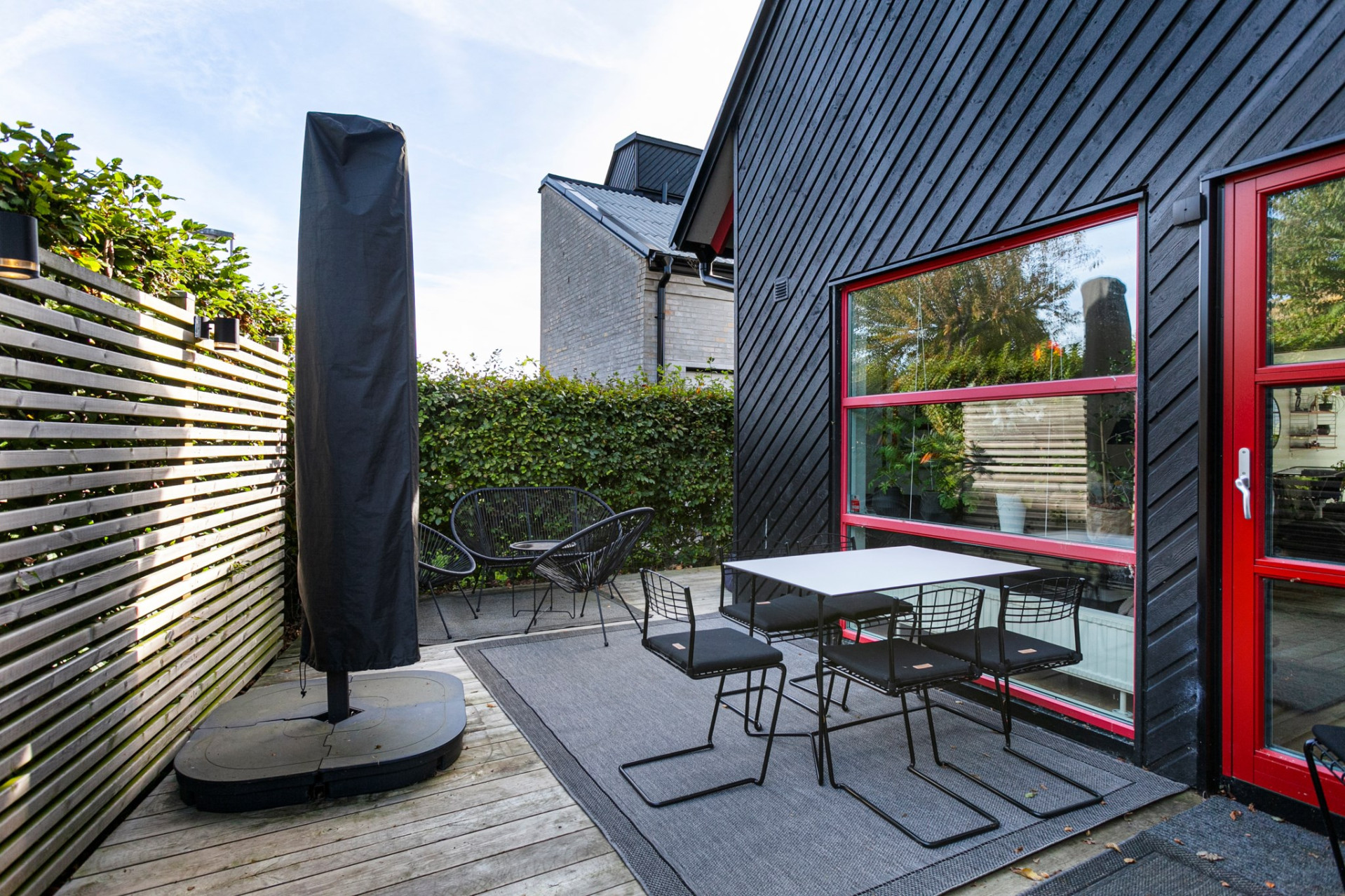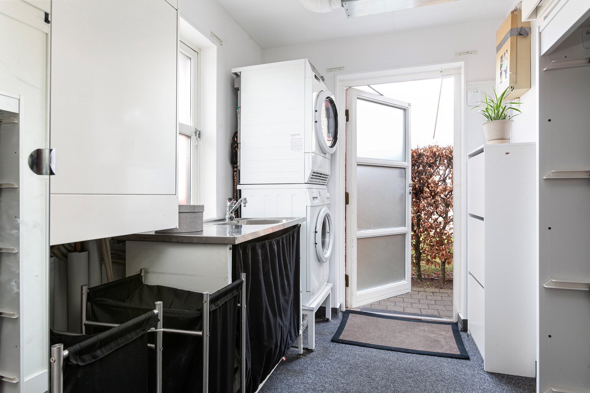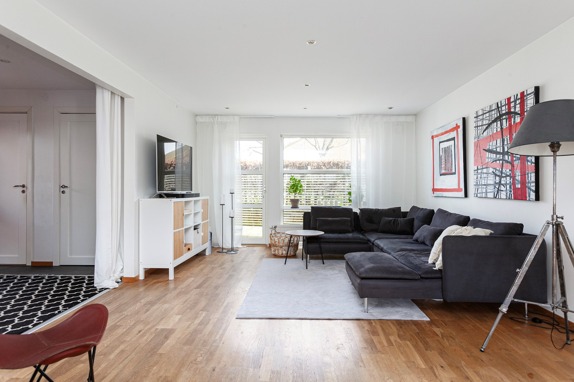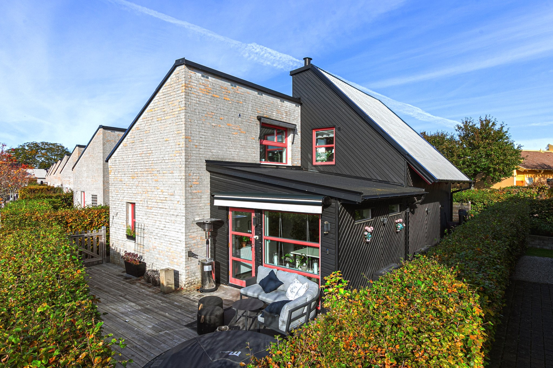 Ljust och inbjudande vardagsrum med oljat parkettgolv och öppen planlösning mot matrummet, vilket skapar härliga sällskapsytor. För den som önskar finns möjlighet att enkelt dela av matrummet och skapa ett fjärde sovrum. Matrum med elegant granitskiffergolv, behaglig elektrisk golvvärme och infällda spotlights som ger ett stämningsfullt ljus. Härifrån nås bostadens trädäck – en naturlig förlängning av hemmet under årets varmare månader. Smakfullt kök med oljad ekparkett och vita skåpluckor i modern stil. Köket renoverades 2022 med ny skåpsinredning och samtliga vitvaror utbytta samma år. Den maskinella utrustningen i rostfritt utförande består av fullhöjd kyl och frys, spis med glaskeramikhäll, fläkt samt diskmaskin – ett välutrustat och funktionellt kök för både vardag och fest. Tvättstuga med groventré och slitstarkt granitskiffergolv – praktiskt för barnfamiljen eller den trädgårdsintresserade. Här finns tvättmaskin, torktumlare (2017) och utslagsvask. I utrymmet finns även fjärrvärmeväxlare och ventilationsanläggning.