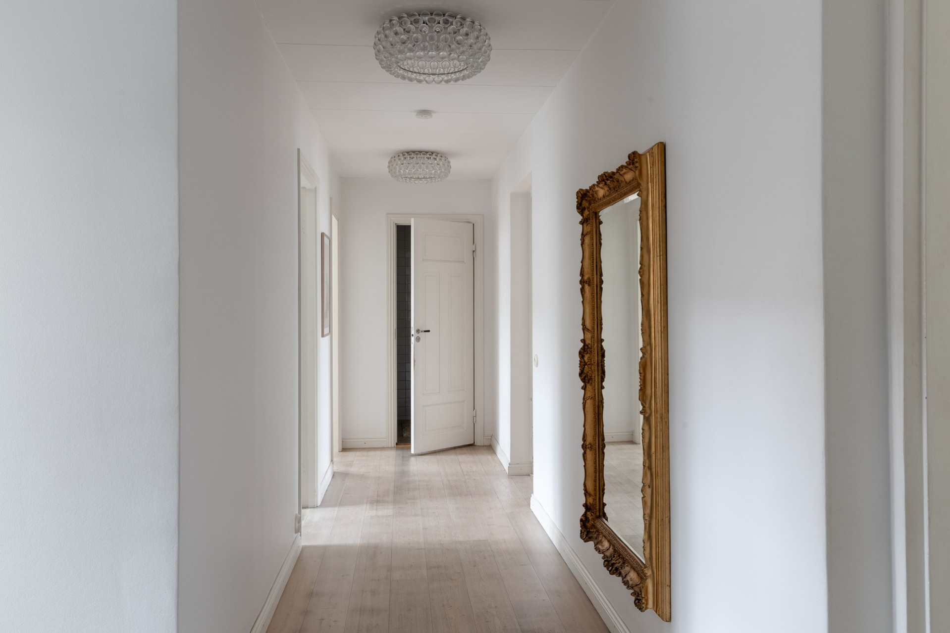 Välkomnande entré som binder samman bostadens rum. Här möts funktion och stil i en ljus och inbjudande passage.