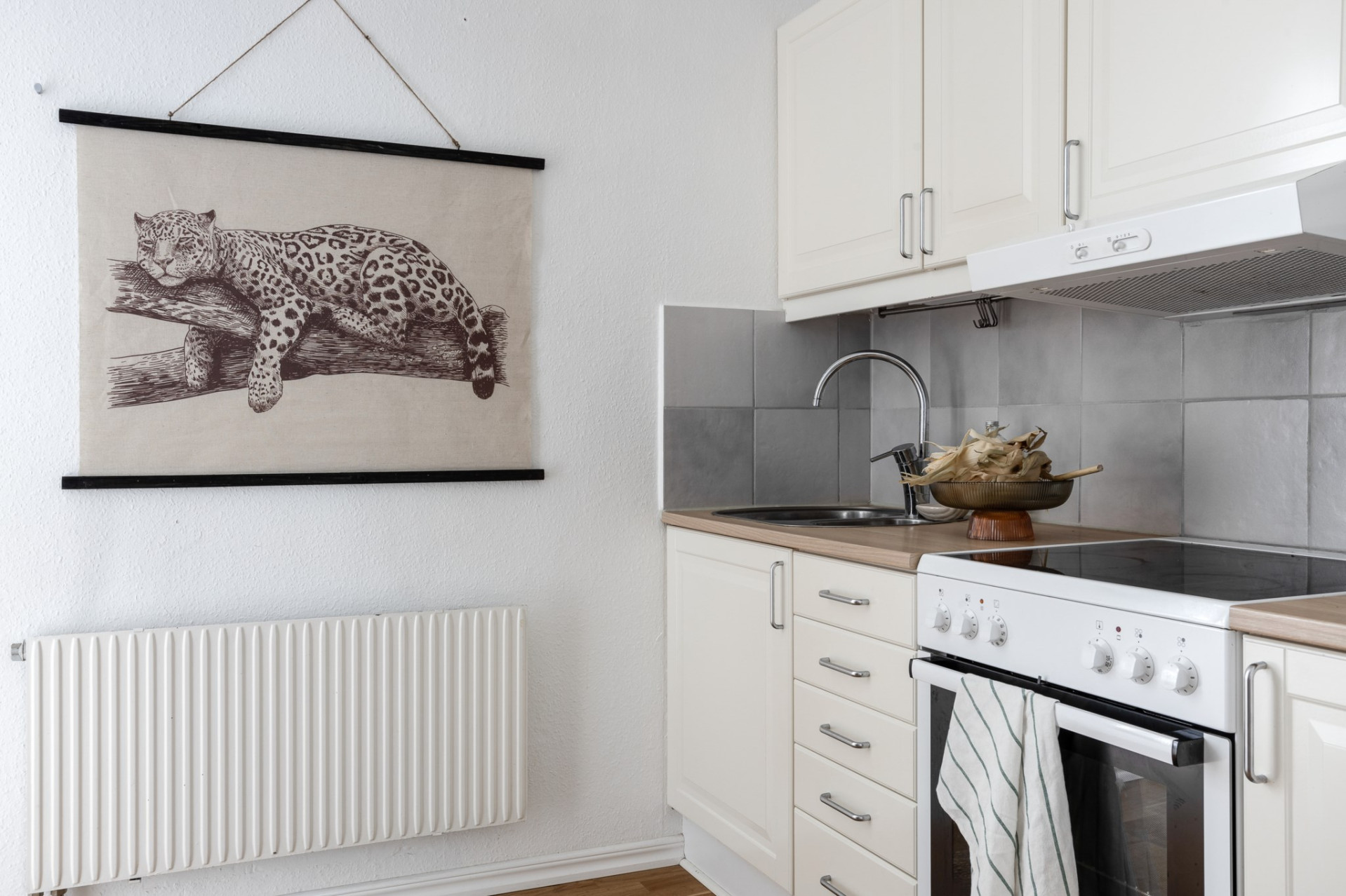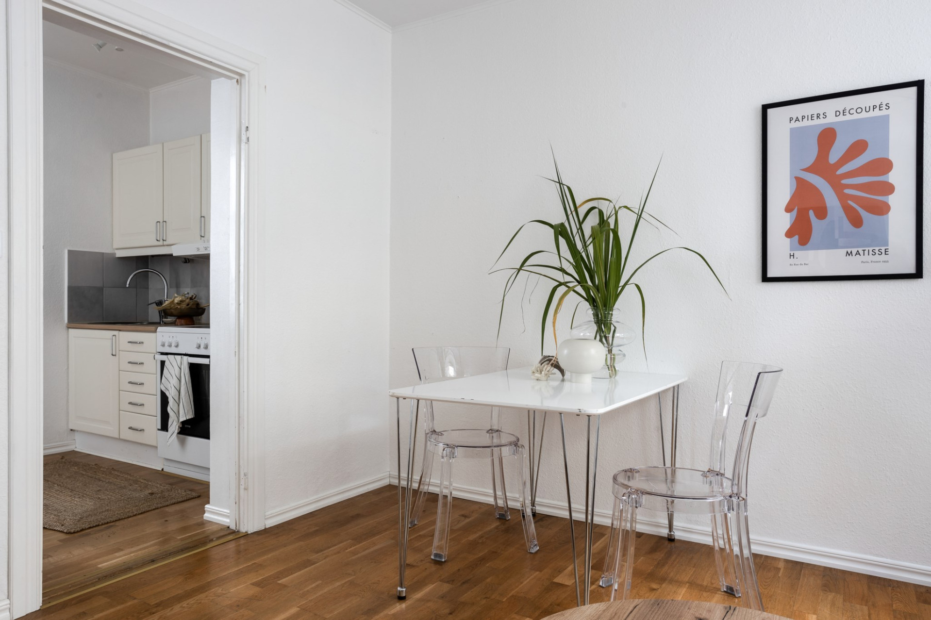 Kök/pentry: Pentry med skåpsinredning i vitt samt vitvaror bestående av spis med häll, vask samt köksfläkt. Bra ljusinsläpp med fönster åt innergård.