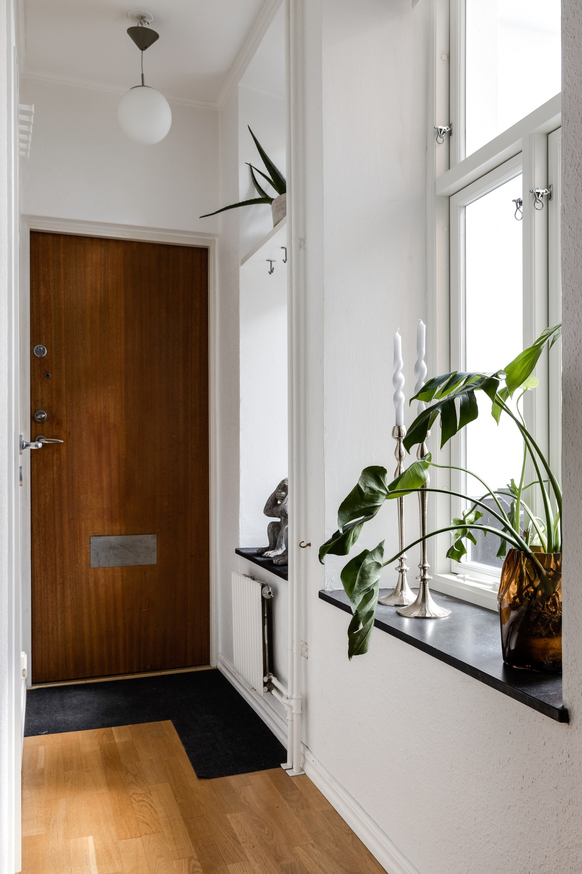 Hall: Hall med avhängningsyta samt fint ljusinsläpp från fönster mot innergården. Från hallen nås även wc.