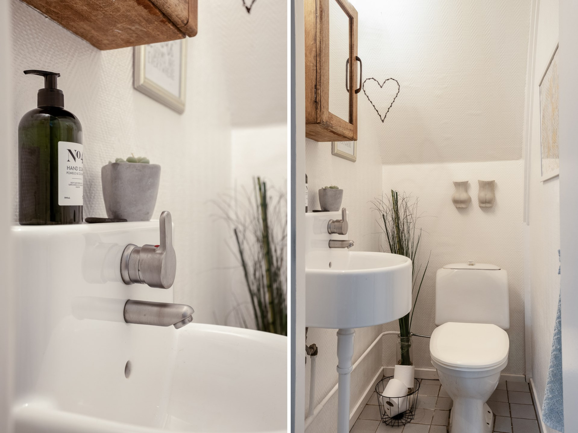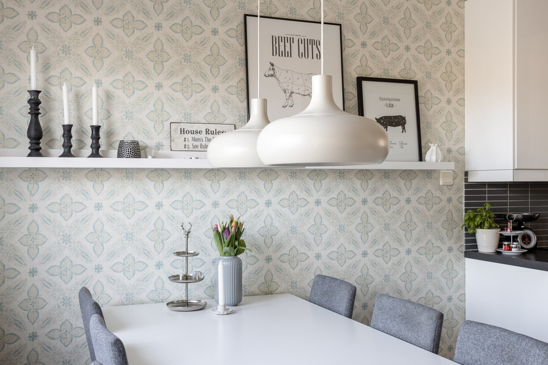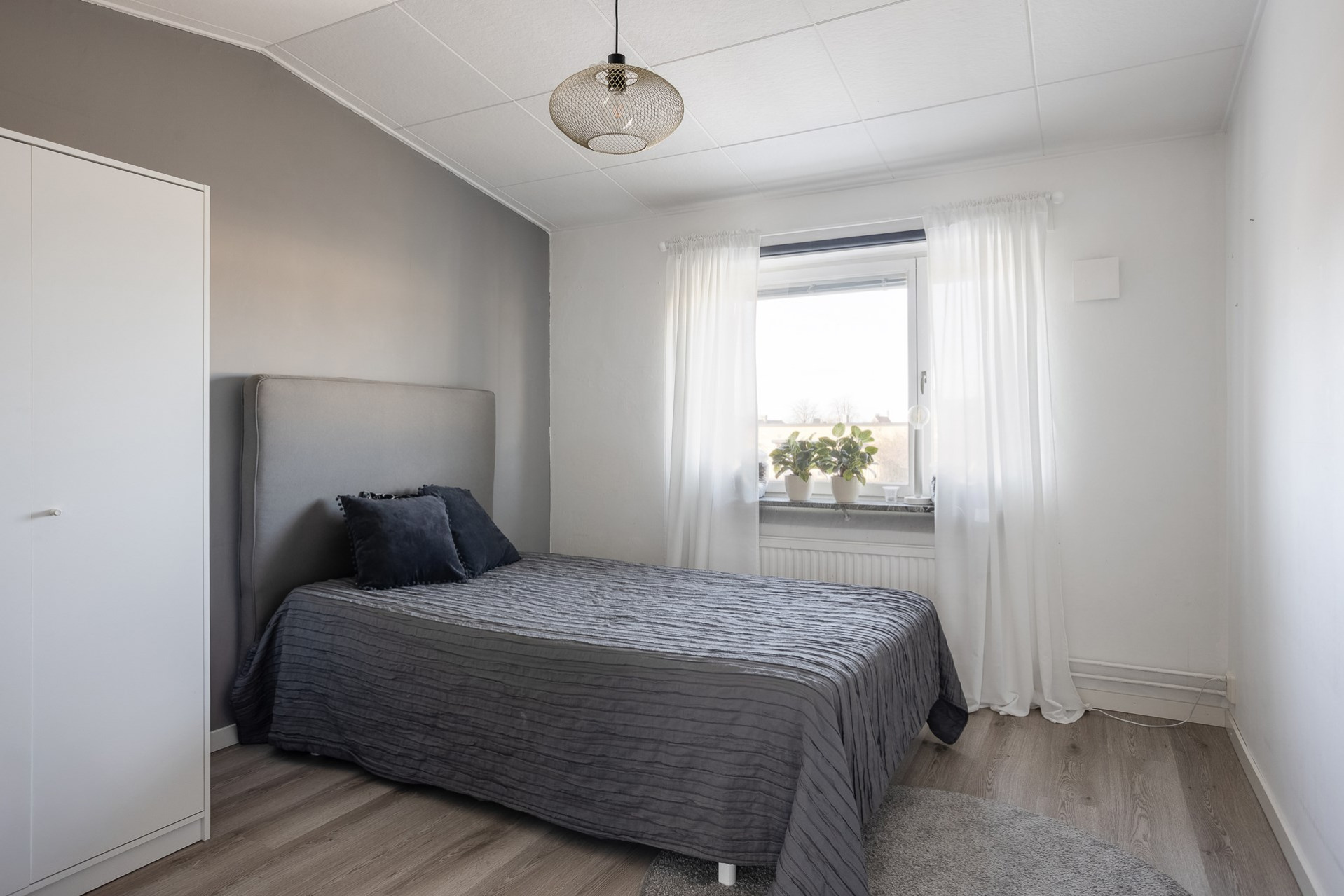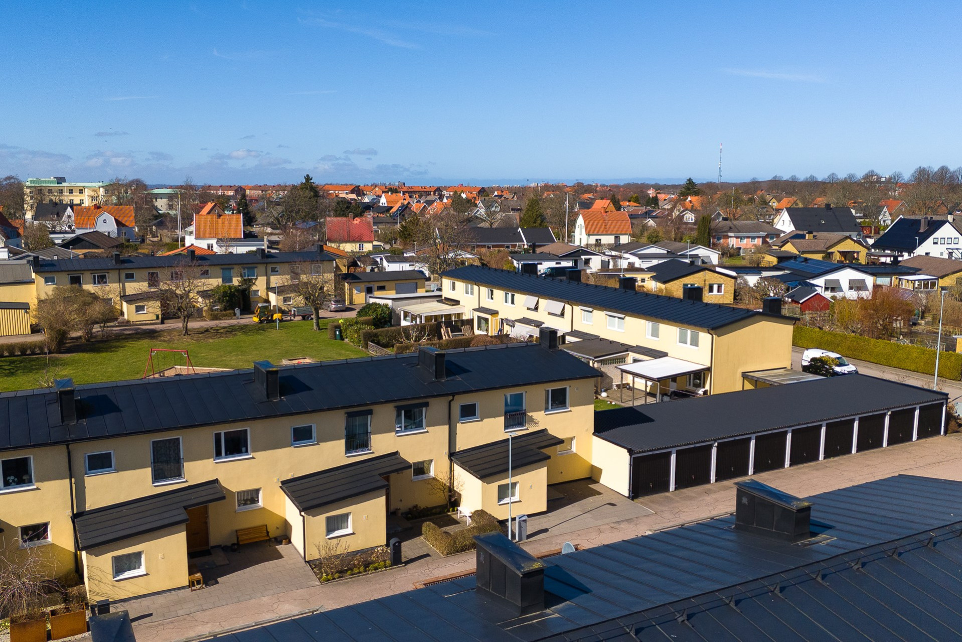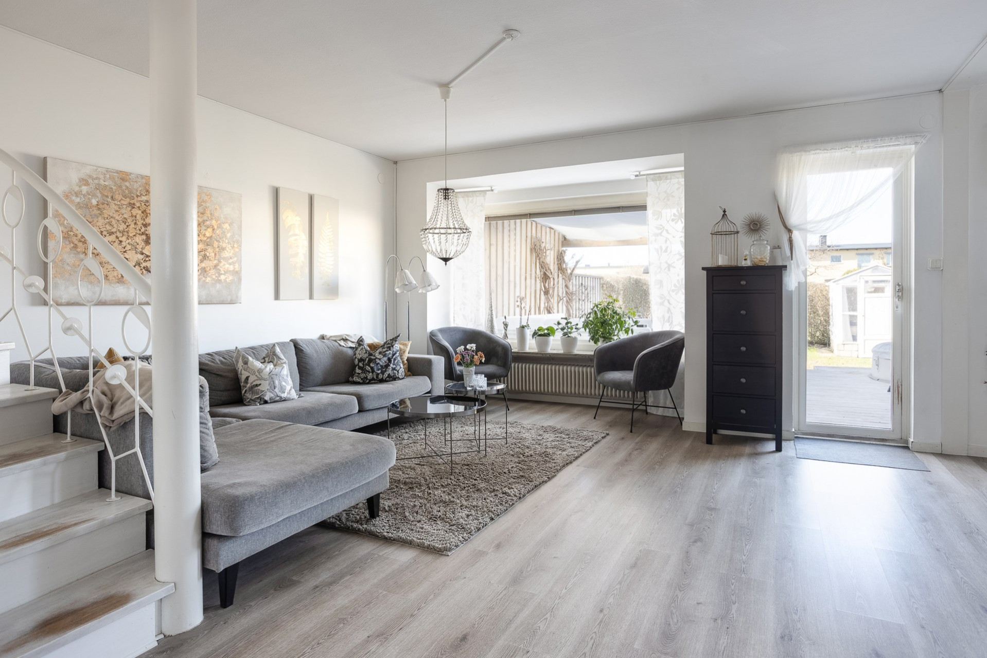 Vi välkomnas in till en stor och öppen hall med möjlighet till både förvaring och avhängning, dels via en klädkammare. I entrén ligger originalgolvet i sten kvar som är både praktiskt och snyggt. Gäst-wc nås från hallen med och hallen är öppen in till allrummet där de stora fönstren mot trädgården ger ett härligt ljusflöde till hela entréplanet. På entréplan kan hela familjen umgås i det generösa vardagsrummet som är byggt i öppen planlösning mot den rymliga matplatsen vid köket. Köket som sattes in 2008 och är från IKEA ligger i anslutning till vardagsrummet med matplatsen emellan. Maskinparken i köket består av: diskmaskin -25, kyl/frys -08, induktionshäll -15, ugn -23, fläkt -08. Intill köket finns grovköket med tvättmaskin från -25. Vi tar oss en trappa upp via den läckert utformade trappan i klassisk 60-talsstil! Väl uppe finns tre bra sovrum samt ett helkaklat duschrum som renoverades 2010. I hela bostaden ligger ett ljust och slittåligt golv som lades in -21.