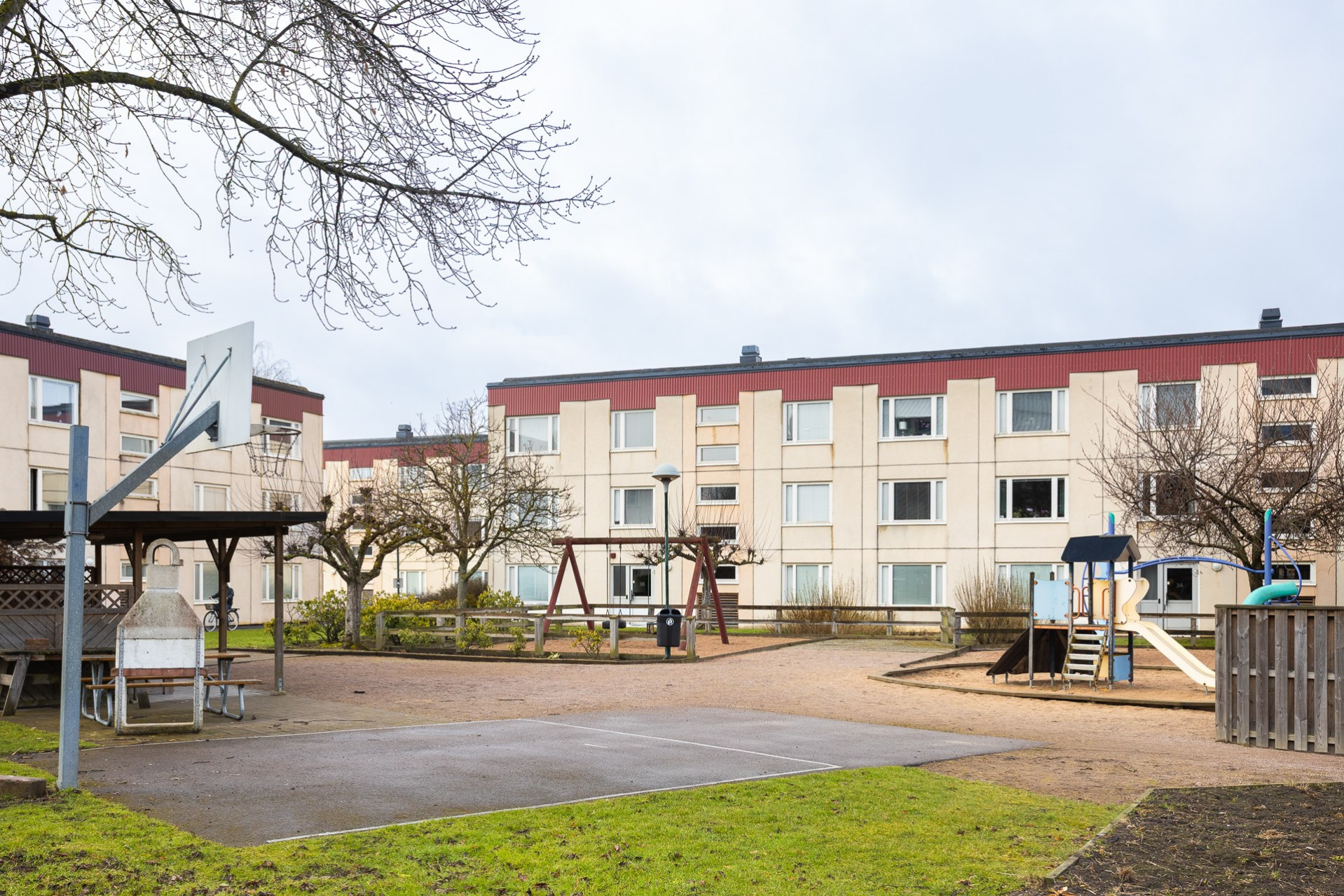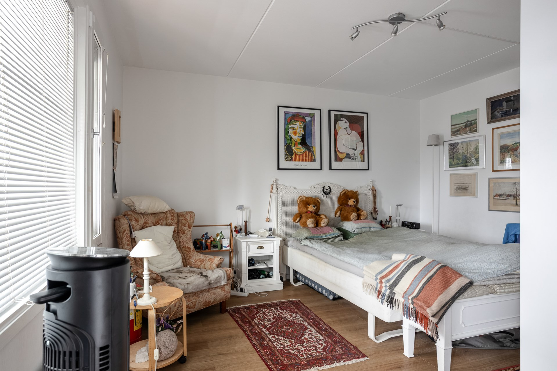 Ett rum som idag används som ett allrum. Här får man plats med en säng och/eller annat önskat möblemang. Garderober för förvaring. Vita väggar och laminatgolv.