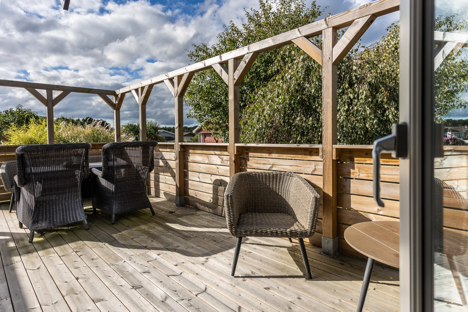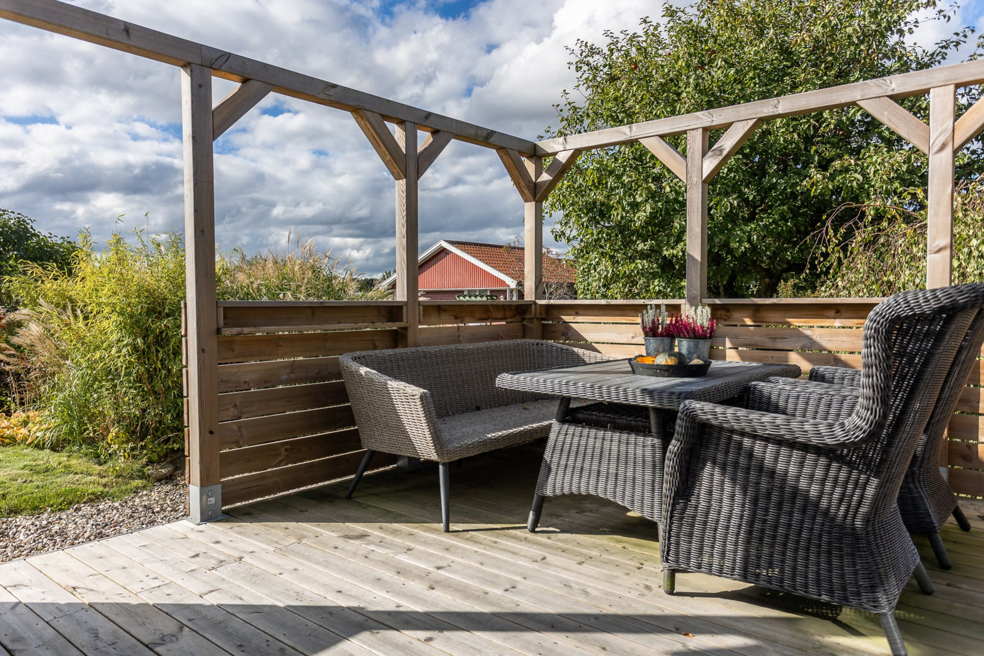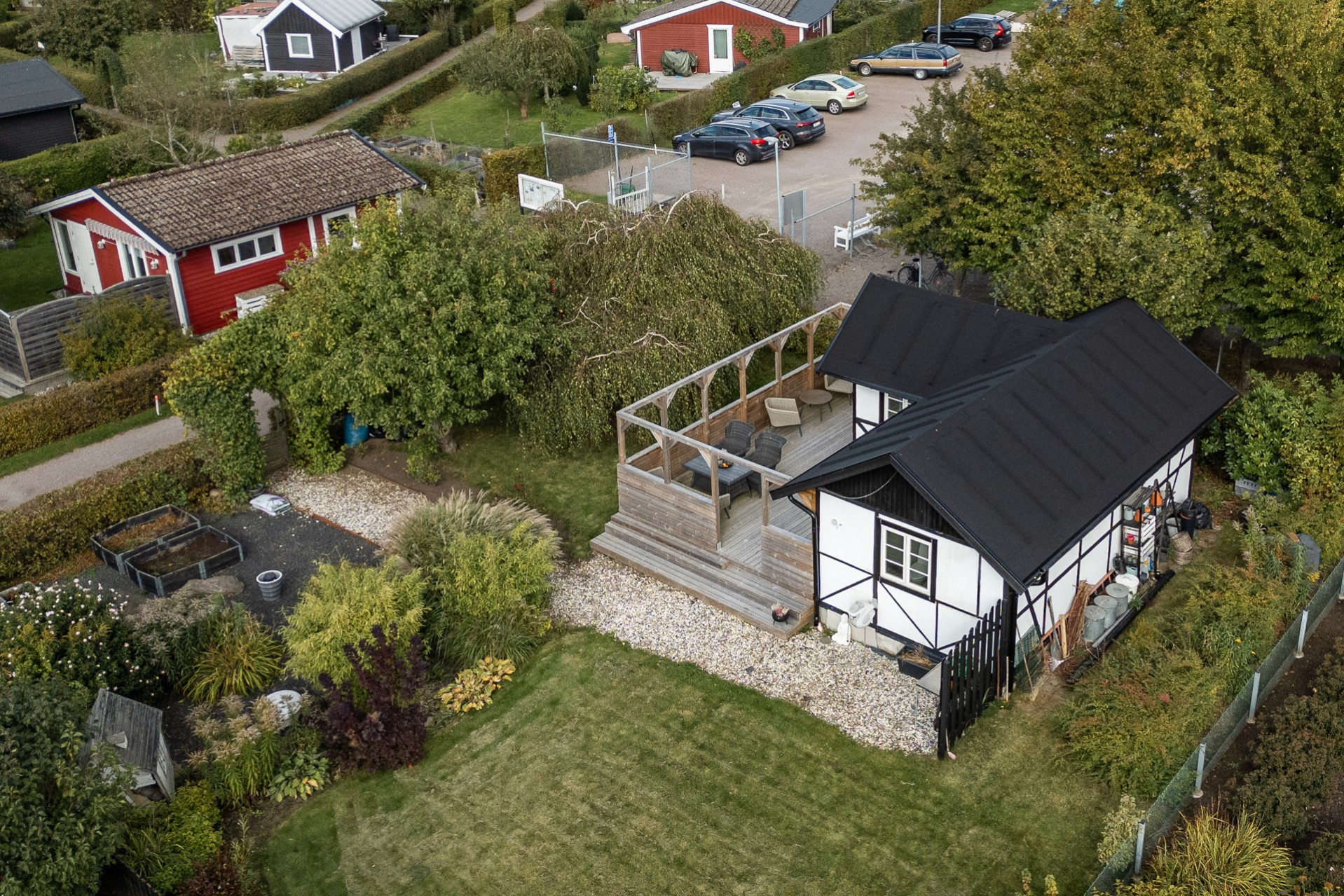 400 kvm. Lättskött tomt i soligt västerläge med trädäck precis intill kolonilotten kombinerat med gräsmatta samt singel. Äppelträd.Bilplats