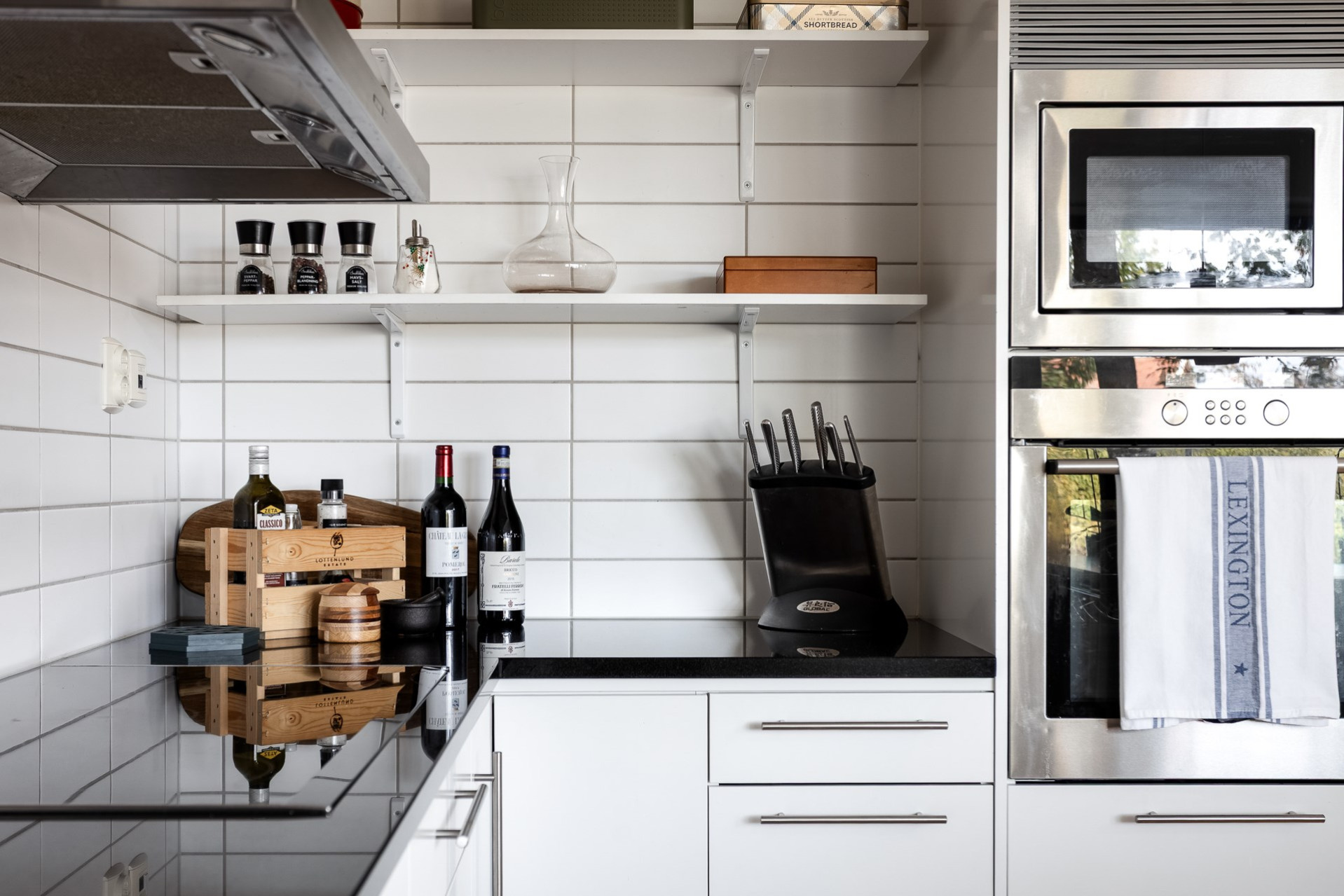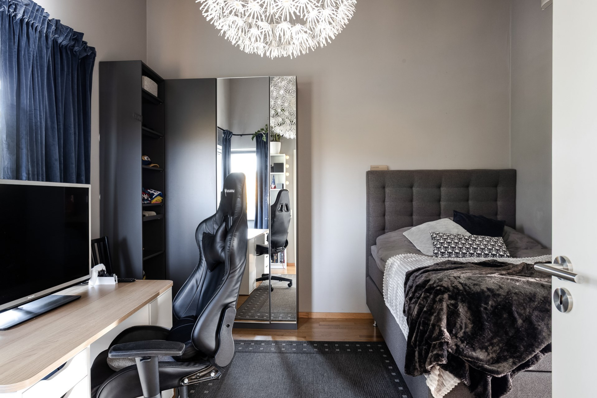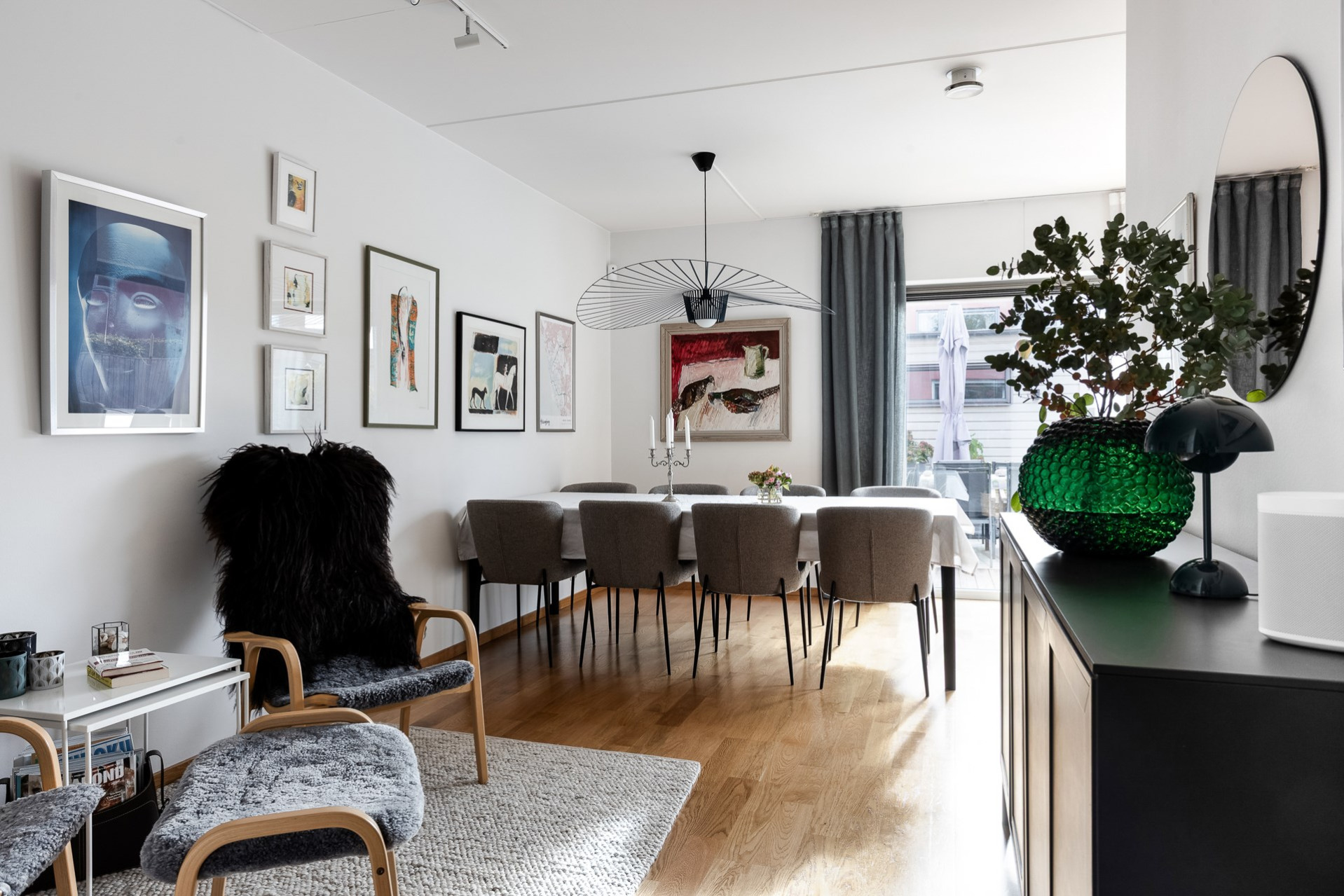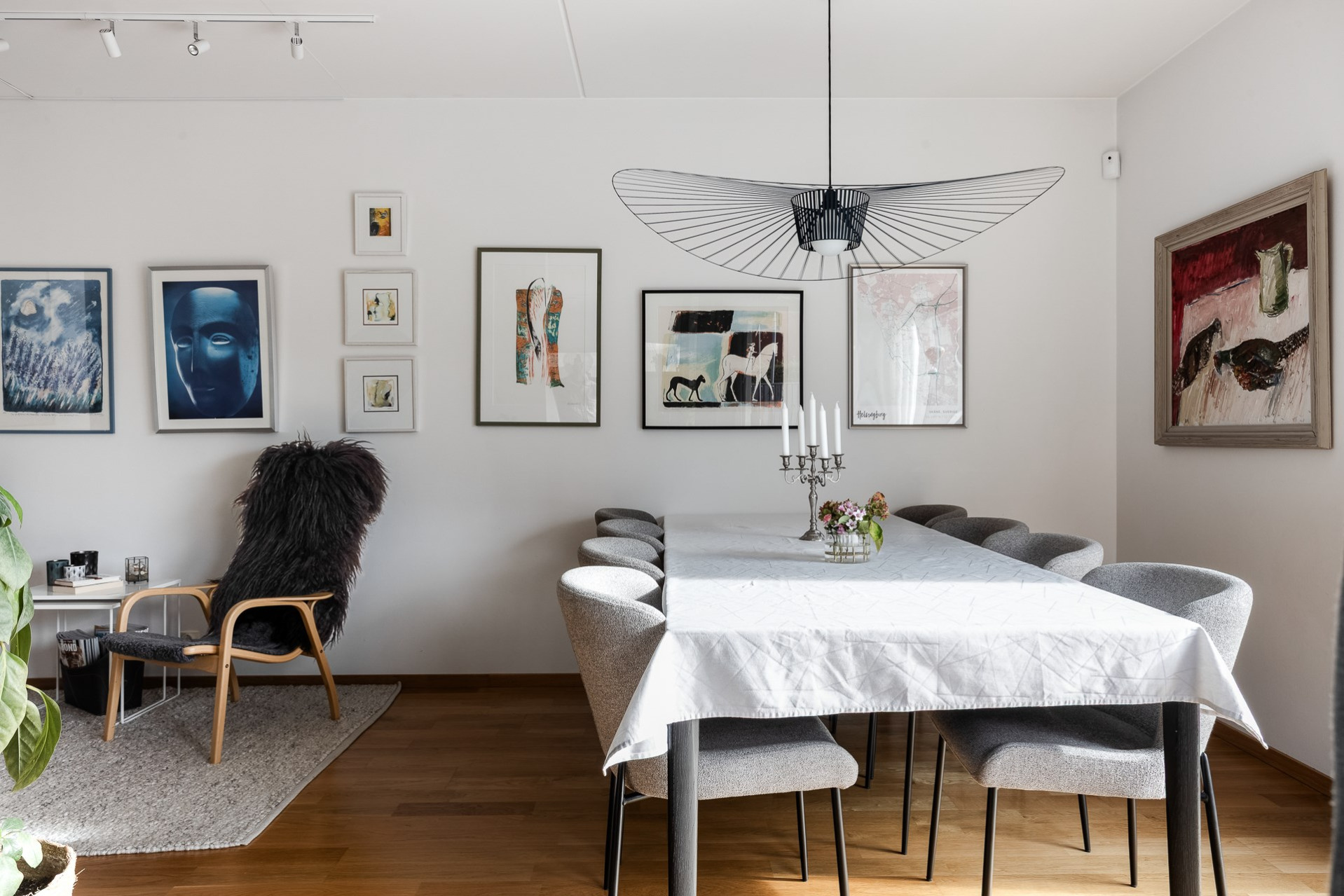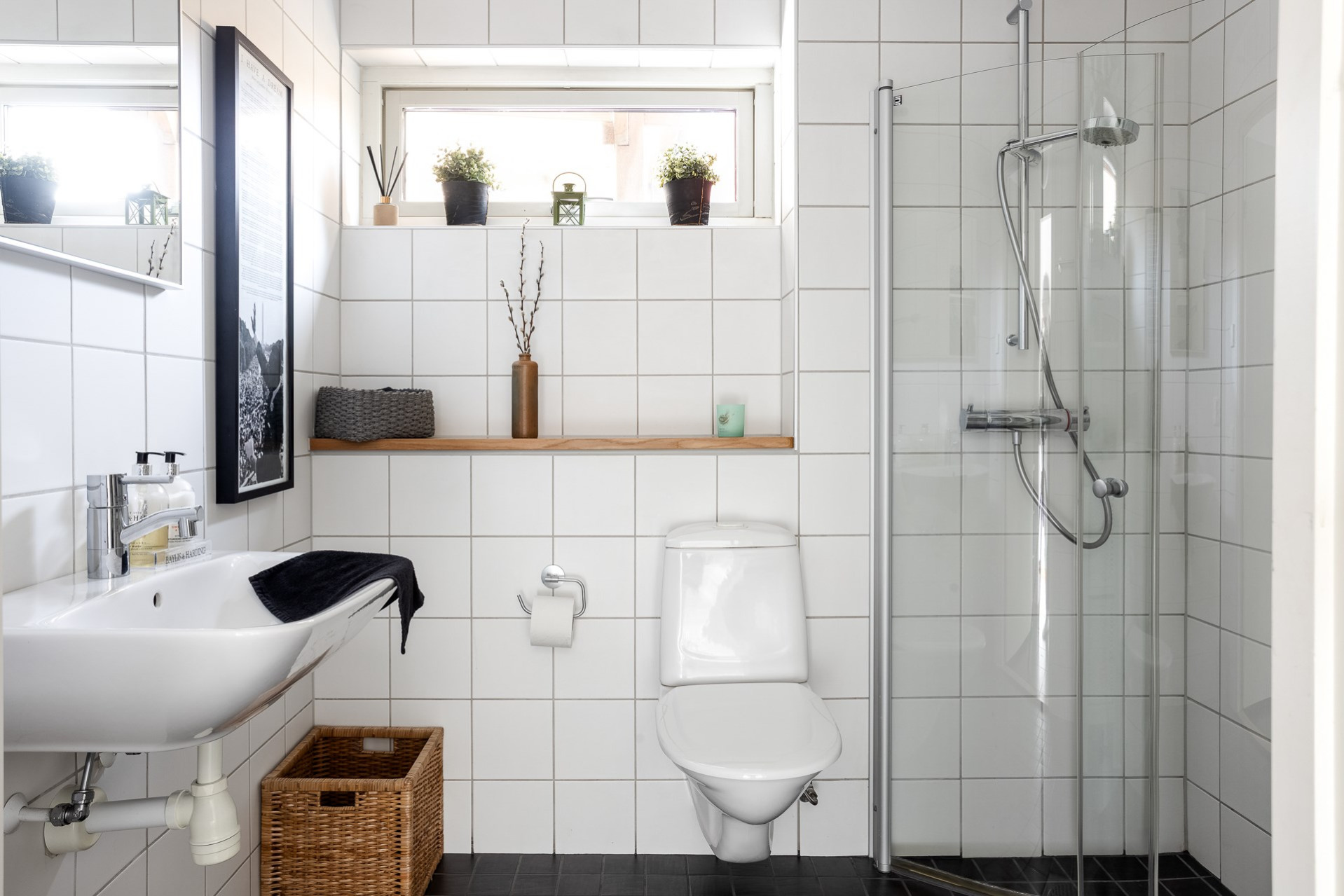 Hall med klinkergolv, gott om avhängning samt förvaring via passage mot duschrummet. Helkaklat snyggt duschrum med fönster. Tvättstuga/grovkök med tvättho samt tvättmaskin och torktumlare. Klinkergolv. L-format Myresjökök som går i vitt med svart granitskiva. Rostfri maskinpark från Siemens med kyl och frys i fullhöjd, inbyggnadsugn, inbyggnadsmicro, 90 cm bred induktionshäll, diskmaskin från -21 och fläkt. Köksö med vinkyl sattes in -21. Matsal/allrum som är ljust med stora glaspartier mot trädgården. Går att dela av till sovrum om så önskas. Från allrummet nås den fantastiska trädgården som är en lättskött oas med stor pool. Eftersom trädgården ligger i söderläge har man sol merparten av dagen samt kvällen.