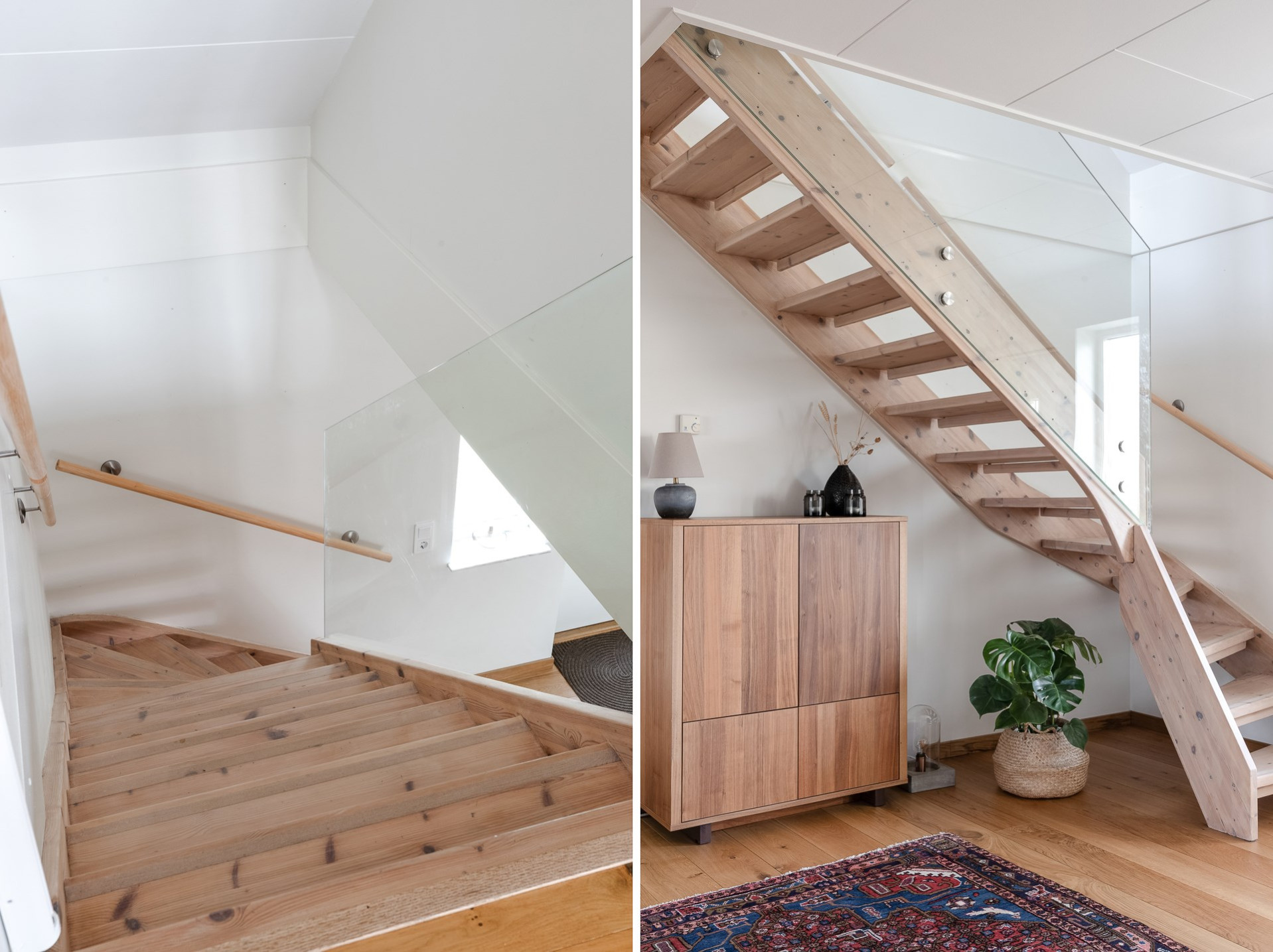 Hall - Ljus och inbjudande hall med generösa möjligheter till både avhängning och förvaring. Väggarna är släta och målade, och på golvet ligger trägolv Kährs Cornwall Mattlackad Borstad Ek 1-stav från 2021 som ger ett varmt och enhetligt intryck.