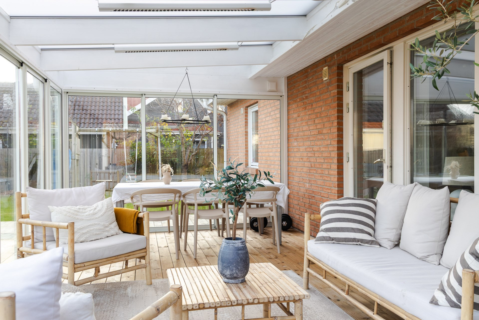 Uterum - Väl tilltaget inglasat uterum med plats för bekvämt möblemang. En perfekt förlängning av bostaden som möjliggör umgänge stora delar av året, även under sen höst och tidig vår.