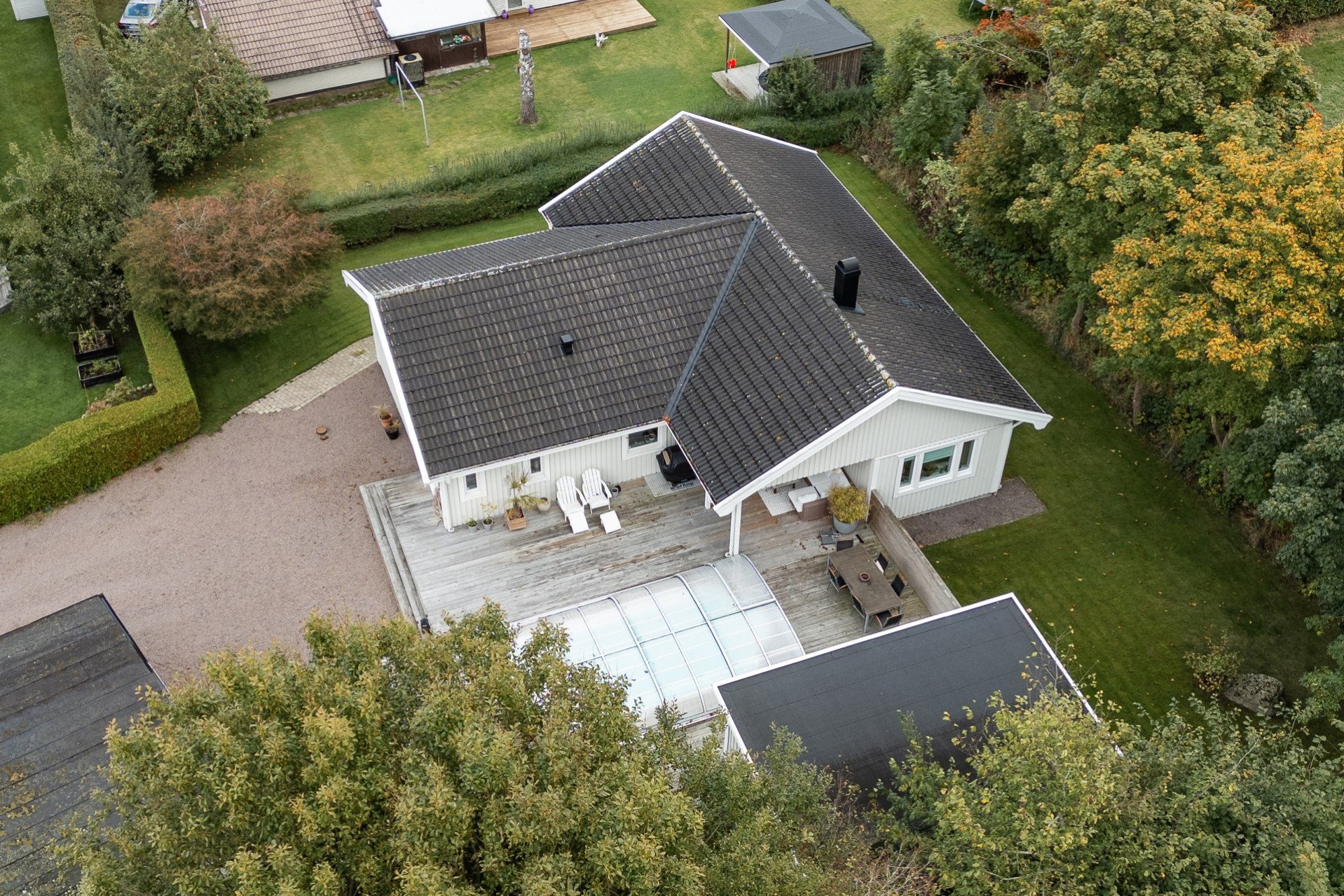 Husets största sovrum med plats för både en rejäl dubbelsäng och diverse ytterligare möbler som exempelvis garderober eller byrå.