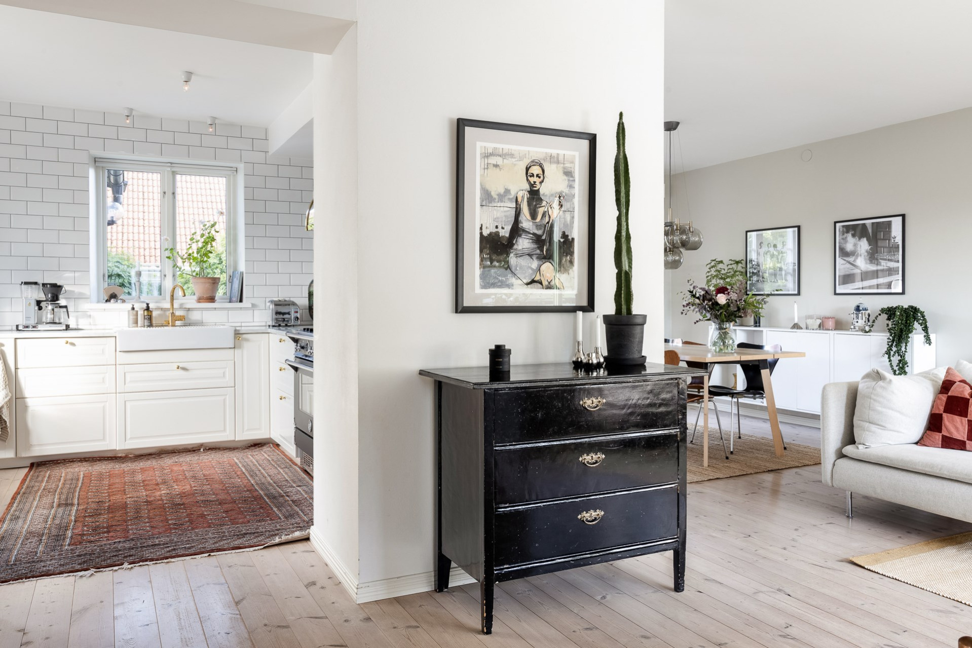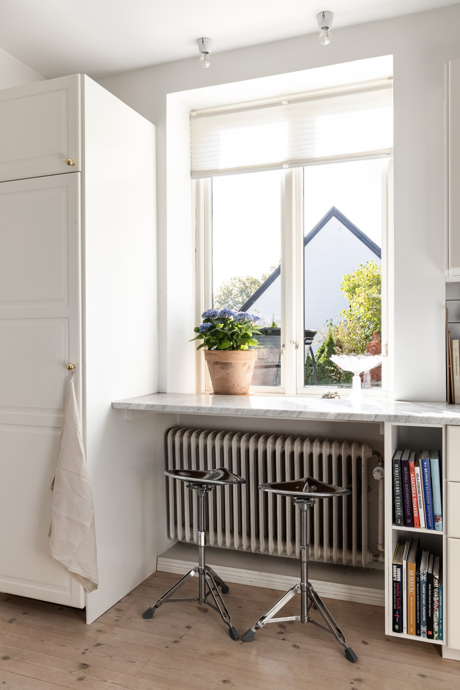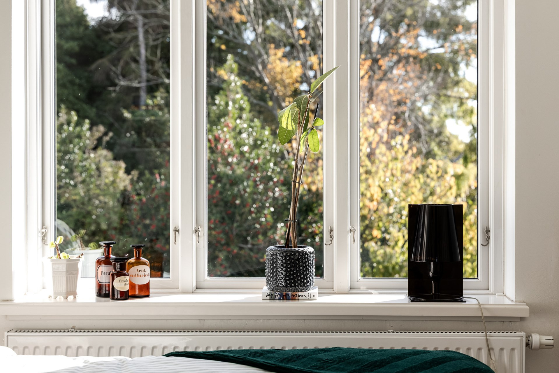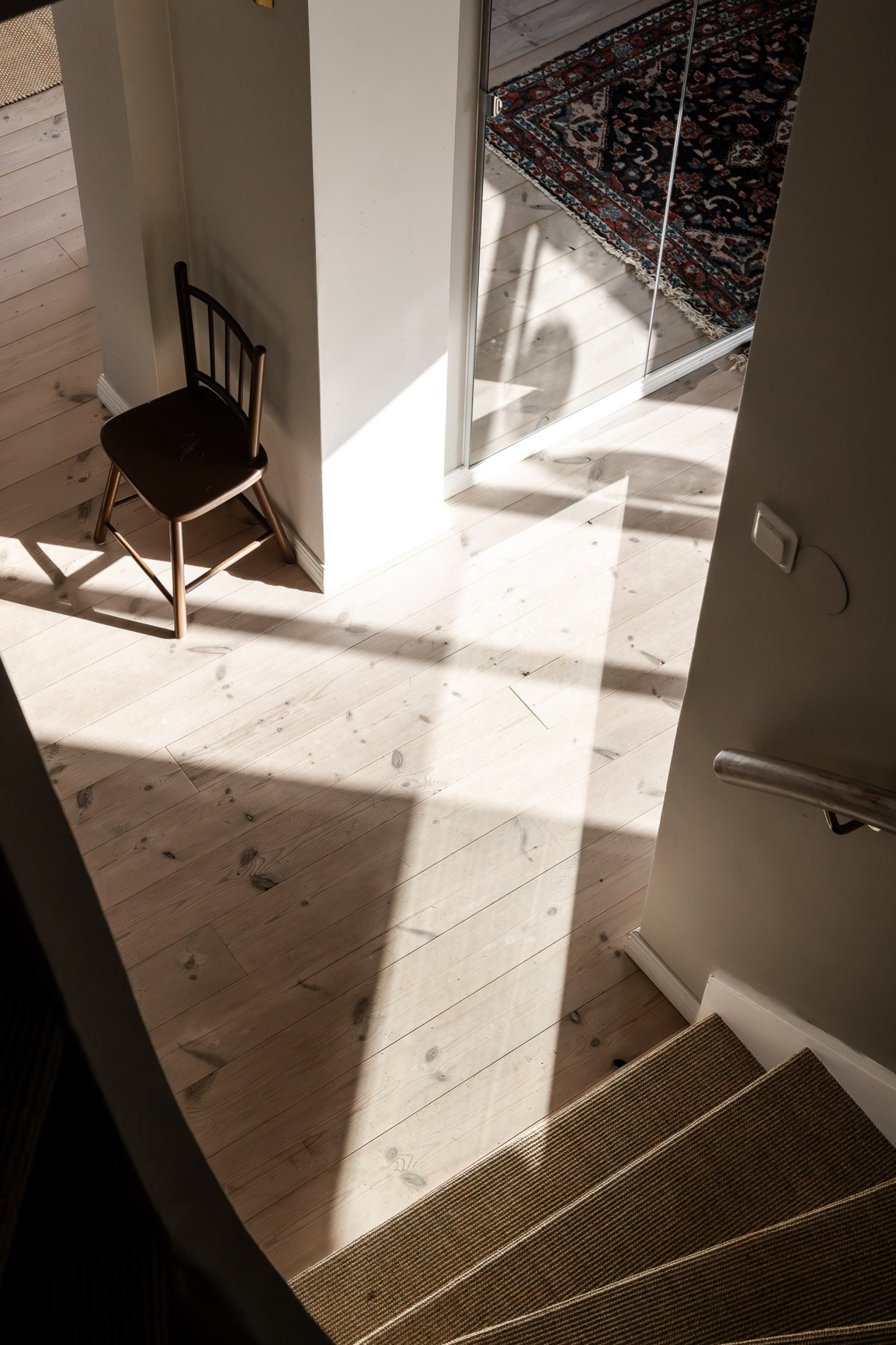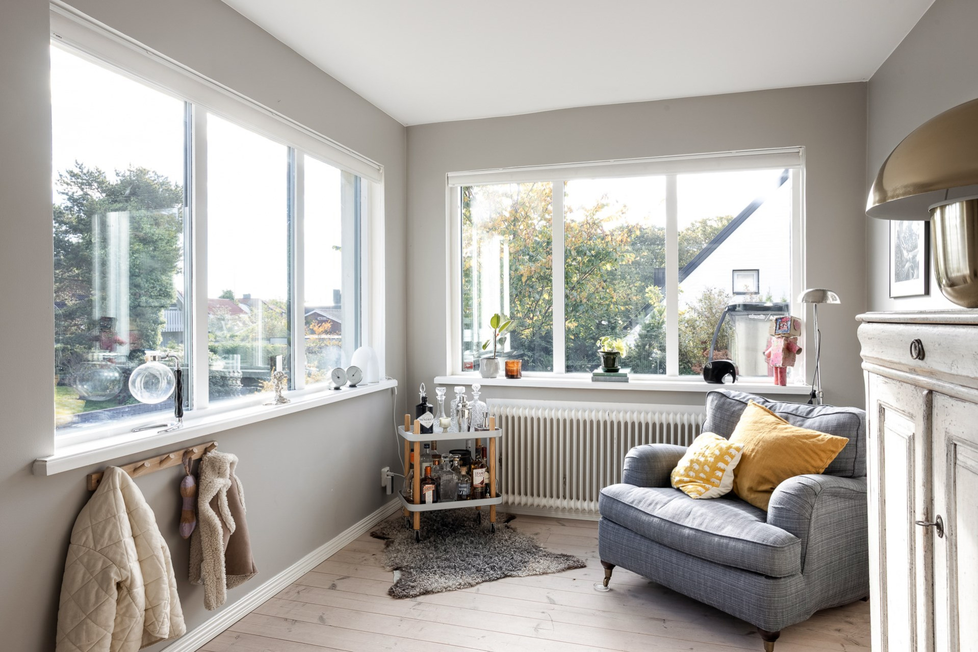 Ljusinsläpp från fönster i olika väderstreck ger ett skönt ljus under hela dagen.