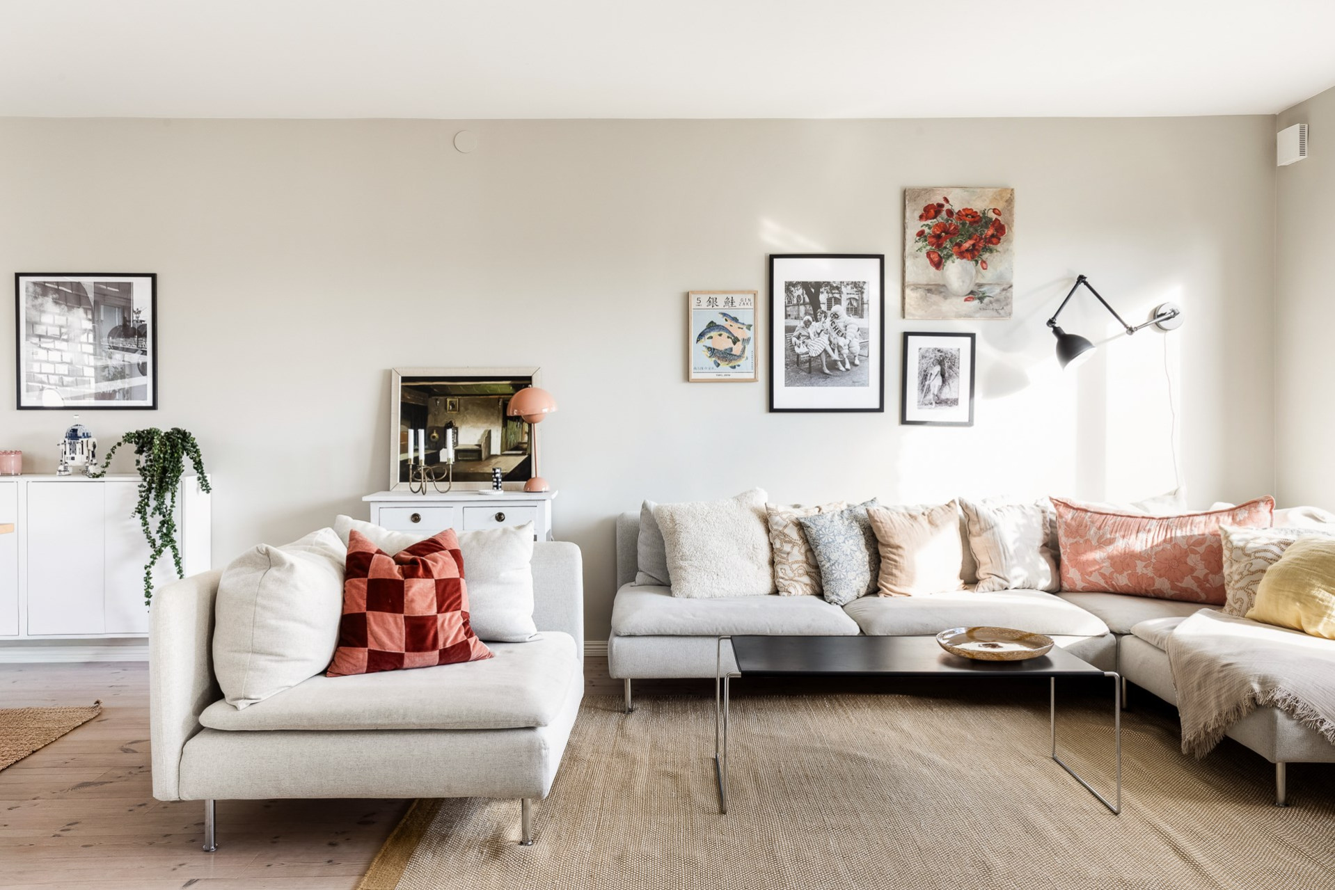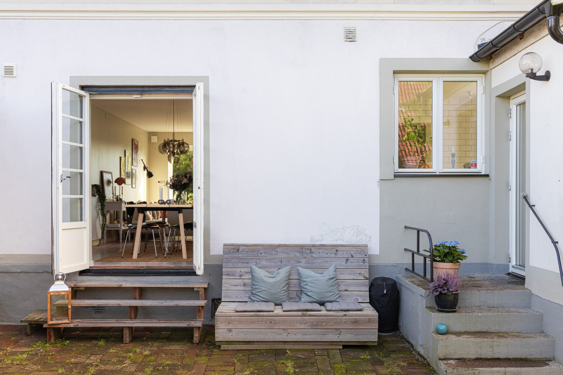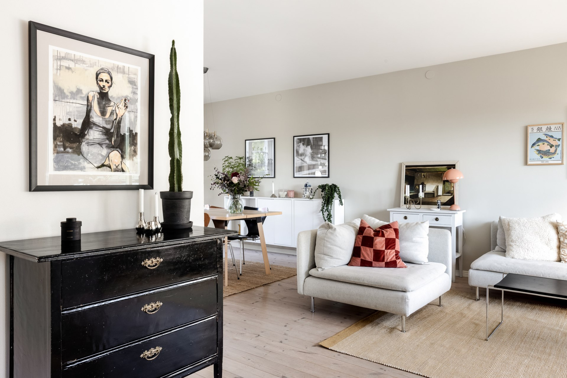 Härligt öppet och ljust rum med en inbjudande soffhörna samt stor matplatsdel med plast för många! Från matplatsen finns utgång till trädgård och uteplats via dubbel altandörr som nästan suddar ut gränsen mellan inne och ute under årets varma månader.