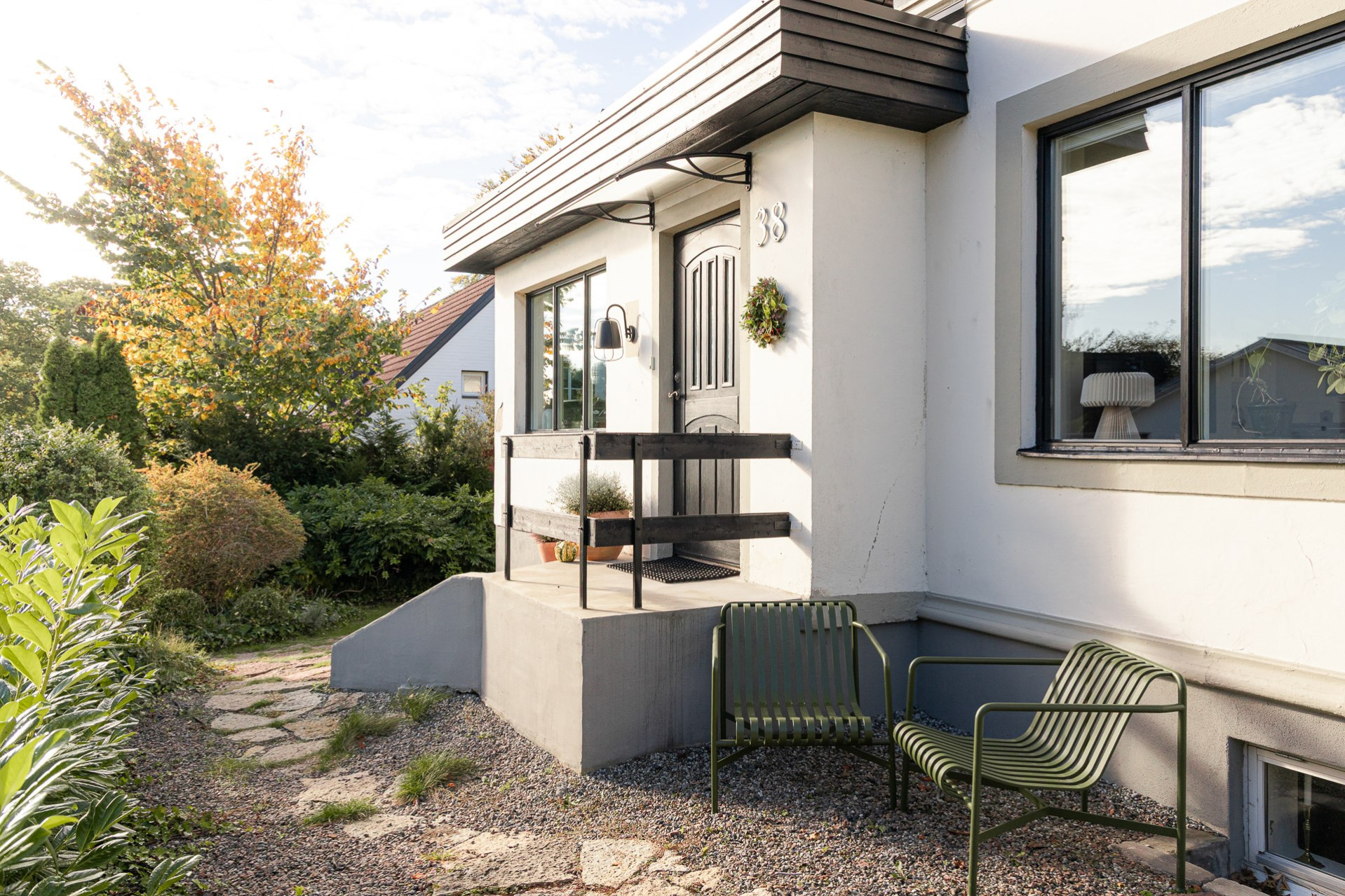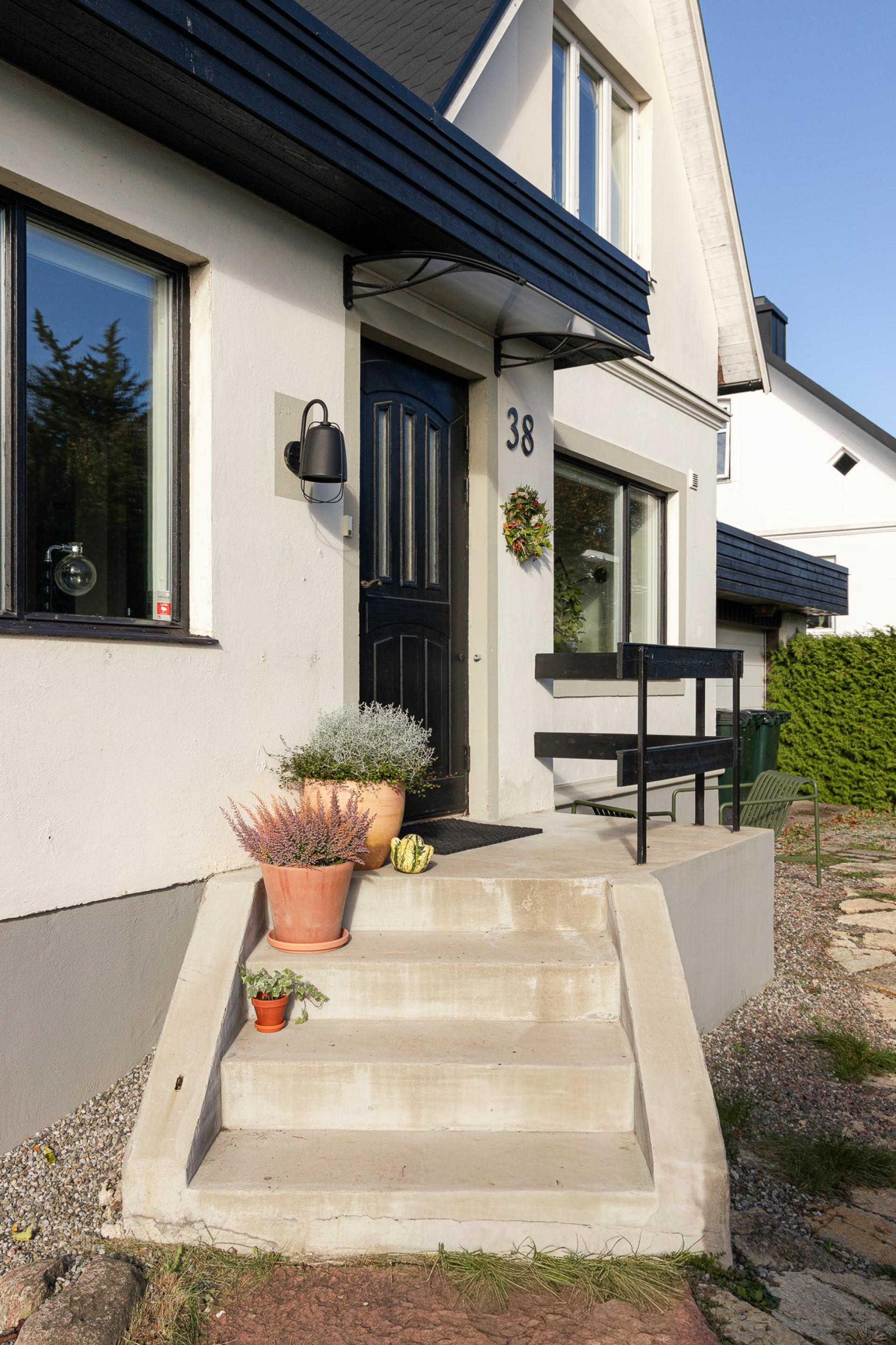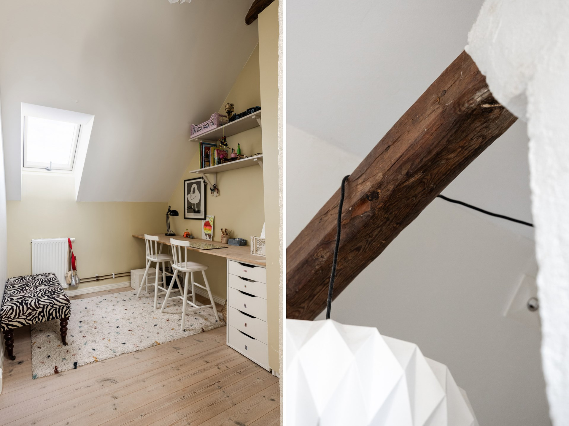 Där trappan landar finns ett bra extra utrymme som av nuvarande ägare används som barnens lekrum eller pysselrum. Från detta rum nås badrummet.