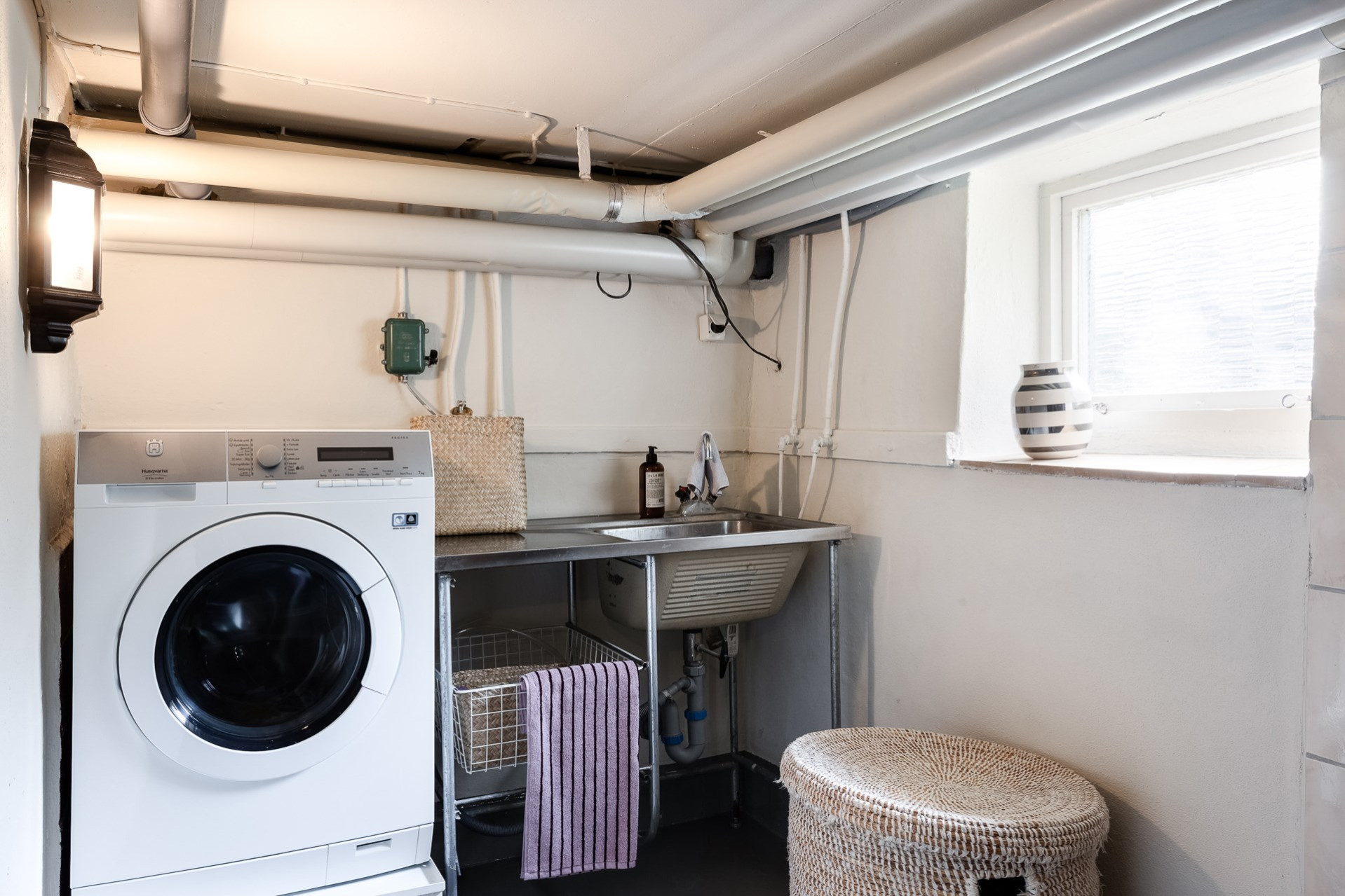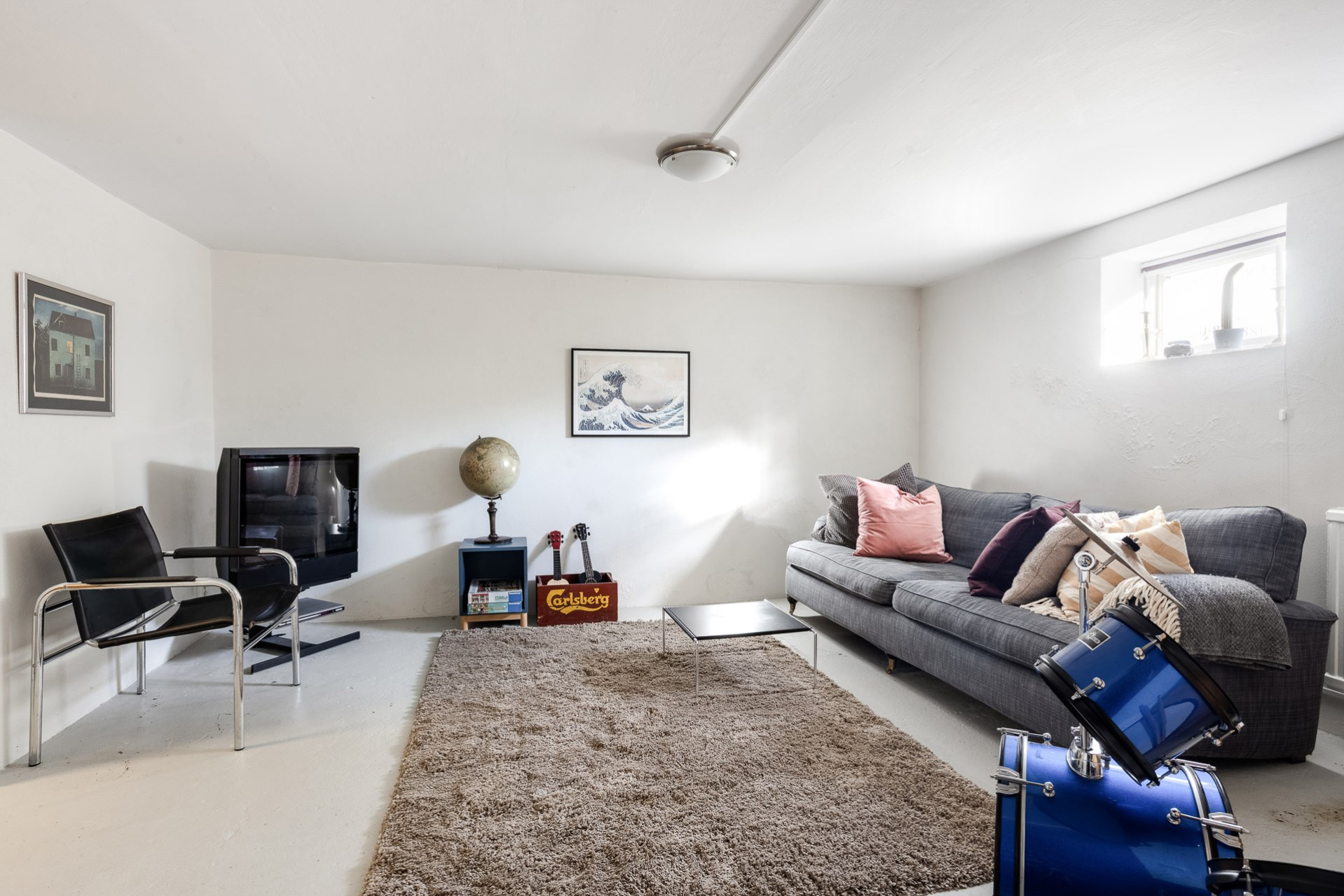 Rymlig och fräsch källare med bra extrautrymmen som både kan fungera som extra tv-rum, allrum eller gästrum. Utöver det finns här också en praktisk tvättstuga, ett pannrum och från ett av de andra rummen finns dörr och passage ut till garaget.