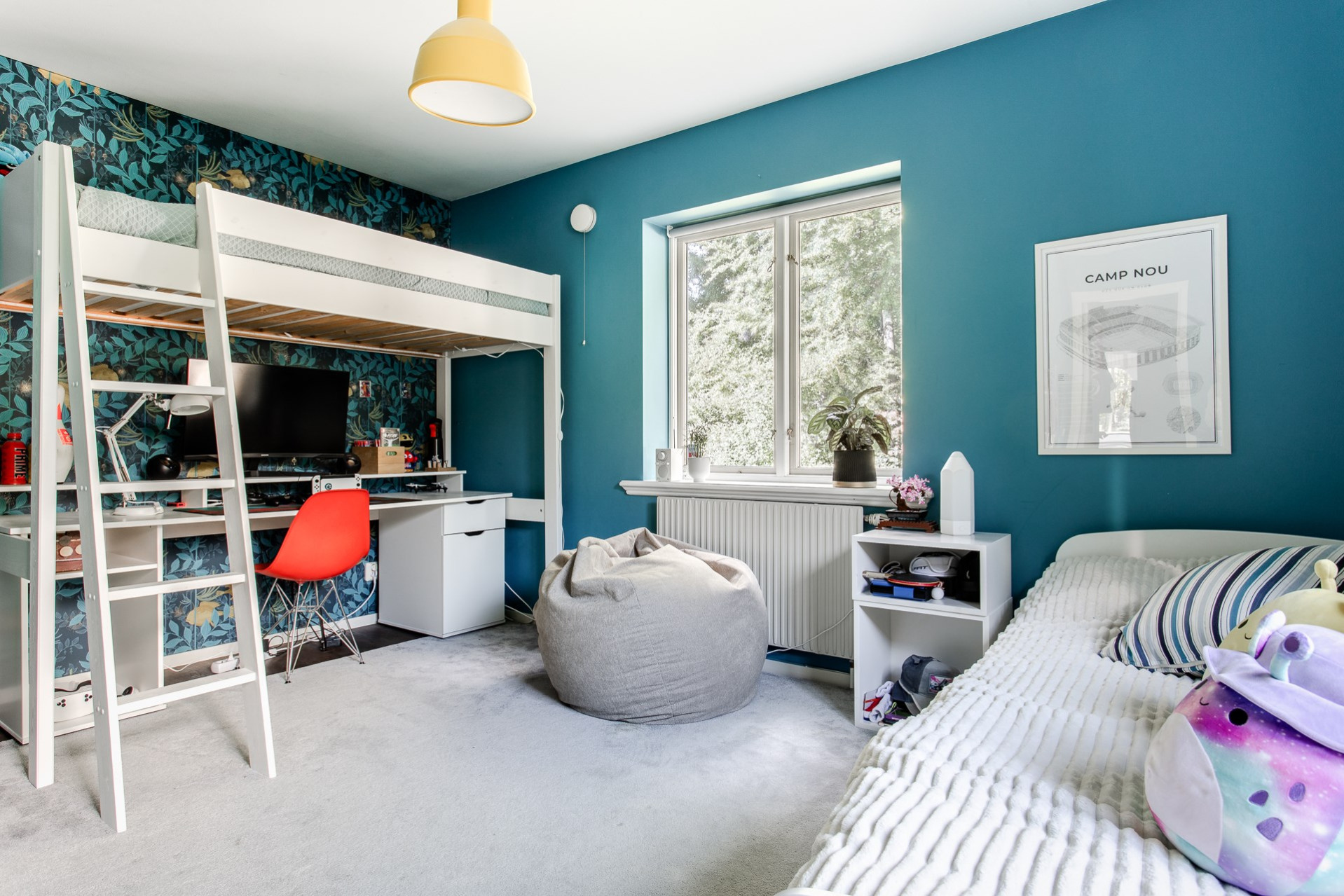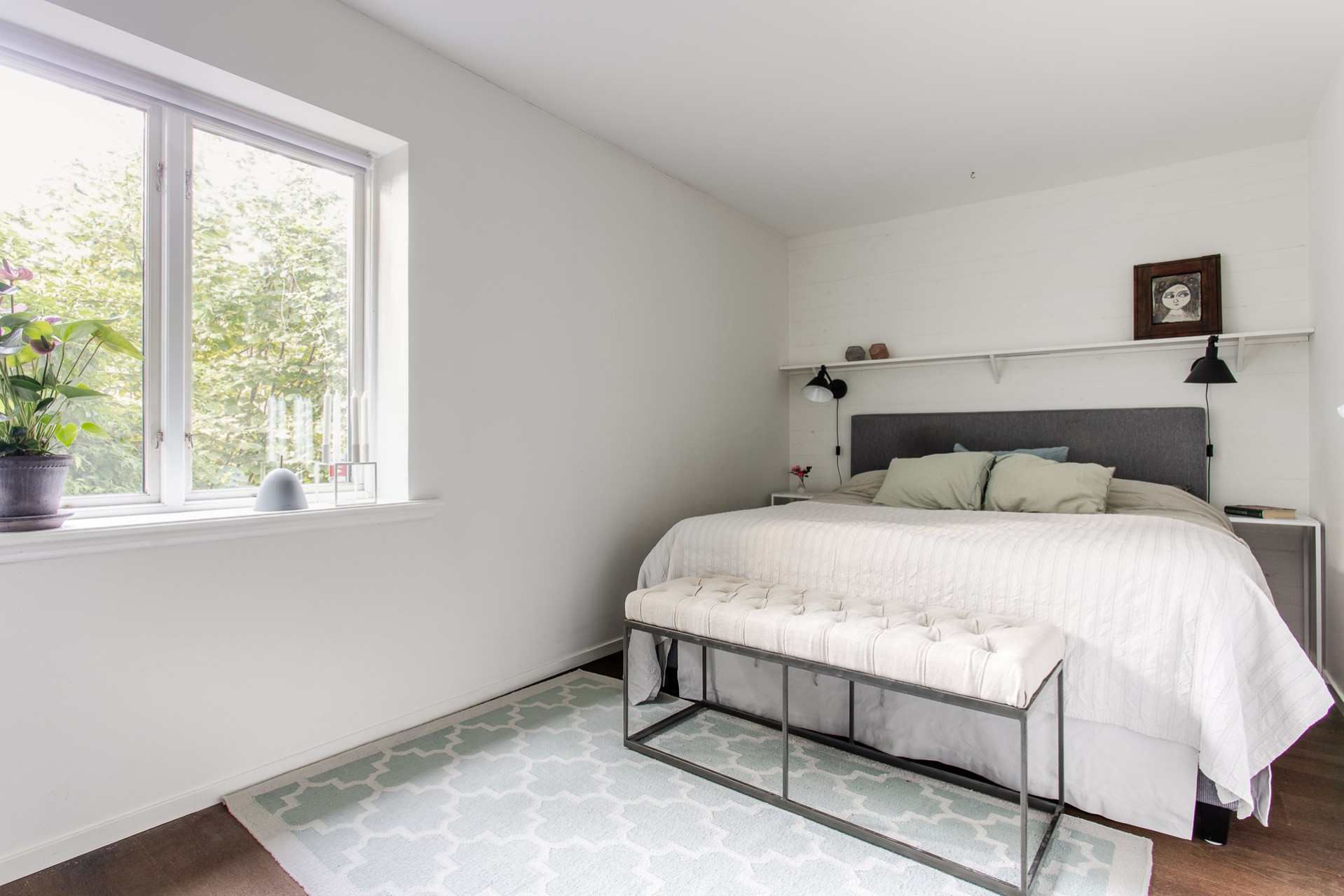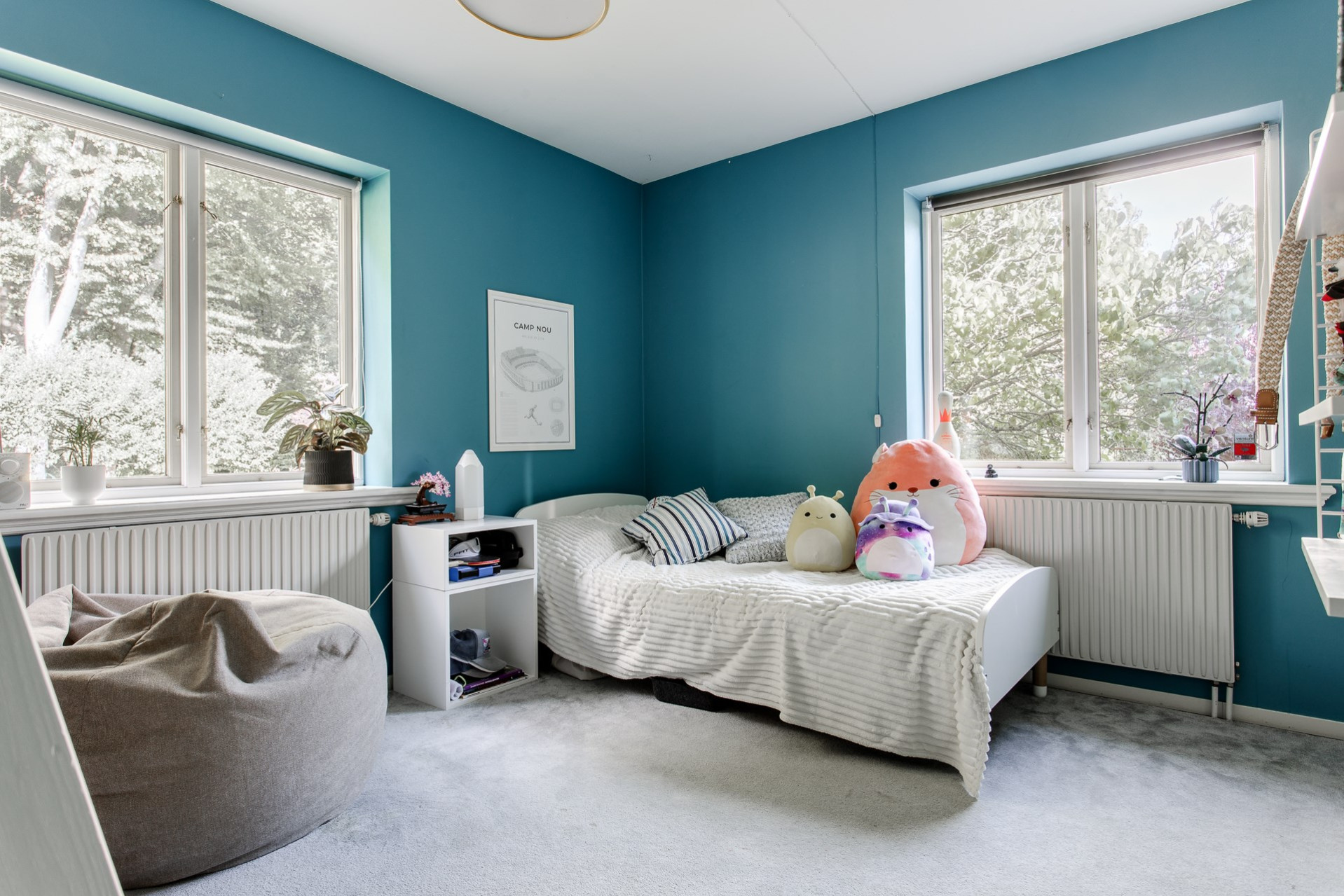 De andra två sovrummen ligger avskilt och nås genom hallen. Stora härliga sovrum med plats för dubbelsäng och skrivbord. Som nämnts tidigare, i hallen finns väldigt god förvaring för hela familjen.