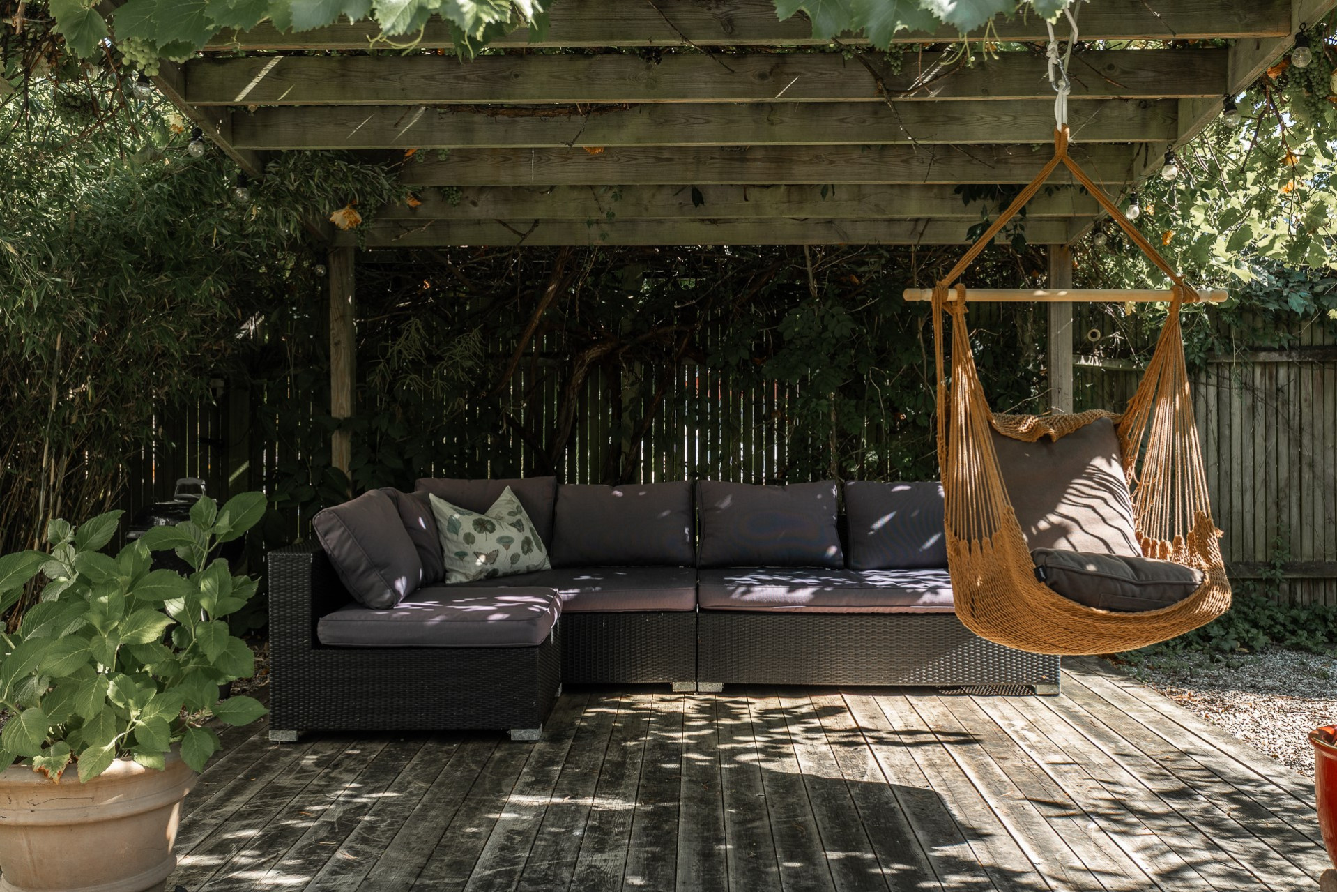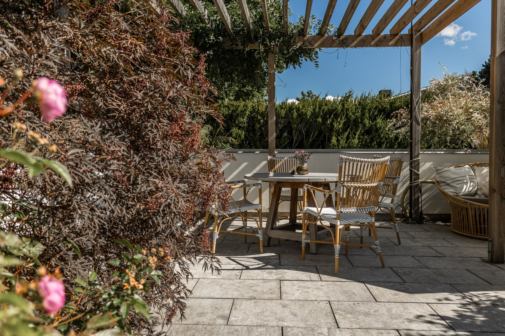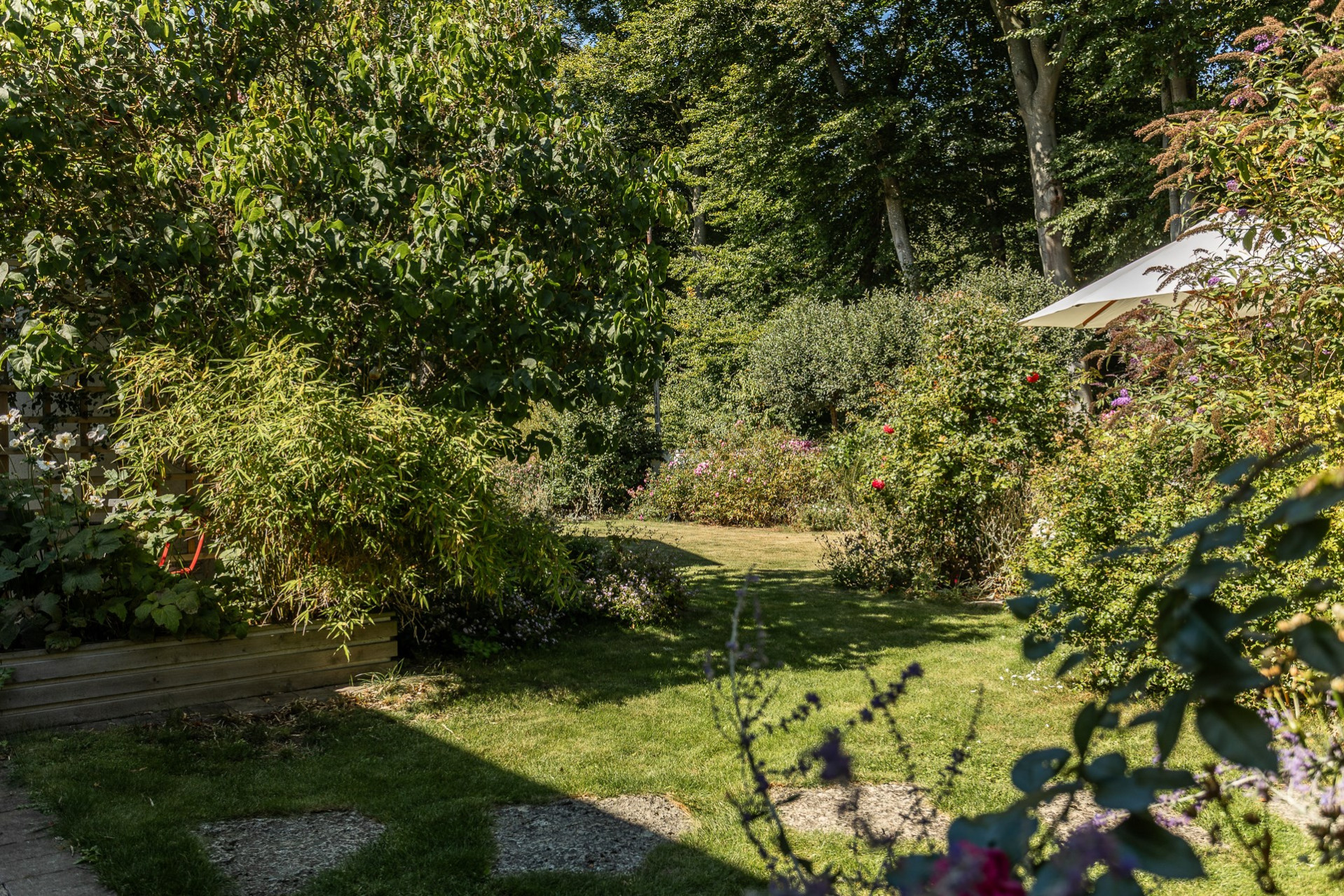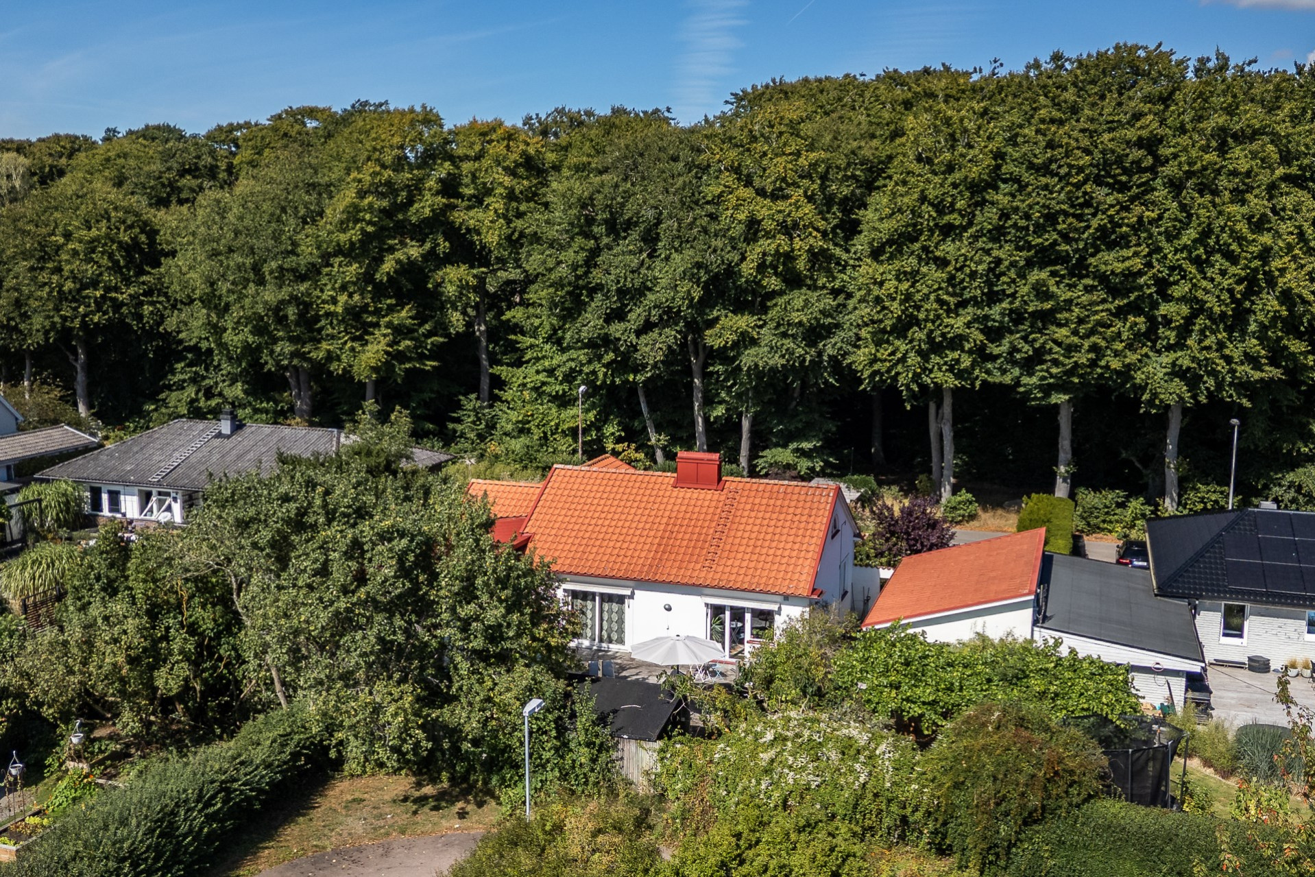 Från trädgården, och bakom garaget, finns ett isolerat och uppvärmt rum med egen entré samt fönster. Öppet till nock, parkettgolv. Perfekt yta för kontor, ateljé eller tonårsrum.