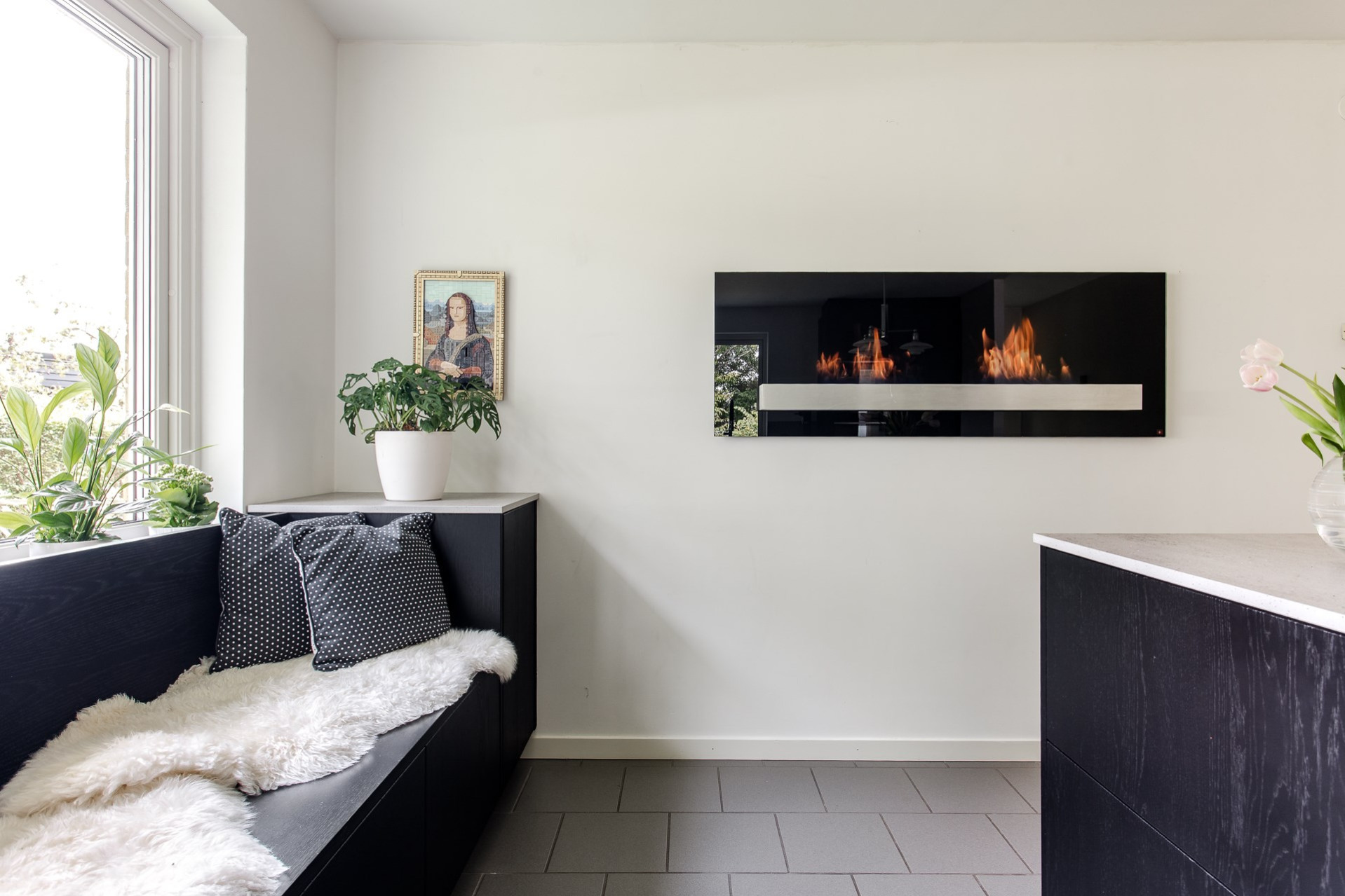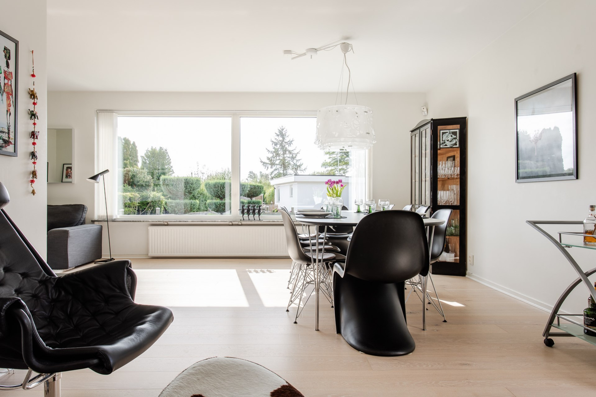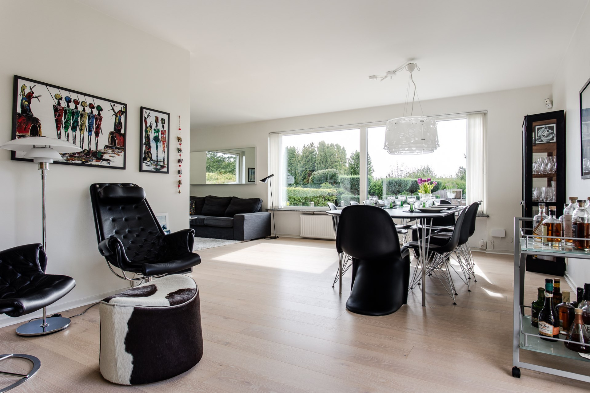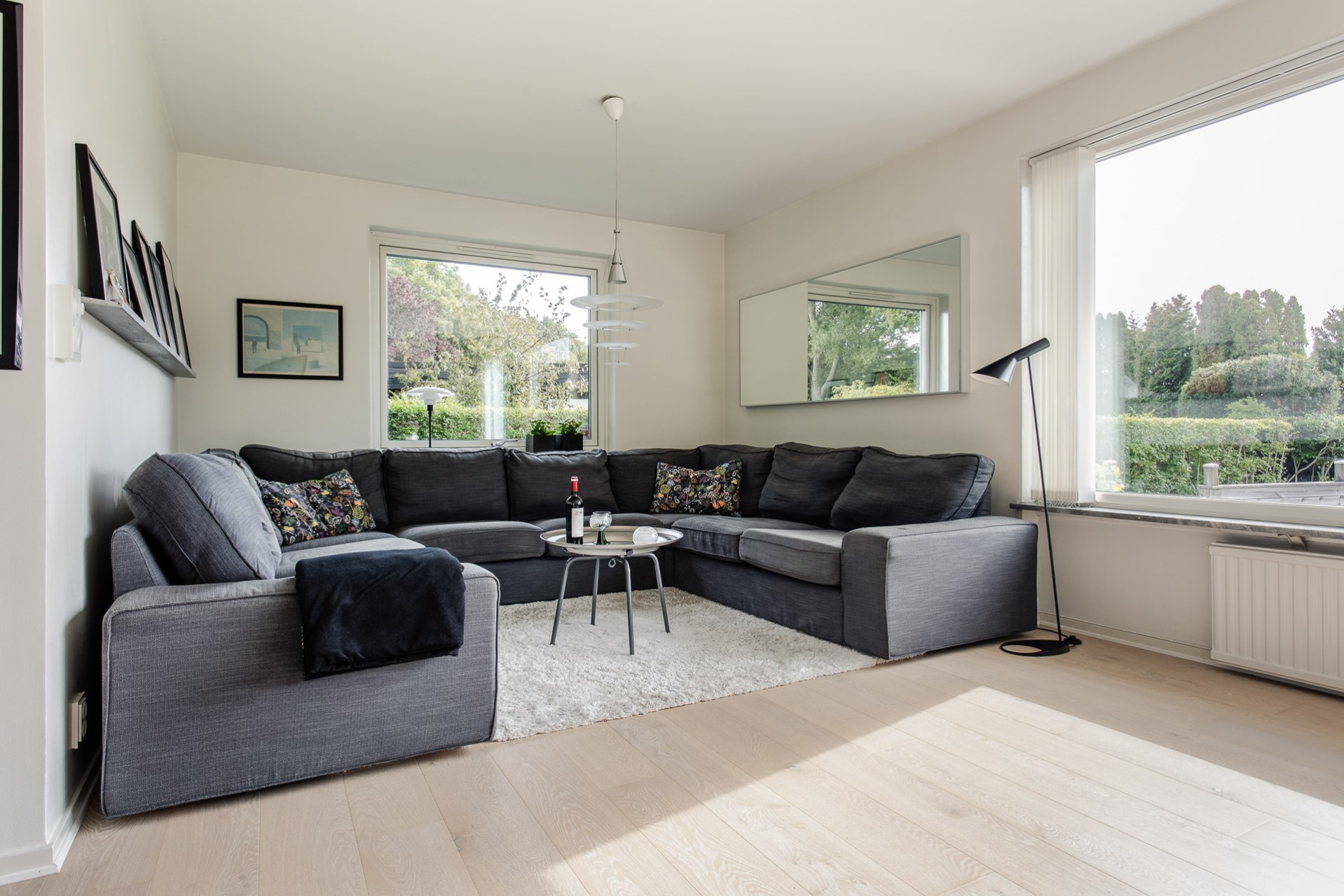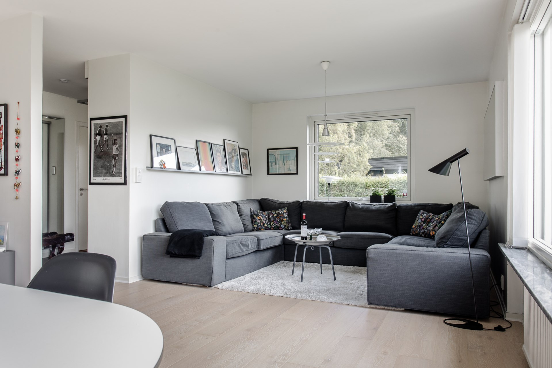 Underbart rum med fönster i tre väderstreck. Genomgående enstavsgolv (nylagt 2019) och vitmålade väggar. Här ryms större matbord, soffgrupp samt ytterligare sittgrupp. Braskamin i tegelväggen förhöjer mysfaktorn samt man har en underbar kontakt med terrassen via ett glasat skjutparti.