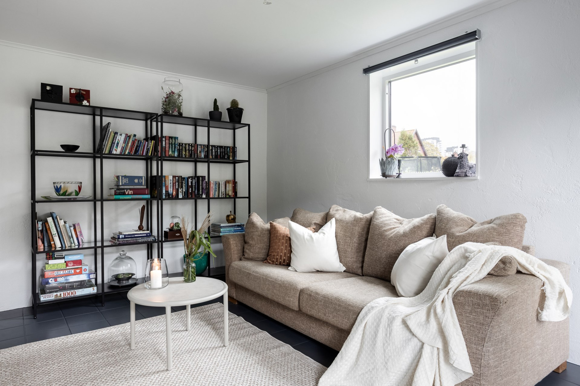 Källaren nås både från hallen och utifrån. En genomgående fräsch källare.