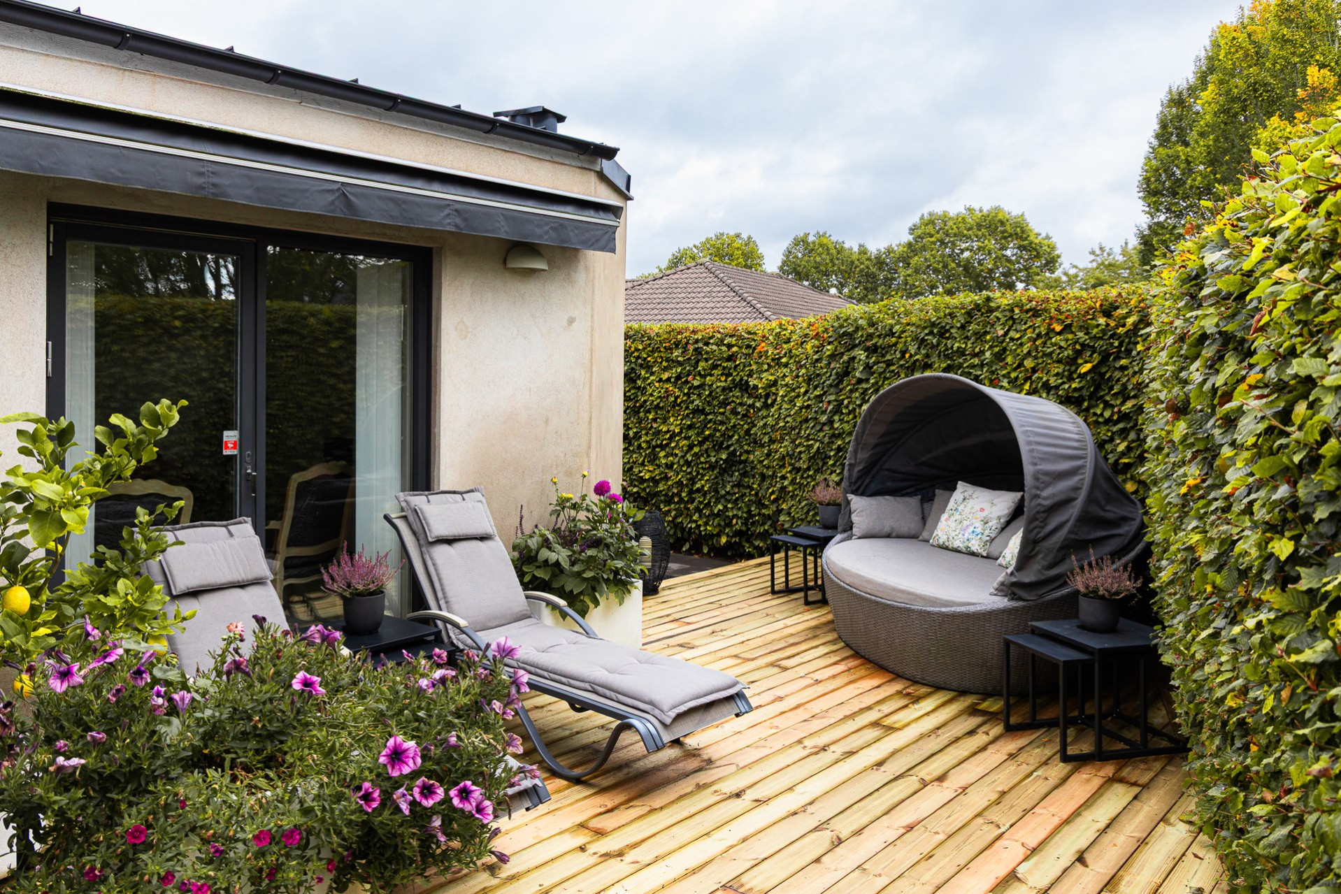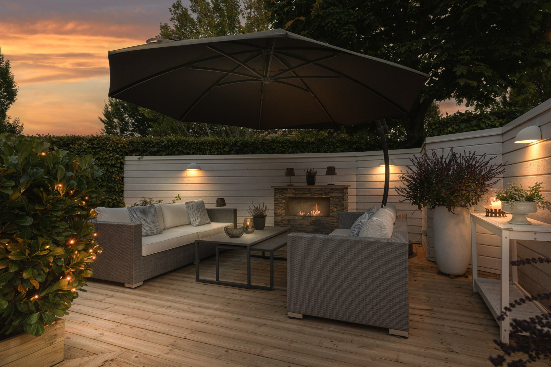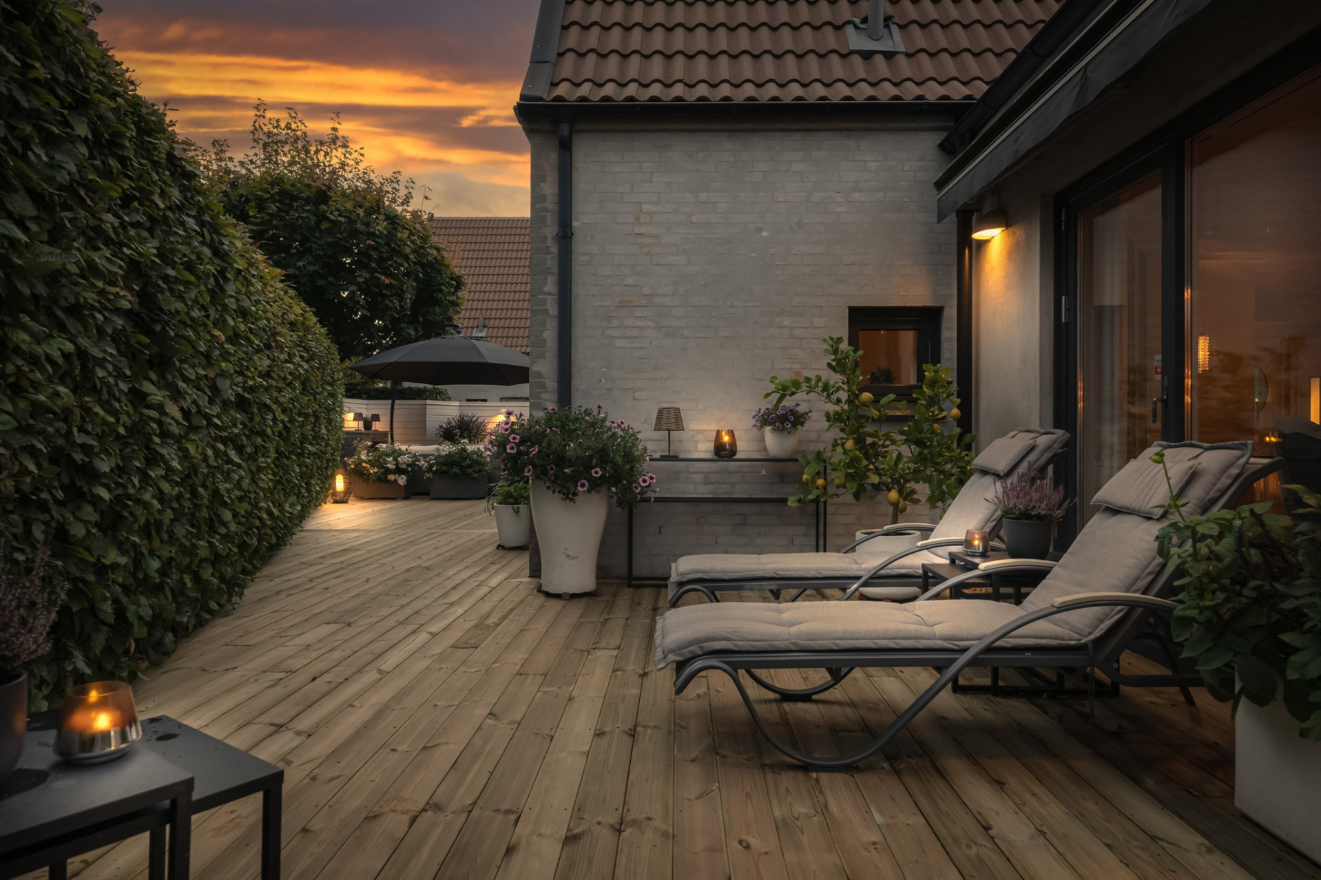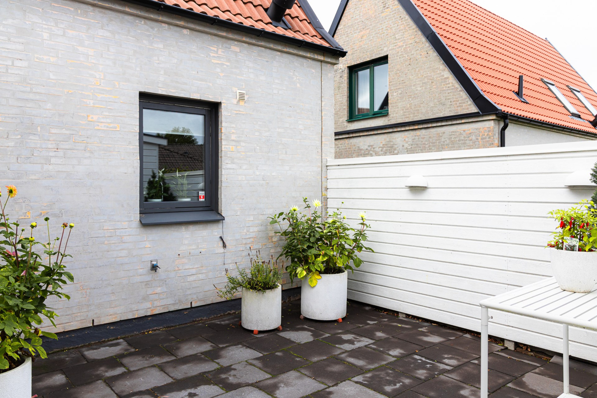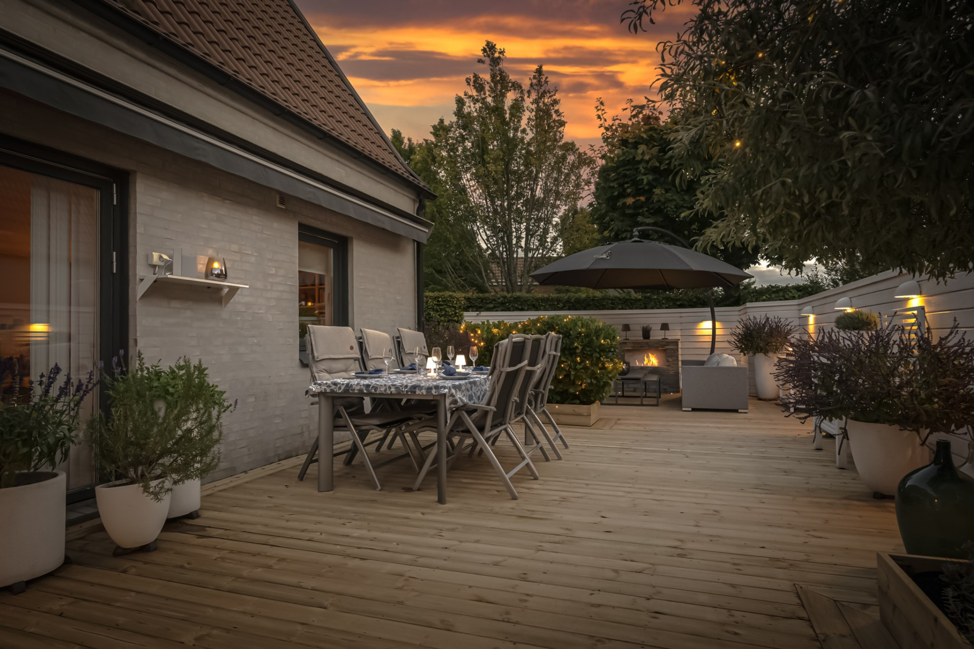 Tillbyggnaden som kom 2005 med vattenburen golvvärme är en otroligt charmig del av huset. Här slår man sig ner i lugn och ro efter middagen. Man tänder ljus i eldstaden (ej fungerande) och sätter på lite soft musik. En magisk plats med utgång till uteplatsen där morgonsolen kommer. Perfekt att gå ut den vägen för frukostintaget.