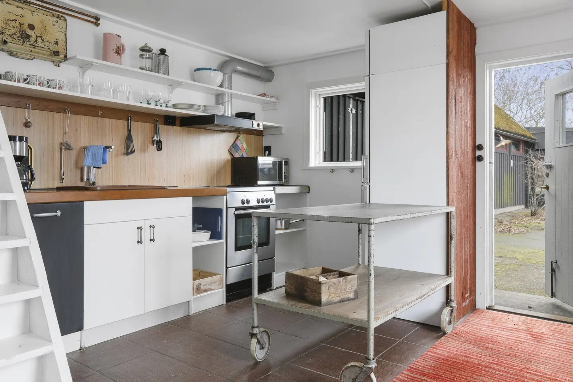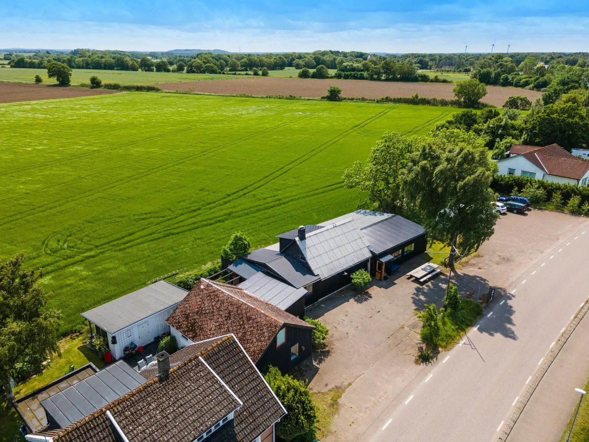 I direkt anslutning till lokalen finns även en bostadsdel som renoverats på ett enkelt och charmigt vis, idealisk för uthyrning. Oavsett om man tänker sig generations boende, Airbnb eller längre uthyrningar fungerar den utmärkt. På bottenplan finns kök med matplats, allrum och toalett, medan ovanplan erbjuder ett rymligt sovrum och ett enklare badrum. Genomgående har bostaden en fin lantlig känsla med utsikt mot de intilliggande fälten.