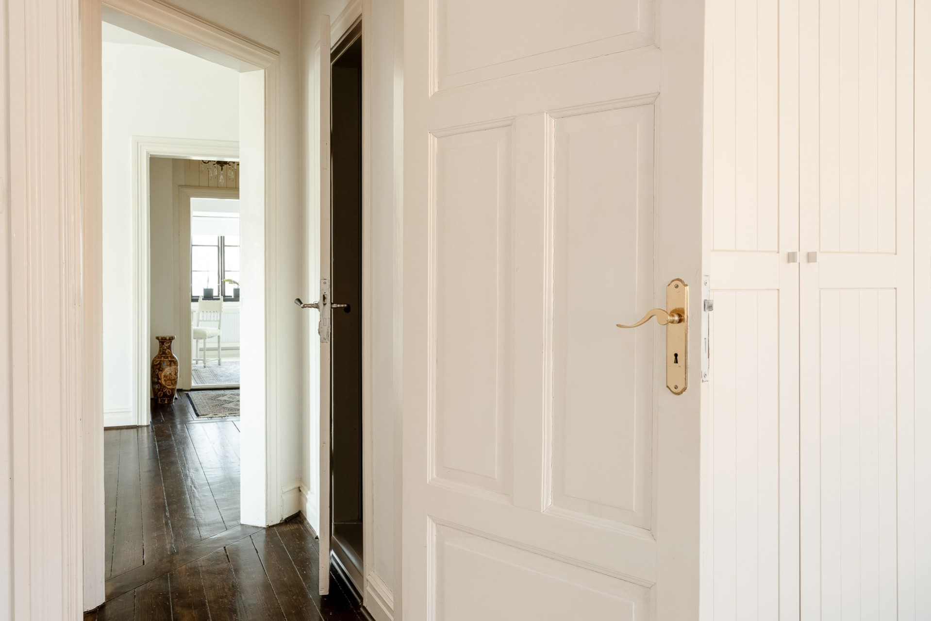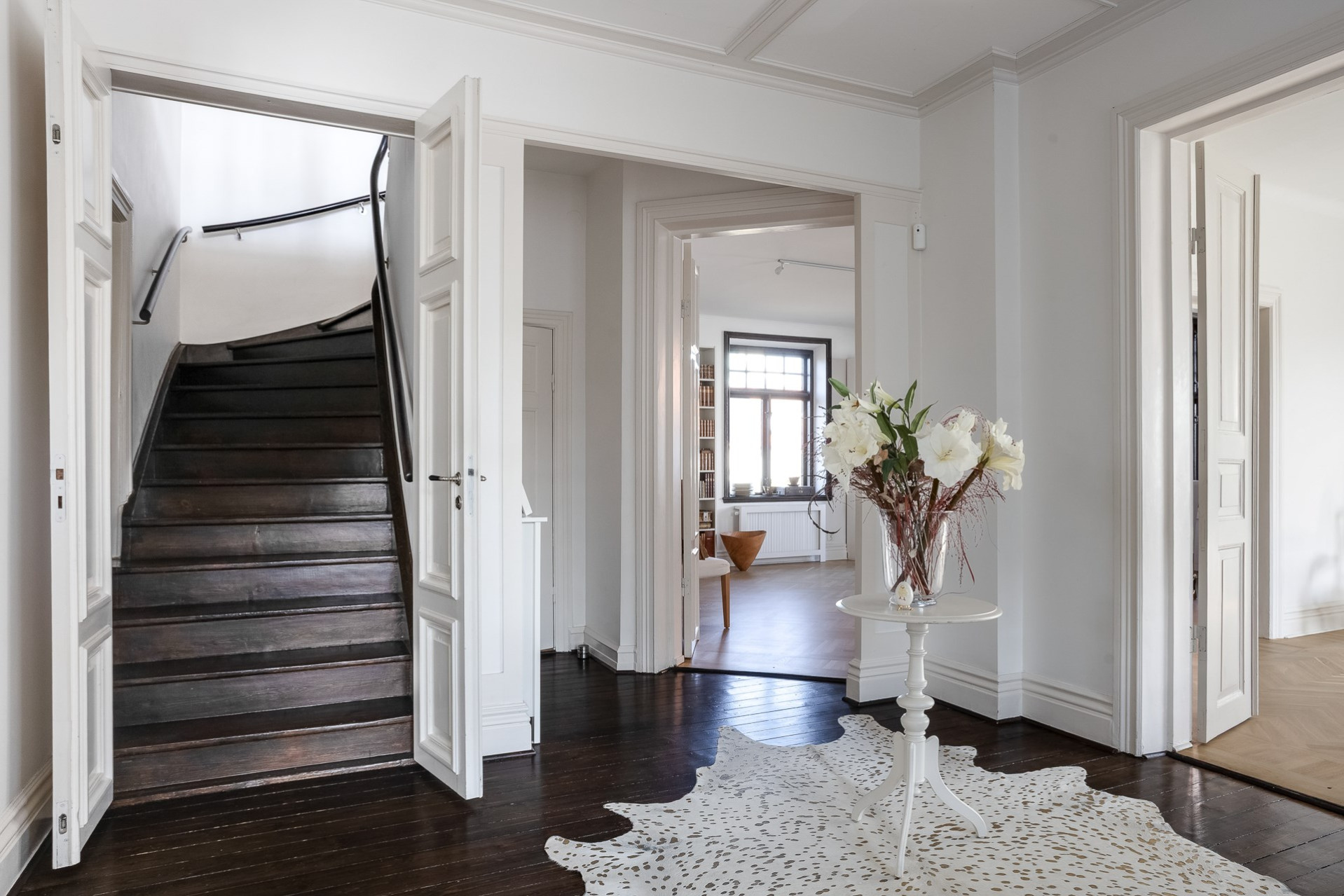 En stor och vacker lobby välkomnar besökare efter entrén. Med ett elegant stengolv som övergår till varsamt behandlat originalgolv och vackra pardörrar till olika avdelningar, bevarade snickerier överallt.