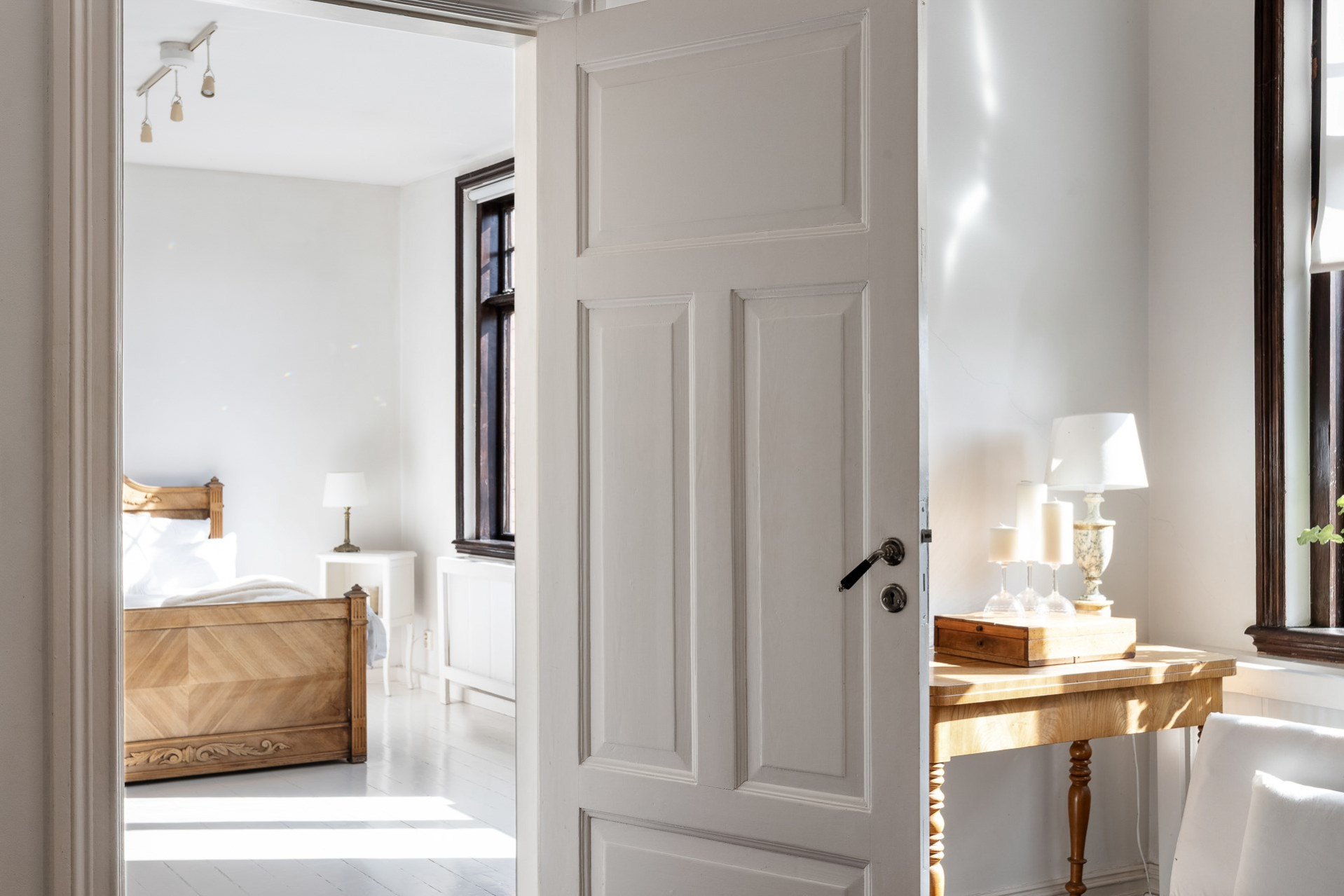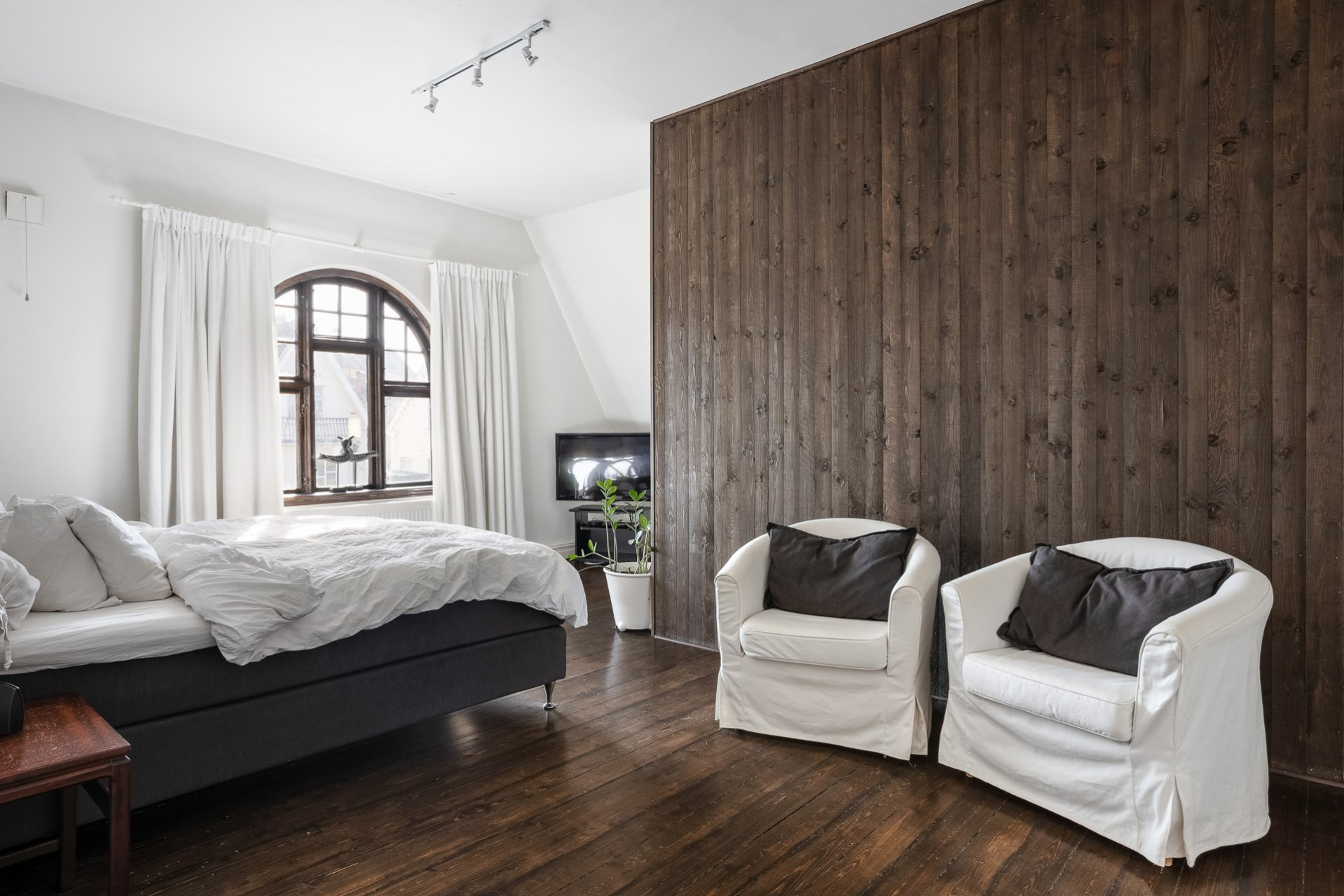 Alla sovrummen är av bra storlek och följer samma stil som resterande delar av ovanvåningen. Bra förvaring genom garderober och plats till stor säng.