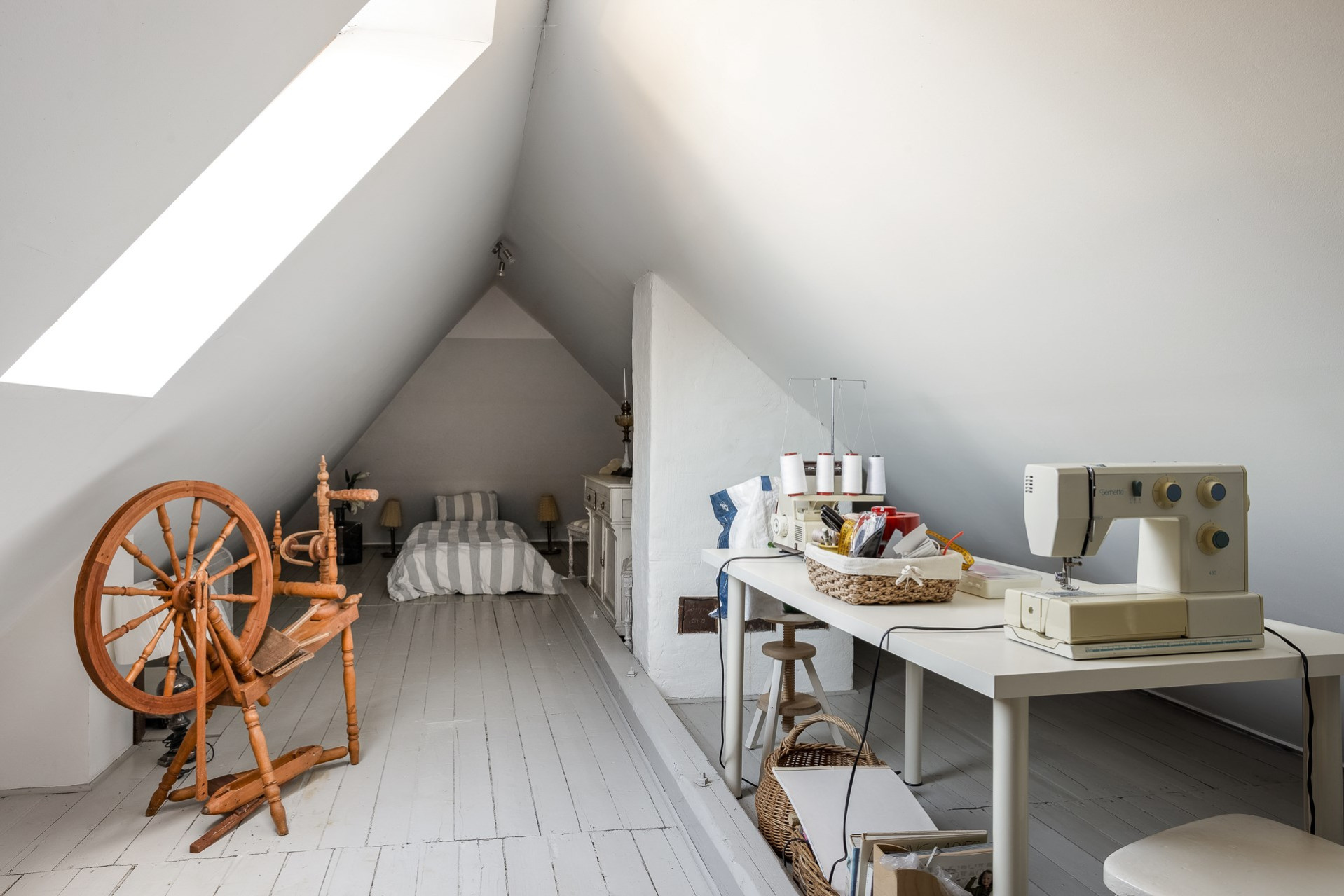 På nordsidan av huset har man låtit renovera kattvindar och vind till en bra förvaringsplats. Vinden kan även erbjuda sovplats för gäster eller för den delen fungera som hobby avdelning.